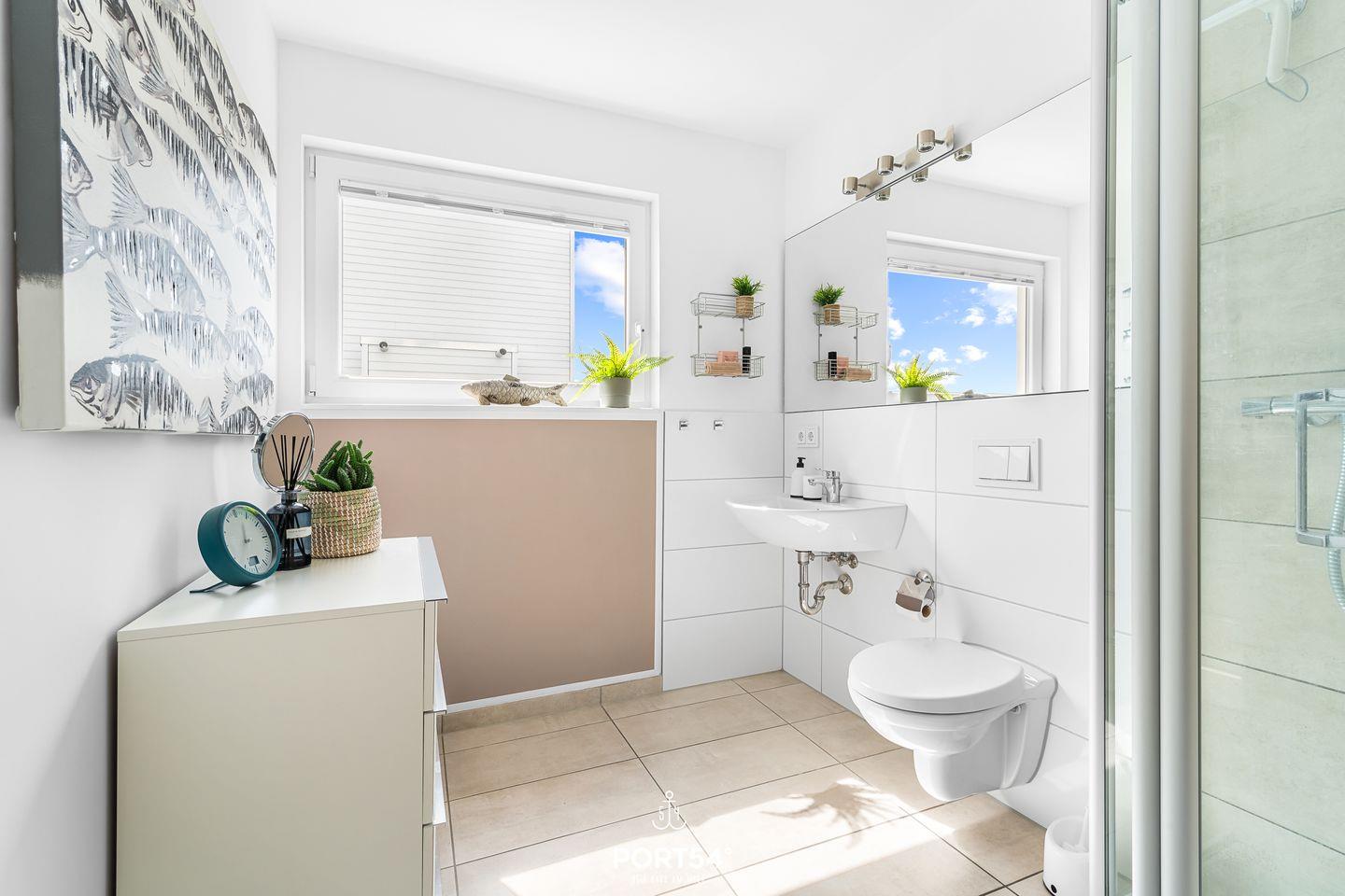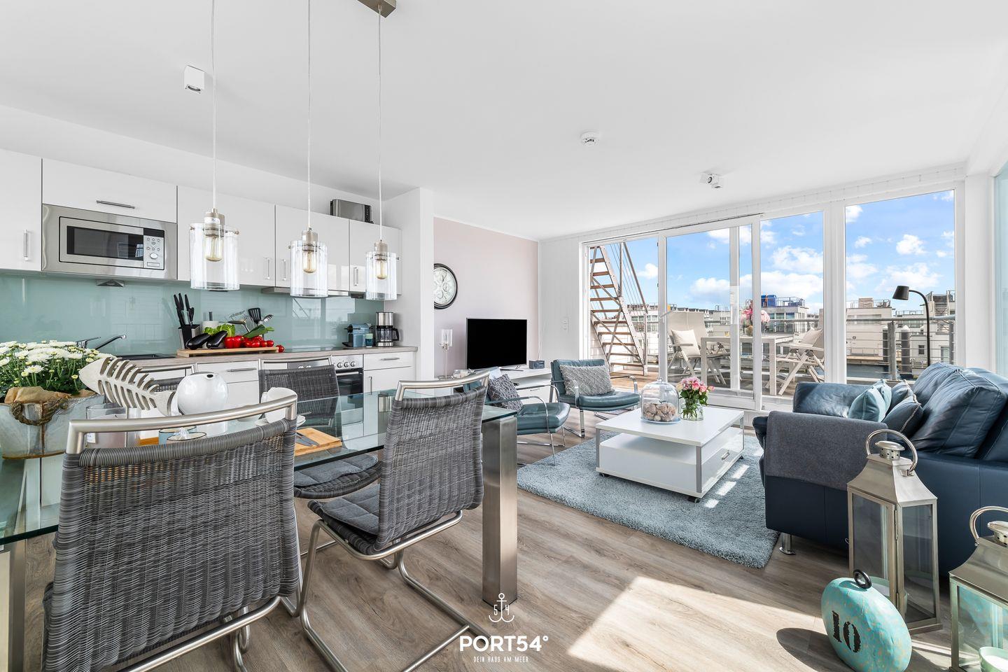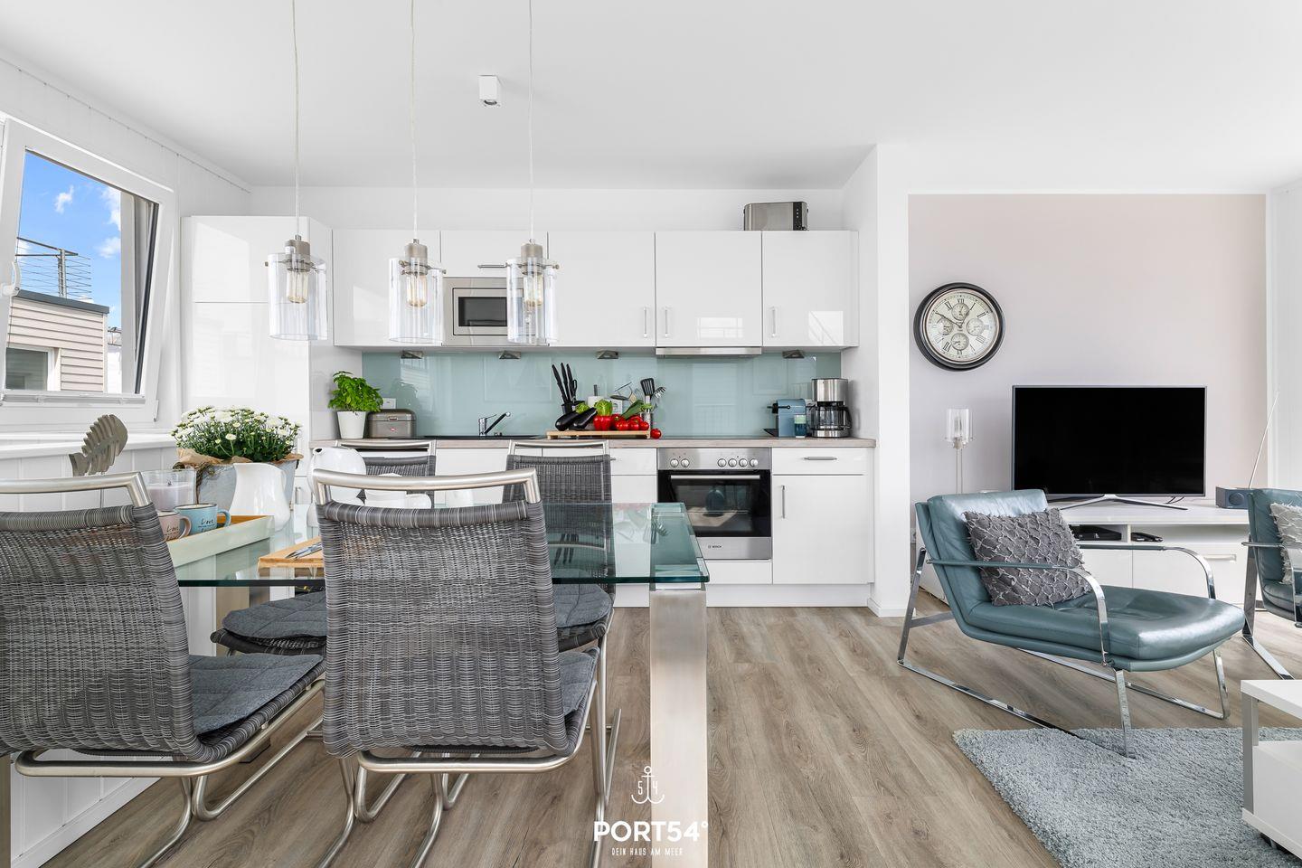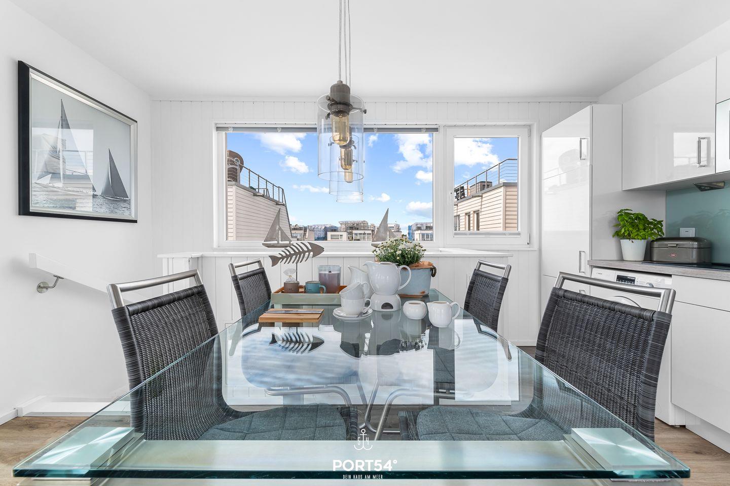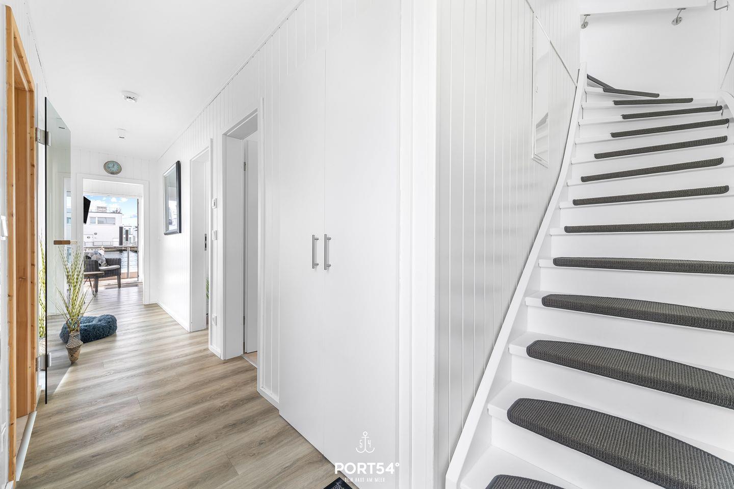 Willkommen in Ihrem schwimmenden Ferienhaus in Olpenitz – ein einzigartiges Refugium für 4 Personen mit direktem Blick auf die Hafeneinfahrt und die Ostsee. Genießen Sie den Luxus und Komfort dieses exklusiven Domizils, das Ihnen ein unvergessliches Urlaubserlebnis auf dem Wasser bietet. Das modern gestaltete Ferienhaus verfügt über bodentiefe Fensterfronten, die für ein lichtdurchflutetes Ambiente und spektakuläre Ausblicke sorgen. Im Erdgeschoss befinden sich zwei gemütliche Schlafzimmer – eines mit komfortablem Doppelbett, das andere mit zwei Einzelbetten. Das Badezimmer überzeugt mit einer bodengleichen Dusche, einer großen Spiegelfront und stilvoller Ausstattung. Für erholsame Stunden steht Ihnen eine finnische Sauna zur Verfügung. Im Obergeschoss erwartet Sie die bestens ausgestattete Küche mit Essbereich, offen gestaltet zum großzügigen Wohnbereich mit gemütlicher Sofalandschaft. Drei Terrassen laden zum Verweilen ein, darunter eine beeindruckende 30m² große Dachterrasse mit 360-Grad-Schleiblick. Für kulinarische Genüsse sorgt ein Weber Elektrogrill, während der exklusive Bootsliegeplatz Wassersportlern und Bootsbesitzern besonderen Komfort bietet. Zusätzliche Sitzgelegenheiten sind durch zwei extra Bänke sowie eine spezielle „Sundowner Bank“ am Eingang gegeben. Technische Highlights wie dimmbare Beleuchtung, Telekom Home Entertainment und ein Internetradio runden das Angebot ab. Zwei Außenstellplätze stehen Ihnen während Ihres Aufenthalts zur Verfügung.