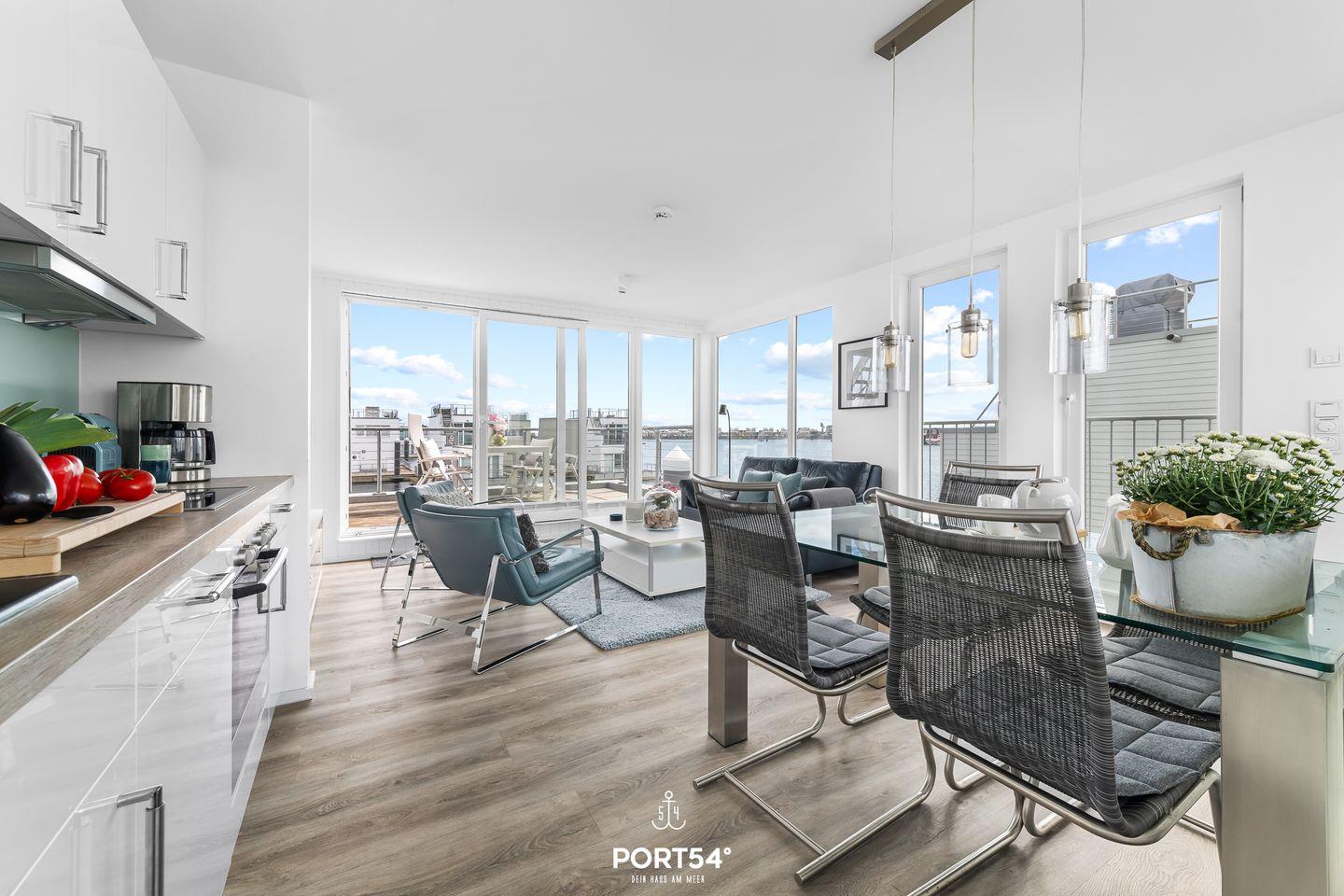 Achtern Diek - Dachterrasse mit 360° Panoramablick, schwimmendes Haus, Sauna