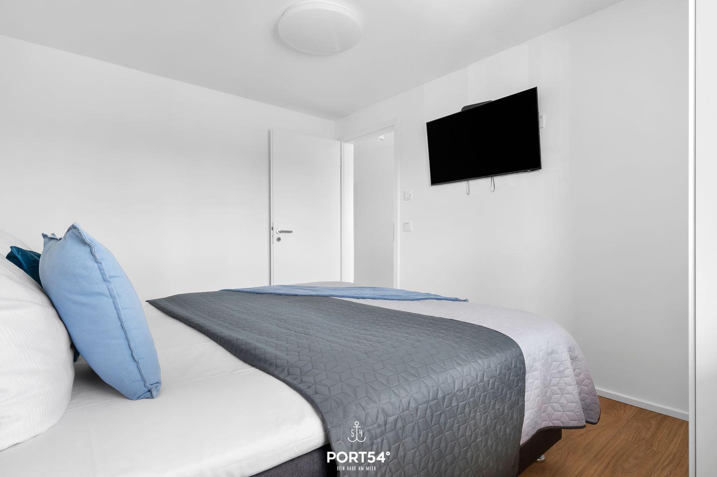 Die Wohnung "Hafenflair" in Olpenitz befindet sich im 1. Obergeschoss und bietet auf 52m² ein modernes Zuhause in bester Lage direkt an der Hafenpromenade. Von hier aus haben Sie einen atemberaubenden Blick auf den Hafen und die malerische Schlei. Der offene Wohn- Essbereich lädt mit einem Flachbildfernseher und einem gemütlichen Sofa, das auch als Schlafsofa nutzbar ist, zum Entspannen ein. Die vollausgestattete Küche bietet alles, was Sie für die Zubereitung leckerer Mahlzeiten benötigen. Das Schlafzimmer ist ein wahrer Ruhepol. Es ist ausgestattet mit einem komfortablen Boxspring-Doppelbett (180x200cm), einem weiteren Flachbildfernseher, einem Kleiderschrank und Verdunkelungsmöglichkeiten, wodurch das Schlafzimmer himmlische Nächte verspricht. Das moderne Duschbad ist hell und geschmackvoll gestaltet, sodass Sie sich rundum wohlfühlen können. Auch ein kleiner Kosmetikspiegel, ein Handtuchheizkörper und ein Fön sind vorhanden. Eine Waschmaschine steht Ihnen ebenfalls zur Verfügung. Für unsere kleinen Gäste sind ein Kinderreisebett, ein Hochstuhl und ein Kindertritthocker vorhanden. Highlight der Wohnung ist der Balkon mit direktem Wasserblick, der zum Verweilen einlädt und einen wunderschönen Ausblick auf den Hafen bietet. Die Wohnung "Hafenflair" ist die ideale Unterkunft für Paare oder kleine Familien, die einen erholsamen Urlaub in maritimer Umgebung verbringen möchte. Das "Hafenflair" befindet sich im charmanten Haus Klabautermann im OstseeResort Olpenitz, nur einen Steinwurf entfernt vom Edeka Markt. Ein eigener, kostenfreier Parkplatz befindet sich direkt vor dem Appartmentgebäude.