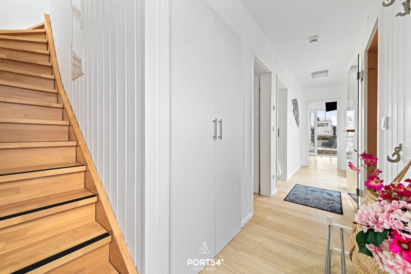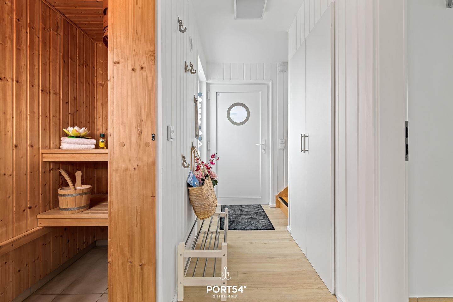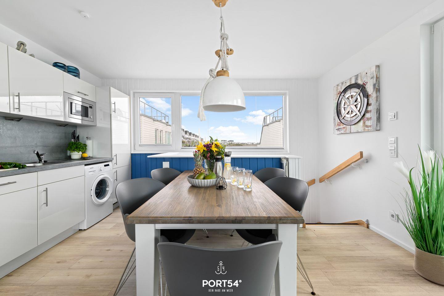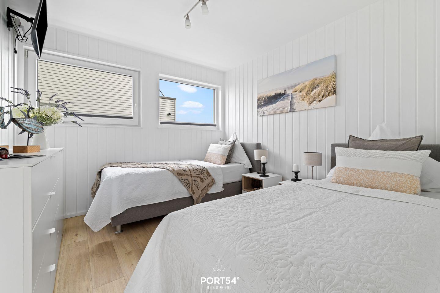 Das schwimmende Ferienhaus "Ankerlicht" in Olpenitz bietet auf großzügigen 97m² ein exklusives Urlaubserlebnis direkt an der Ostsee. Das Haus besticht durch seinen modernen Stil und eine hochwertige Ausstattung, die keine Wünsche offen lässt. Der offene Wohn- und Essbereich ist der perfekte Ort, um gemeinsame Stunden zu verbringen. Ausgestattet mit einem gemütlichen Sofa und einem Flachbild-TV, lädt der Wohnbereich zum Entspannen ein. Der angrenzende Essbereich bietet Platz für ausgedehnte Mahlzeiten, die in der voll ausgestatteten Küche zubereitet werden können. Die zwei komfortablen Schlafzimmer befinden sich im Erdgeschoss des schwimmenden Hauses. Das erste Schlafzimmer ist mit einem luxuriösen Boxspring-Doppelbett (180x200cm) ausgestattet, das für einen erholsamen Schlaf sorgt. Im zweiten Schlafzimmer befinden sich zwei Boxspring-Einzelbetten (90x200cm), die ebenfalls hohen Schlafkomfort bieten. Beide Schlafzimmer sind zudem mit Verdunkelungsmöglichkeiten und mit eigenen TV-Geräten versehen, sodass Sie auch hier beste Unterhaltung genießen können. Das Badezimmer sorgt mit der bodengleichen Dusche für höchsten Komfort und ist besonders angenehm nach einem Tag am Strand. Ein besonderes Highlight ist die finnische Sauna. Diese Sauna bietet Ihnen die Möglichkeit, ganz privat und ohne Einschränkungen ein wohltuendes Saunabad zu genießen. Das Ferienhaus "Ankerlicht" bietet Ihnen gleich zwei Terrassen - doch das Highlight ist zweifellos die großzügige Dachterrasse, die einen unvergleichlichen Blick auf das Wasser bietet. Diese private Oase ist der perfekte Ort, um die Ruhe und Schönheit der Umgebung in vollen Zügen zu genießen. Ausgestattet mit einem gemütlichen Strandkorb, lädt die Dachterrasse dazu ein, sich zurückzulehnen und den Alltag hinter sich zu lassen. Hier können Sie morgens bei einer Tasse Kaffee den Sonnenaufgang über dem Meer bewundern oder abends bei einem Glas Wein den Tag entspannt ausklingen lassen. Der Panorama-Wasserblick, den Sie von hier aus haben, ist einfach atemberaubend und lässt Sie die Weite und Freiheit der Ostsee spüren. Für unsere kleinen Gäste halten wir ein Kinderreisebett, einen Hochstuhl, einen Kindertritthocker, ein Treppenschutzgitter im 1. Obergeschoss und zwei Schwimmwesten bereit. Auch ein Bollerwagen für Ihre Strandausflüge steht bereit. Für Ihren PKW befindet sich vor der Steg-Anlage ein kostenloser Stellplatz, alternativ können Sie auch mit Ihrem Boot anreisen und dies am Haus vertäuen.