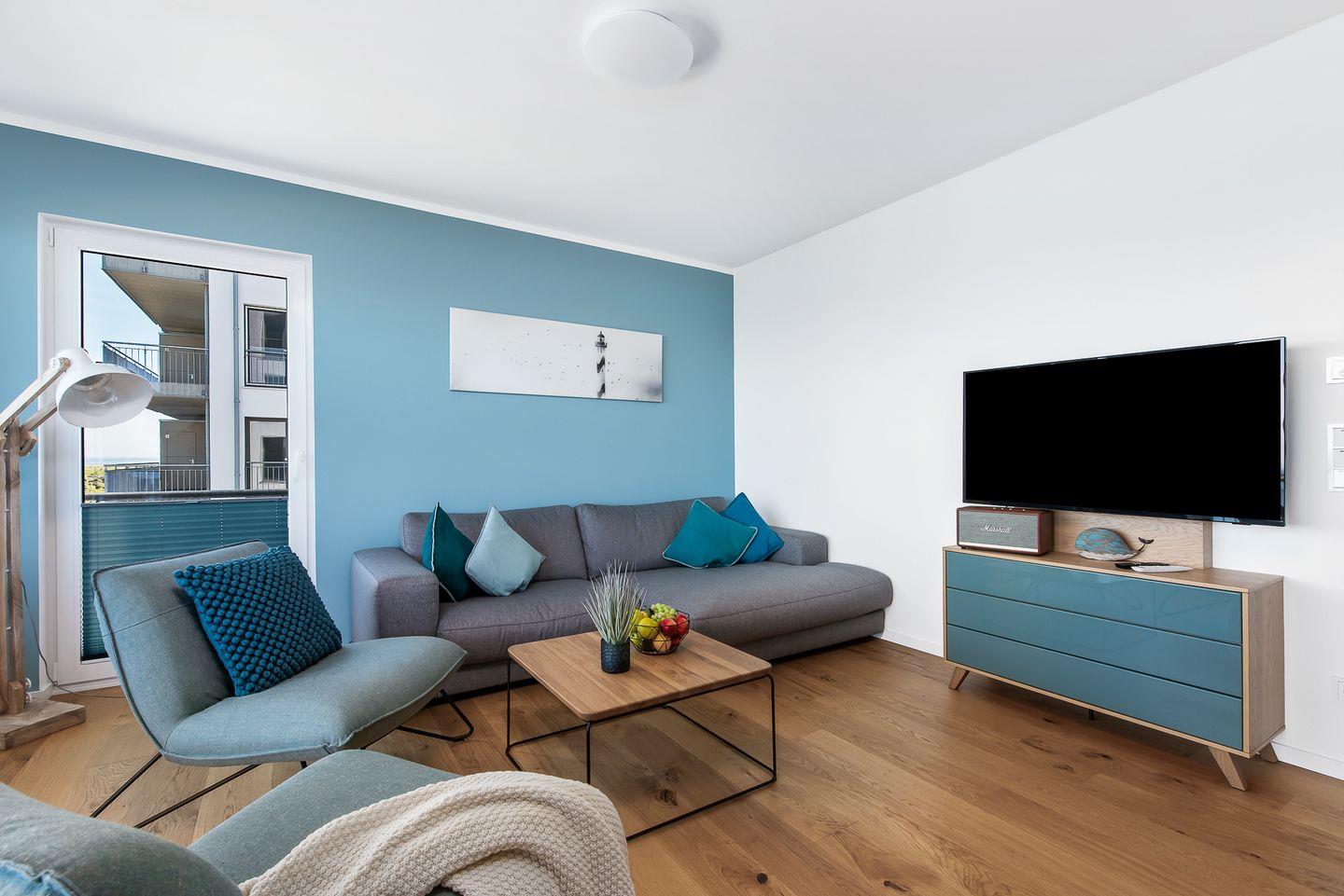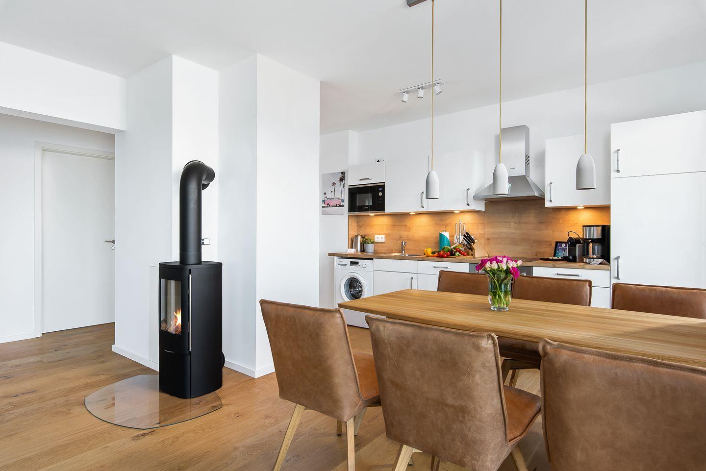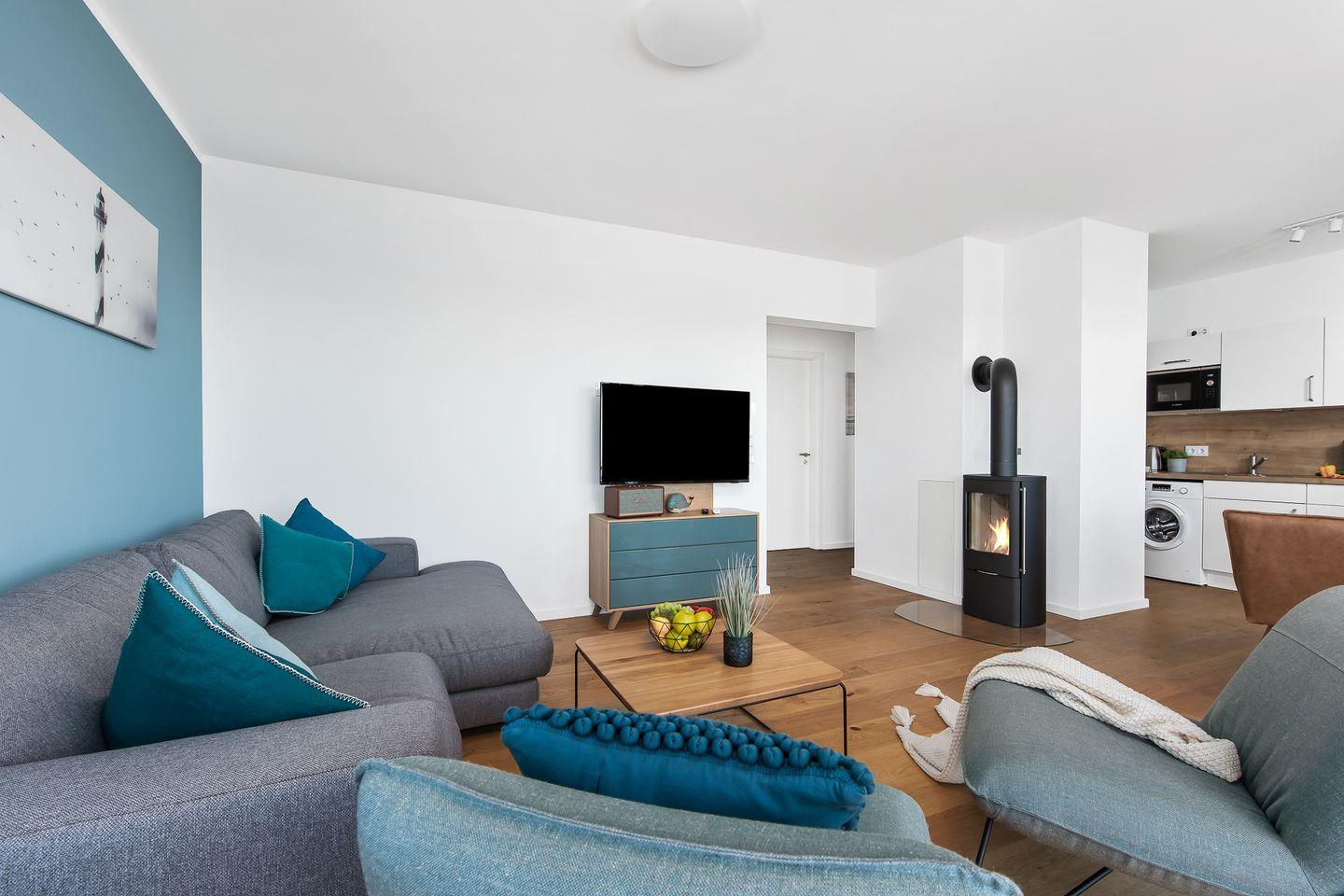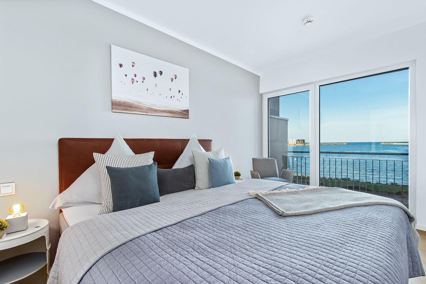 Direkt an der Ostsee gelegen, mit einem traumhaften Weitblick auf die freie Ostsee, bietet die Ferienwohnung "Perlentaucher" auf ca. 98m² Platz für 6 Personen. Vom Wohn- und Essbereich aus, mit bodentiefen Fenstern, haben Sie Zugang zum Herzstück dieser Ferienwohnung: den großen Balkon mit einem unvergesslichen Blick auf die freie Ostsee und die Hafeneinfahrt. Bestaunen Sie die Segelboote und genießen Sie die einzigartige Panoramasicht. Erholen Sie sich an kälteren Tagen auf dem Sofa mit der wohligen Wärme des gemütlichen Kaminofens und schauen Sie auf dem Flachbild-Fernseher Ihre Lieblingsserie. Die hochwertig ausgestattete Küche mit Meerblick ist offen zum Wohn- und Essbereich gestaltet und lädt zu gemeinsamen Kochabenden ein. Diese Ferienwohnung verfügt über zwei komfortable Doppelschlafzimmer mit Boxspringbetten (180x200cm), Kleiderschränken und Verdunkelungsmöglichkeiten, eines mit TV und eines mit Wasserblick. Das dritte Schlafzimmer sorgt mit zwei Einzelbetten (90x200cm) für Entspannung. Beide Badezimmer bieten ausreichend Platz, eine ebenerdige Dusche, einen Handtuchtrockner und einen großen Spiegel. Genießen Sie Ihr Frühstück auf den gemütlichen Gartenmöbeln bei Sonnenaufgang oder verbringen Sie gesellige Grillabende bei einem kühlen Getränk. Für die kleinen Gäste ist bestens gesorgt: Ein Kinderreisebett, ein Kinderhochstuhl und ein praktischer Kindertritthocker im Bad stehen bereit. Ein kostenfreier Parkplatz für ein Fahrzeug steht in der Tiefgarage zur Verfügung, ebenso wie ein gemeinschaftlicher abschließbarer Fahrradschuppen für Ihre Fahrräder.