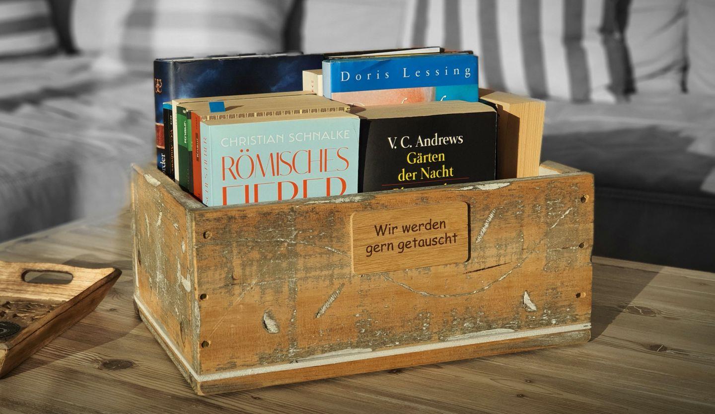 Apropos Bücherregal, es gibt eine kleine Tauschbörse mit Büchern. Hier können gerne Bücher getauscht werden. Außerdem gibt eine Mini-Ostsseebibliothek mit Büchern zum Thema Ostsee, Schleiregion, Reiseführer etc. Wir freuen uns sehr auf Ihren Besuch in unserem Traumapartment!