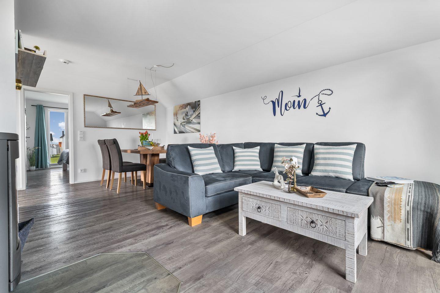 Dieses modern und hochwertig eingerichtete Apartment ist im schönen Ostseeresort Olpenitz zwischen Schlei und Ostseeküste gelegen. Ein großer Strandkorb, ein Kaminofen und eine Infrarotkabine gehören zur hochwertigen Ausstattung. Sie können sich auf zwei Sonnenterrassen bewegen, eine davon ist sogar überdacht. In 2020 wurde dieses Apartment fertig gestellt. Wir nannten es "Glück", denn uns macht es glücklich und wir hoffen sehr, Sie auch! Die Lage ist einzigartig, wenn man Ruhe mag. Es liegt am Rande der großen Freifläche auf der Kapitänshalbinsel, welche zurzeit Richtung Ostsee noch unverbaut ist und somit den Blick bis zur Ostsee frei gibt. Es ist ein Traum hier zu frühstücken! Die Bebauung ist hier auf der Kapitänshabinsel sehr, sehr locker. Das war es auch, was uns neben der Nähe zum Weidefelder Strand so gut gefiel. Bis zu 4 Personen und 3 Hunde finden hier genügend Platz in 2 Schlafzimmern und einem offenen Wohn-, Ess- und Küchenbereich. Von hier aus führen zwei bodentiefe Terrassen-Fenster auf die Ostterrasse Richtung Meerblick. Der große Strandkorb mit Bullaugen ermöglicht es auch bei Wind und niedrigeren Temperaturen gemütlich draußen zu sitzen und den Zugvögeln zuzusehen. Richtung Süden findet Sie den Zugang zur 2. Terrasse, welche überdacht ist und wo Sie gemütliche Holzmöbel finden. Von hier aus können Sie Richtung Hafen den Sonnenuntergang erleben. Das große L-Sofa steht mit Blick in Richtung Ostsee. Ein Smart-TV mit Netflixzugang und vielen weiteren Spielerein ist vorhanden. Für die Kleinen gibt es Kinderbücher und verschiedene Spielzeuge. Ein Fernglas hängt nur für Sie an der Wand. Es gibt ein Schlafzimmer mit Doppelbett (200x200cm) und TV, sowie ein zweites Schlafzimmer mit zwei Einzelbetten (90x200cm), welche natürlich auch zum Doppelbett zusammengeschoben werden können. Gemütliche skandinavische Betten mit hohem Einstieg und hochwertigen Matratzen waren hier die 1. Wahl. Bei der Essecke haben wir uns für eine Sitzbank und zwei Stühle entschieden. Es ist einfach gemütlich sich hier hin zu lümmeln, natürlich auch gemeinsam an dem massiven Naturholztisch zu essen. Dieser Bereich ist gut als Arbeitsplatz nutzbar. Das Internet ist hier schnell und stabil, eine Steckdose direkt neben der Bank, so dass man hier auch gut arbeiten kann, wenn nötig. Zum Weidefelder Strand sind es tatsächlich nur wenige Gehminuten. Der 1. Spaziergang am frühen Morgen kann also bereits direkt am Strand stattfinden. Der Hundestrand ist ca. 800 Meter entfernt. Jedoch können Hunde in der Nebensaison auch überall freilaufen. Sie können direkt vom Apartment bis nach Schönhagen und auch Damp laufen. Es gibt hier einfach unendlich viele Möglichkeiten zu laufen und auch Fahrrad zu fahren. Der Italiener "Ciao Bella" sowie der EDEKA, das Kunstcafé und ein Geschäft mit Dekoartikeln sind in Laufnähe. Der neue Beachclub, der 2024 eröffnet wurde, ist ebenfalls fußläufig, vorbei am Seglerhafen erreichbar. Ein Stellplatz befindet sich direkt am Apartment und ein Schuppen steht euch für Fahrräder, Bollerwagen oder sonstiges, was ihr nicht mit in das Apartment nehmen wollt, zur Verfügung. Ein Elektrogrill und ein Sonnenschirm stehen dort zu Ihrer Verwendung bereit. Die Ostsee und besonders auch dieses Apartment sind auch für die Wintermonate wunderbar geeignet. Ein Kaminofen und eine Infrarotsauna nach einem ausgiebigen Spaziergang, was will man mehr? Für diese Jahreszeit haben wir auch das indirekte Licht gestaltet. Es verläuft im Wohn-Essbereich am Fußboden sowie auf dem Bücherregal und kann in allen Farben und Helligkeitsstufen geschaltet werden. Apropos Bücherregal, es gibt eine kleine Tauschbörse mit Büchern. Hier können gerne Bücher getauscht werden. In der Mini-Ostseebibliothek finden Sie Bücher zum Thema Ostsee, Schleiregion, Reiseführer etc. Wir freuen uns sehr auf Ihren Besuch in unserem Traumapartment!