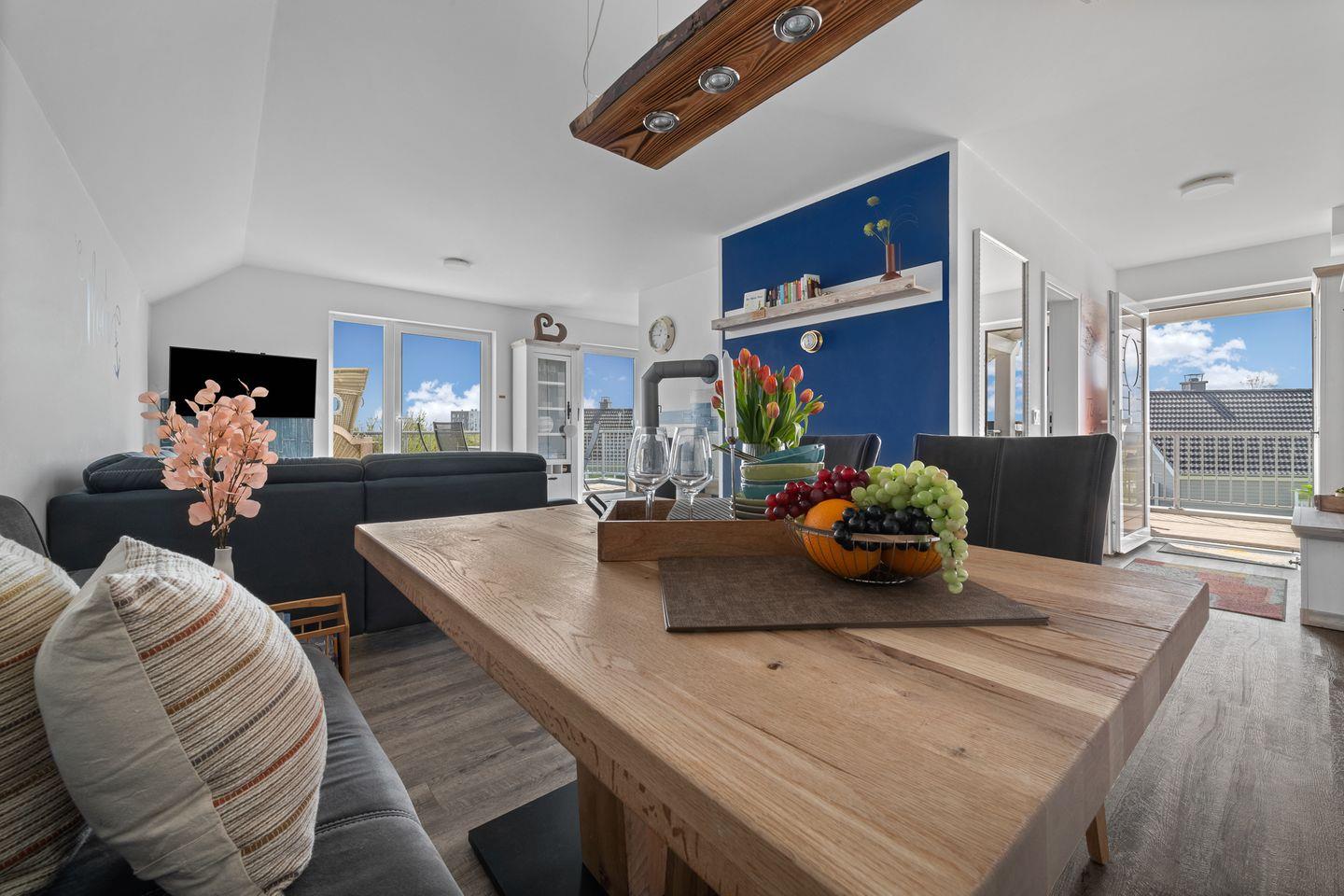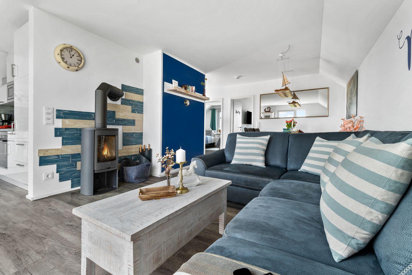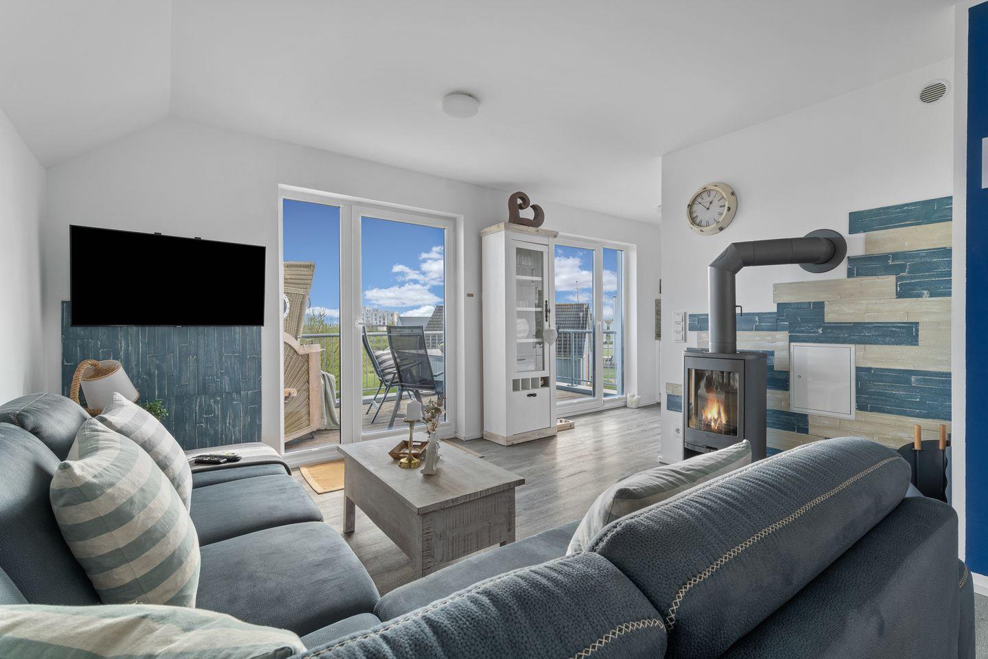 Das Hauptschlafzimmer hat ein King-Size-Doppelbett und das zweite Schlafzimmer bietet zwei Einzelbetten. Der Wohnbereich mit Kamin und Flachbildfernseher sorgt für Gemütlichkeit, die offene Küche ist voll ausgestattet. Das Bad bietet Whirlpool-Badewanne und Infrarot-Sauna. Für Kinder gibt es Reisebett, Hochstuhl, Tritthocker und Spielsachen. Der Balkon hat Gartenmöbel, Strandkorb, Sonnenschirm und Grill. PKW-Stellplatz und Fahrradschuppen sind vorhanden. Perfekt für Familien und Paare!