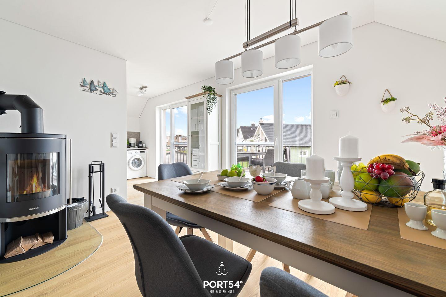 Der offene Wohn- und Essbereich ist hell und freundlich gestaltet. Hier können Sie es sich auf dem gemütlichen Sofa bequem machen und sich von dem Magenta-TV-Programm unterhalten lassen oder Sie spielen gemeinsam mit der Nintendo Wii. Der Kamin sorgt an kühleren Abenden für wohlige Wärme und eine behagliche Stimmung. Für akustische Unterhaltung ist ebenfalls bestens gesorgt: Eine hochwertige Hifi-Anlage im Wohnzimmer bietet Ihnen erstklassigen Klang und sorgt für perfekte musikalische Begleitung während Ihres Aufenthalts. Die Wohnung verfügt über zwei geschmackvoll eingerichtete Schlafzimmer, die Ihnen ruhige Nächte garantieren. Bequeme Betten und eine harmonische Einrichtung laden zum Träumen und Erholen ein. Das eine Schlafzimmer bietet Ihnen ein Boxspring-Doppelbett (180x200 cm), während das andere mit zwei Einzelbetten (90x200cm) ausgestattet ist. Die Einzelbetten können auch hervorragen zu einem Doppelbett zusammenstellen. Beide Schlafzimmer verfügen über Insektenschutzgitter, einen Kleiderschrank und Verdunkelungsmöglichkeiten. Das helle Tageslichtbad ist mit einer modernen Dusche und einer hochwertigen Infrarot-Sauna ausgestattet, die Ihnen pure Entspannung nach einem langen Tag am Strand bietet. Zusätzlich finden Sie im Bad einen Handtuchheizkörper, einen kleinen Kosmetikspiegel und einen Föhn vor. Genießen Sie die frische Meeresbrise auf einem der zwei Balkone der Ferienwohnung. Einer der Balkone befindet sich in Südausrichtung. Hier können Sie den Tag mit einem gemütlichen Frühstück starten oder den Abend beim Grillen auf dem Elektrogrill ausklingen lassen. Am Haus befinden sich ein kostenloser PKW-Stellplatz und ein abschließbarer Fahrradschuppen. Die Ferienwohnung "Ocean Time" vereint Komfort, Stil und eine perfekte Lage für Ihren nächsten Urlaub. Ob Sie die Ruhe der Natur genießen oder die nahegelegenen Attraktionen entdecken möchten – hier finden Sie den idealen Ausgangspunkt für Ihre Urlaubsabenteuer. Buchen Sie jetzt Ihren Aufenthalt in der Ferienwohnung "Ocean Time" und erleben Sie unvergessliche Tage an der Küste!