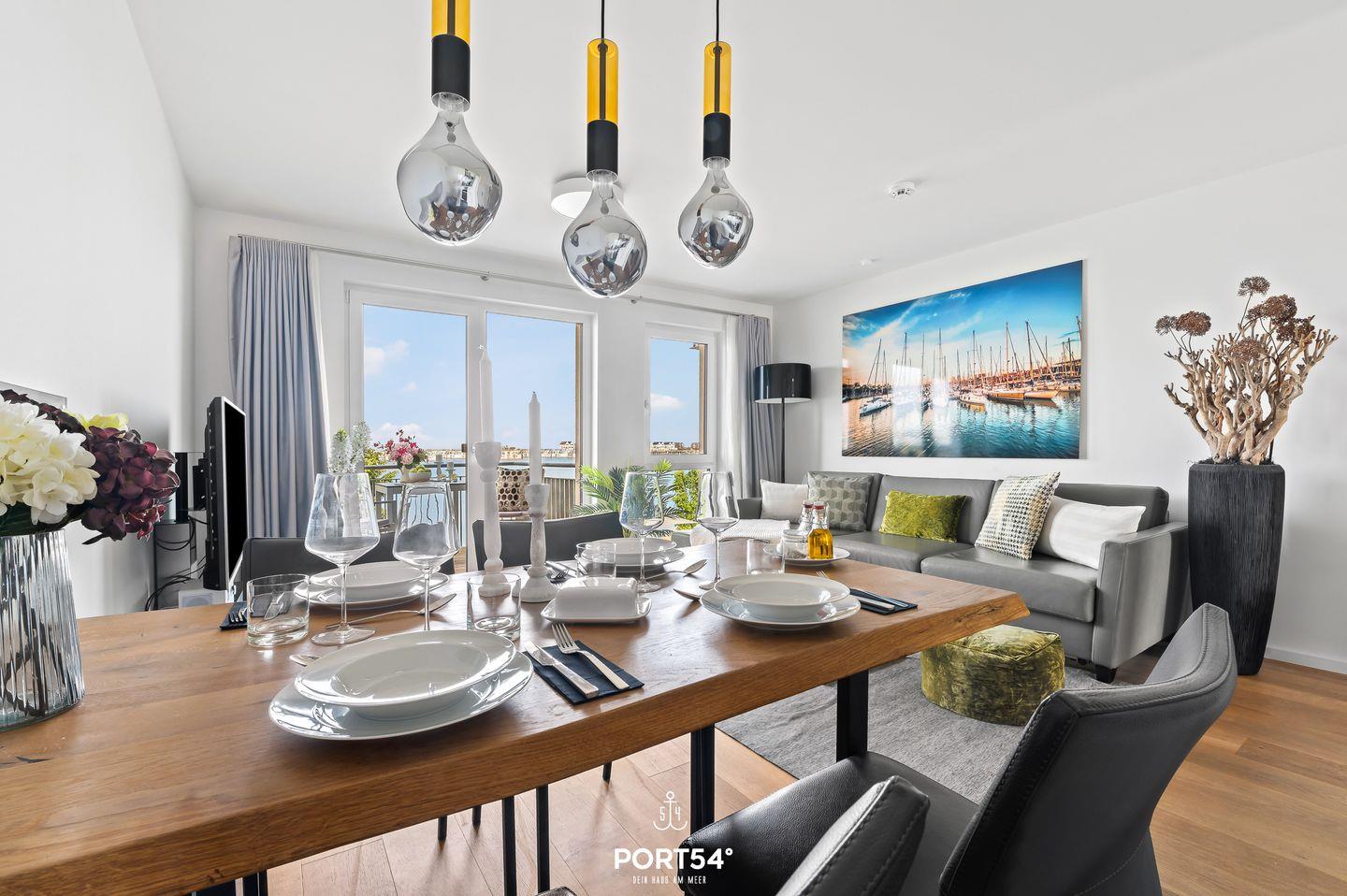 Die Ferienwohnung "Harbour Side" liegt im Ostsee Resort Olpenitz und ist nur wenige Meter vom Wasser entfernt. Auf knapp 51m² finden hier 4 Personen Platz. Sie bietet Ihnen ein Schlafzimmer mit einem Doppelbett, einen offenen Wohn-/Essbereich, eine Küche & ein gemütliches Schlafsofa. Das großzügige Badezimmer verfügt über eine ebenerdige Dusche. Das Highlight ist der Balkon mit Wasserblick, auf dem Sie die Sonnenaufgänge genießen können. Ein kostenfreier Parkplatz befindet sich vor dem Haus.