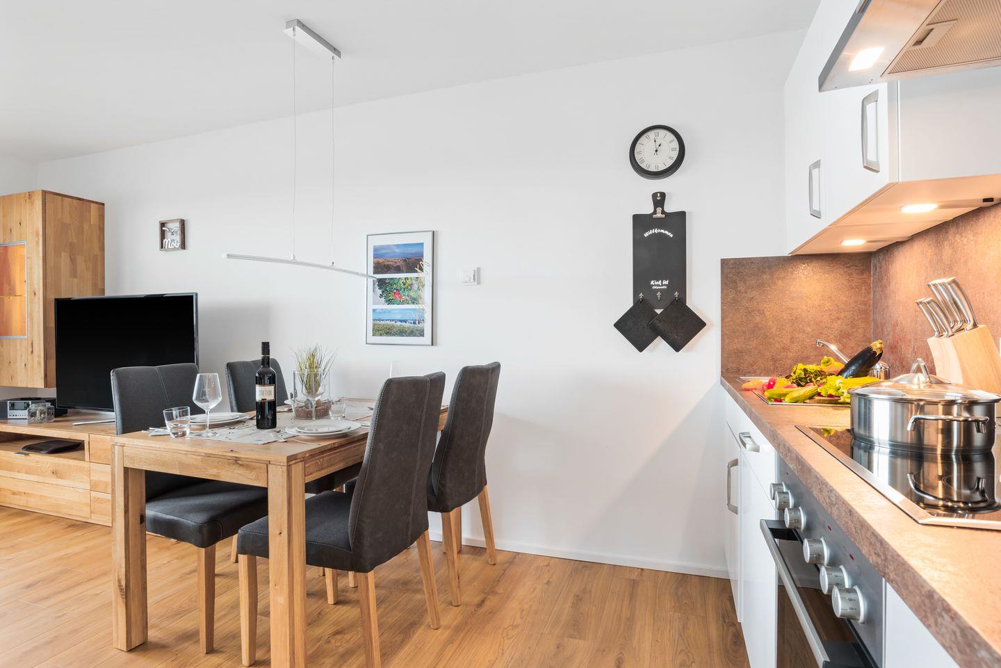 Die Küche ist voll ausgestattet, sodass Du nach Lust und Laune kochen kannst.
