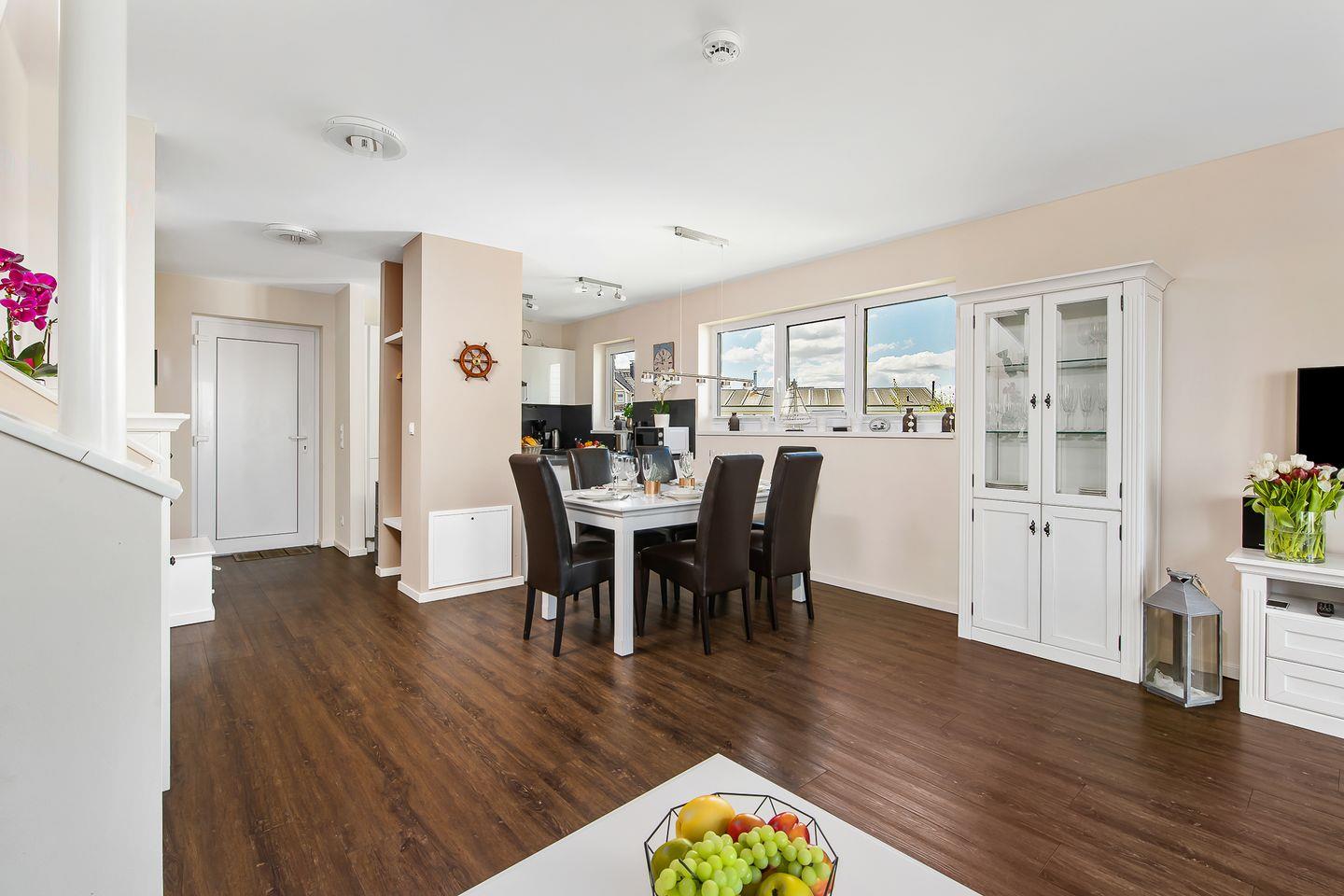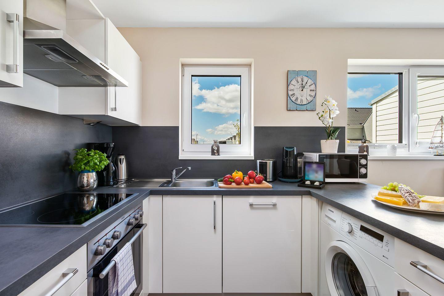 Das freistehende Ferienhaus "Hansekogge" im OstseeResort Olpenitz ist der perfekte Rückzugsort für bis zu sechs Personen und bietet auf 79m² pure Entspannung und Komfort. Direkt am Hafenbecken gelegen, eröffnet sich vom großzügigen Wohn- und Essbereich mit offener Küche ein atemberaubender Blick auf die Marina, der sofort Urlaubsstimmung aufkommen lässt. Die voll ausgestattete Küche begeistert Hobbyköche mit einer Espressomaschine, einem Eierkocher, einem Waffeleisen und vielen weiteren Kochutensilien. Der gemütliche Wohnbereich lädt mit einem knisternden Kamin, einem Flachbildfernseher und einem Blu-ray-Player zu entspannten Filmabenden ein. Dank der bodentiefen Fenster ist der Raum lichtdurchflutet und bietet einen direkten Zugang zur Terrasse. Auf der einladenden Terrasse können Sie die frische Meeresbrise genießen. Gartenmöbel, ein Strandkorb, ein Sonnenschirm und ein Elektrogrill schaffen die perfekte Atmosphäre für gesellige Grillabende unter freiem Himmel. Das moderne Duschbad im Erdgeschoss und das luxuriöse Vollbad im Obergeschoss mit Whirlwanne, Dusche und Infrarot-Sauna bieten Wellness pur. Ein Kosmetikspiegel und ein Fön runden das Wohlfühlprogramm ab. Die beiden gemütlichen Schlafzimmer im Obergeschoss versprechen erholsame Nächte. Das eine ist mit einem komfortablen Doppelbett (180x200cm), einer Kommode und einem Flachbildfernseher ausgestattet, das andere bietet zwei Einzelbetten (90x200cm) und einen geräumigen Kleiderschrank. Beide Schlafzimmer sind mit Verdunklungsmöglichkeiten versehen, um Ihnen einen ungestörten Schlaf zu gewährleisten. Zwei weitere Schlafmöglichkeiten gibt im Wohnzimmer ein bequemes Schlafsofa her. Auch an die kleinen Gäste wurde gedacht: Ein Kinderreisebett, ein Kinderhochstuhl und ein Kindertritt stehen bereit. Zwei kostenlose PKW-Stellplätze direkt vor dem Haus und ein abschließbarer Fahrradschuppen sorgen für zusätzlichen Komfort. Die Nähe zum idyllischen Weidefelder Strand macht dieses Ferienhaus zum idealen Ausgangspunkt für entspannte Tage am Meer. Hier können Sie die Seele baumeln lassen und den Alltag weit hinter sich lassen.