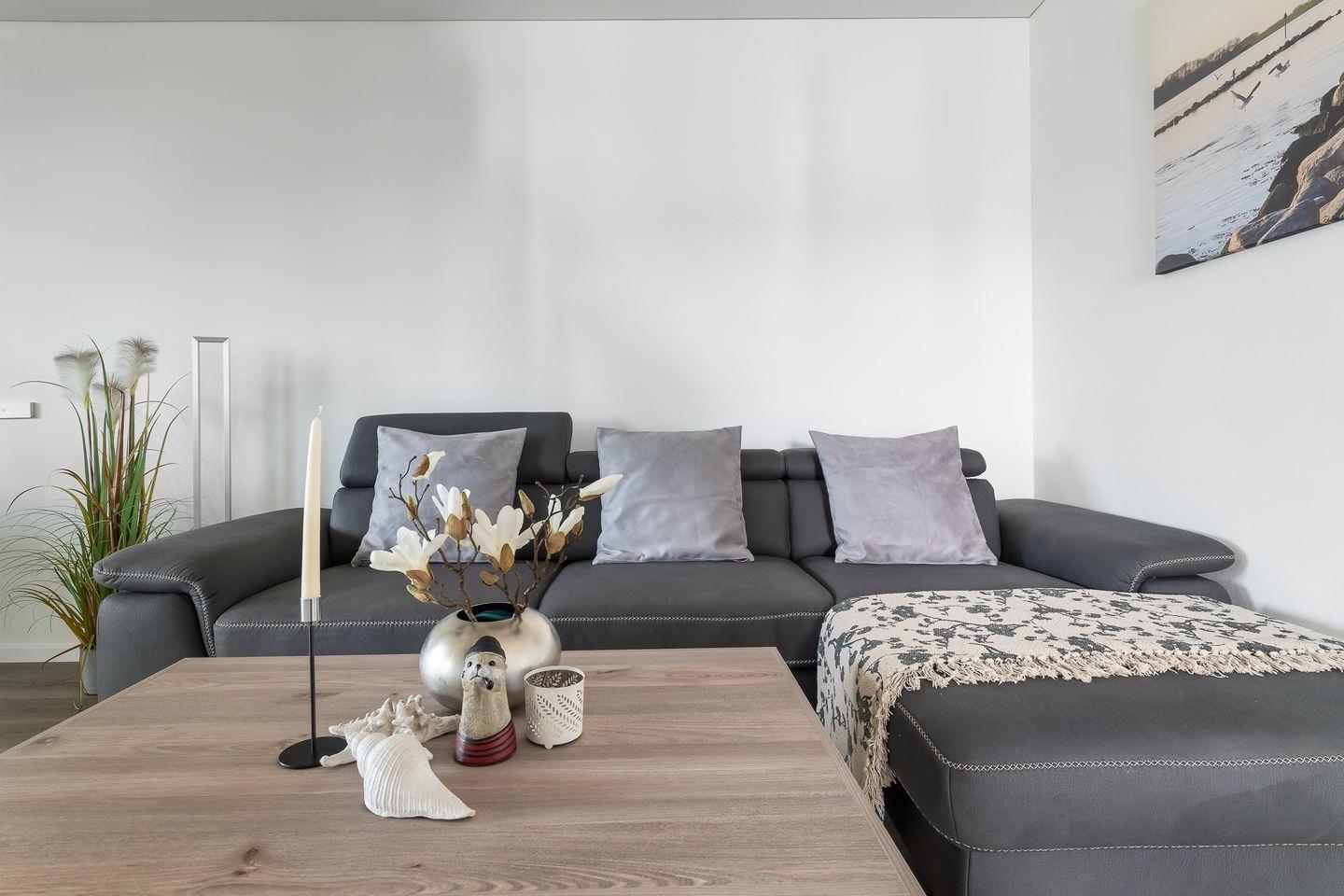 Das Wohnzimmer mit Kamin lädt zum Entspannen ein. Die offene Küche ist modern & voll ausgestattet. Beide Schlafzimmer sind hochwertig eingerichtet & verfügen über ein gemütliches Doppelbett. Im Bad hat eine ebenerdige Dusche und eine Infrarot-Sauna. Das Highlight ist die Terrasse mit wunderschönem Ausblick. Bitte beachten Sie, dass der Aufbau des OstseeResort Olpenitz noch nicht abgeschlossen ist und es in der Nähe zu Bautätigkeiten kommen kann.