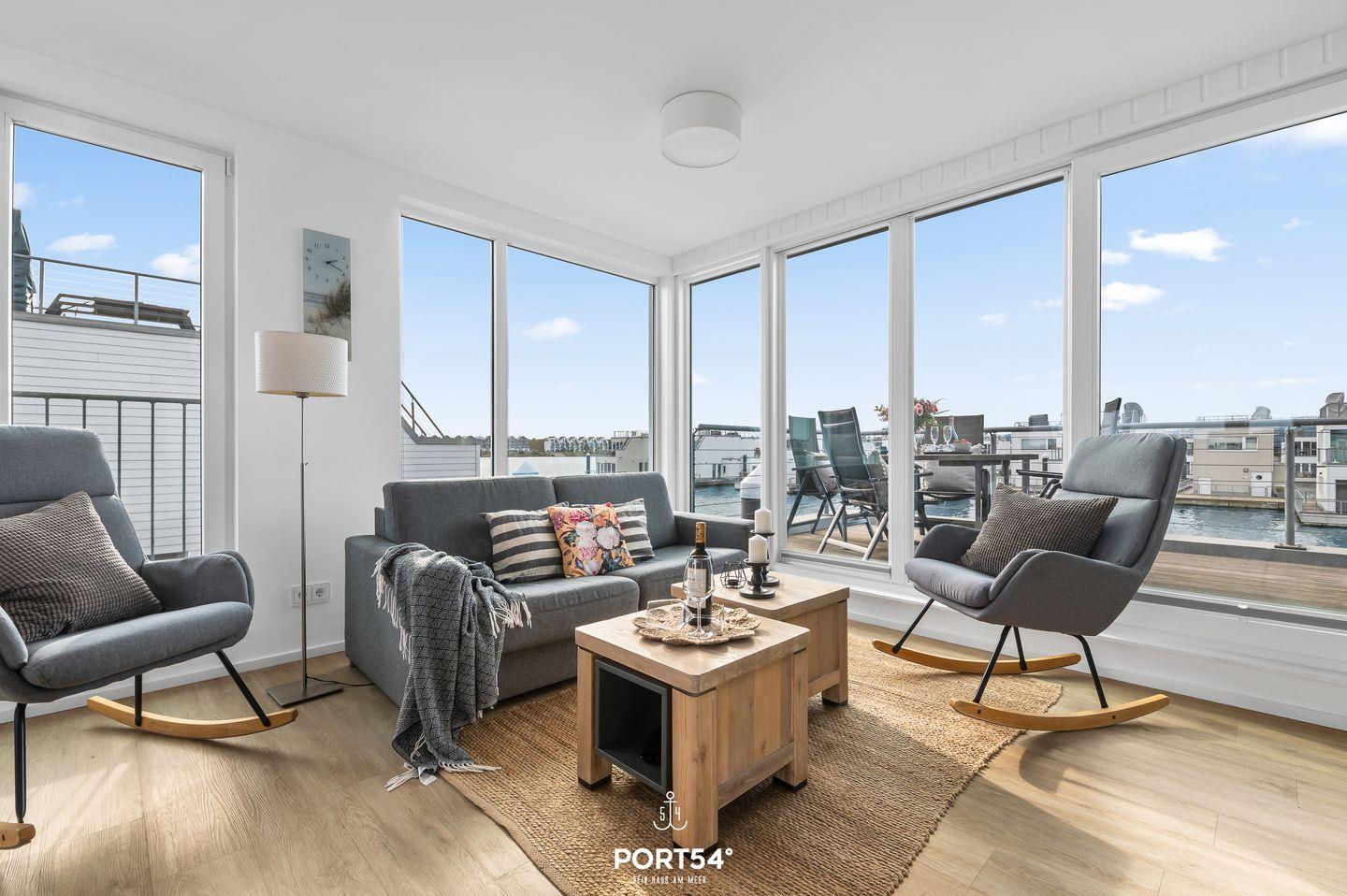Die 30m² große Dachterrasse bietet Dir einen atemberaubenden 360°-Blick auf die malerische Schönheit der Ostsee sowie des Ostseefjords Schlei und ist der perfekte Ort, um den Sonnenuntergang in der Hängematte zu genießen.