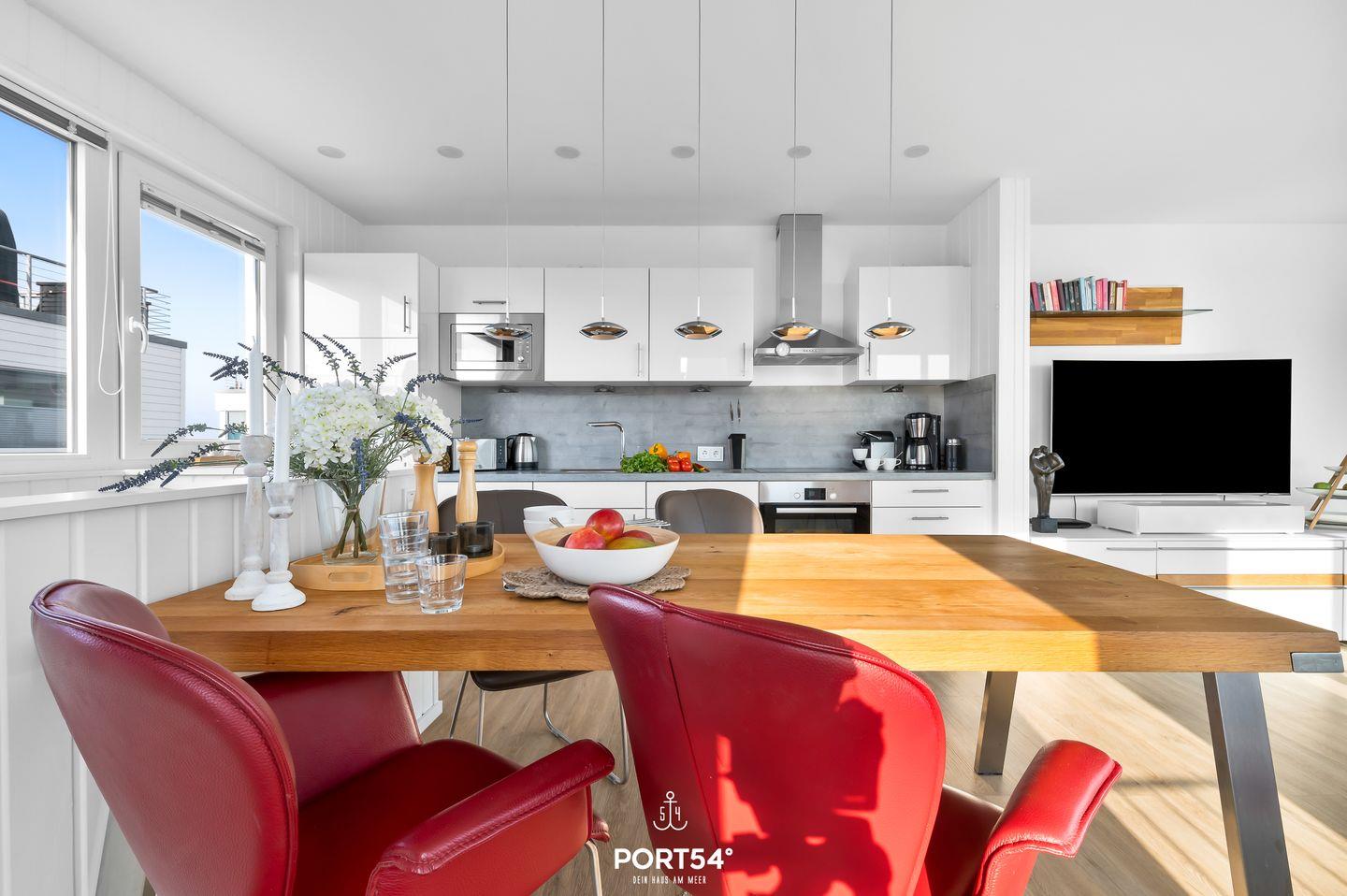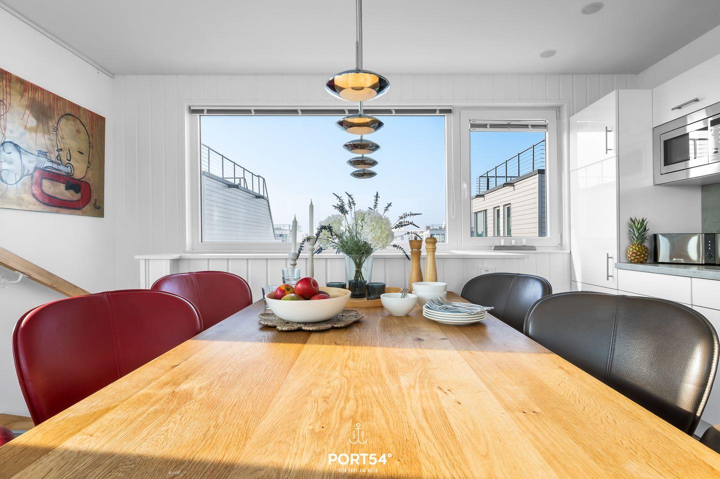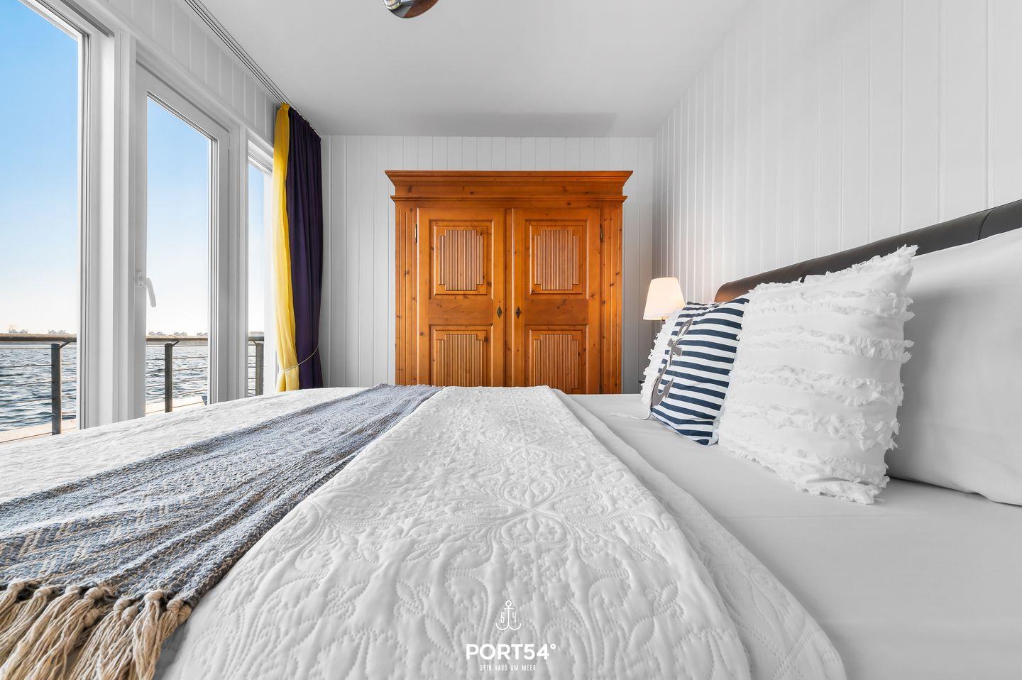 Das schwimmende Ferienhaus "Art Emotion" bietet auf großzügigen 97m² bis zu 4 Personen ein erstklassiges Urlaubserlebnis direkt an der Ostsee. Das Haus besticht durch seinen modernen Stil, ausgewählter Kunst und einer hochwertigen Ausstattung, die keine Wünsche offenlässt. Das Highlight ist zweifellos die großzügige Dachterrasse, die einen unvergleichlichen 360°-Panoramablick über die Schlei, die Ostsee und das malerische Hafenbecken des OstseeResorts Olpenitz ermöglicht. Hier können Sie es sich im Strandkorb oder auf den Sonnenliegen gemütlich machen und bei einem kühlen Getränk den Sonnenuntergang und die atemberaubenden Aussichten genießen. Im Erdgeschoss des Hauses befinden sich die beiden komfortablen Schlafzimmer. Das erste Schlafzimmer ist mit einem luxuriösen Boxspring-Doppelbett (180x200cm) ausgestattet, das für einen erholsamen Schlaf sorgt. Zusätzlich steht Ihnen hier ein kleiner Schreibtisch zur Verfügung. Von hier aus gelangen Sie auch auf die Terrasse und können direkt nach dem Aufstehen die frische Seeluft einatmen. Im zweiten Schlafzimmer befinden sich ein kleines Boxspring-Doppelbett (160x200cm), welches ebenfalls hohen Schlafkomfort bietet. Hier finden Sie einen Flachbild-Fernseher für Ihre Unterhaltung vor. Beide Schlafzimmer sind zudem mit Verdunkelungsmöglichkeiten und jeweils einem Kleiderschrank ausgestattet. Das Tageslichtbad sorgt mit der bodengleichen Dusche für höchsten Komfort. Auch ein Handtuchheizkörper, ein Kosmetikspiegel und ein Fön sind vorhanden. Ein weiteres Highlight ist die finnische Sauna, in der Sie sich hervorragend vom Alltagsstress erholen können. Der offene Wohn- und Essbereich befindet sich im Obergeschoss und bietet Ihnen dank bodentiefer Fenster eine tolle Aussicht. Die offene Küche ist mit Espressomaschine, Induktionsherd und vielem mehr bestens ausgestattet. Der angrenzende Essbereich bietet Platz für ausgedehnte Mahlzeiten. Im Wohnbereich lädt der Flachbild-Fernseher zum Entspannen ein. Ein Blu-Ray Player und Magenta TV ermöglichen Ihnen gemütliche Filmeabende. Vom Wohnbereich aus gelangen Sie auf den Balkon. Verbringen Sie gesellige Grillabende, oder machen Sie Ihr gemeinsames Frühstück unter dem Sonnenschirm zu einem unvergesslichen Erlebnis. Über den Balkon gelangen Sie zur Dachterrasse. Für Ihren PKW befindet sich vor der Steg-Anlage ein kostenloser Stellplatz, alternativ können Sie auch mit Ihrem Boot anreisen und dies am Haus vertäuen. Das schwimmende Ferienhaus "Art Emotion" ermöglicht Ihnen einen traumhaften Urlaub auf dem Wasser, voller Komfort, Kunst und atemberaubender Natur.