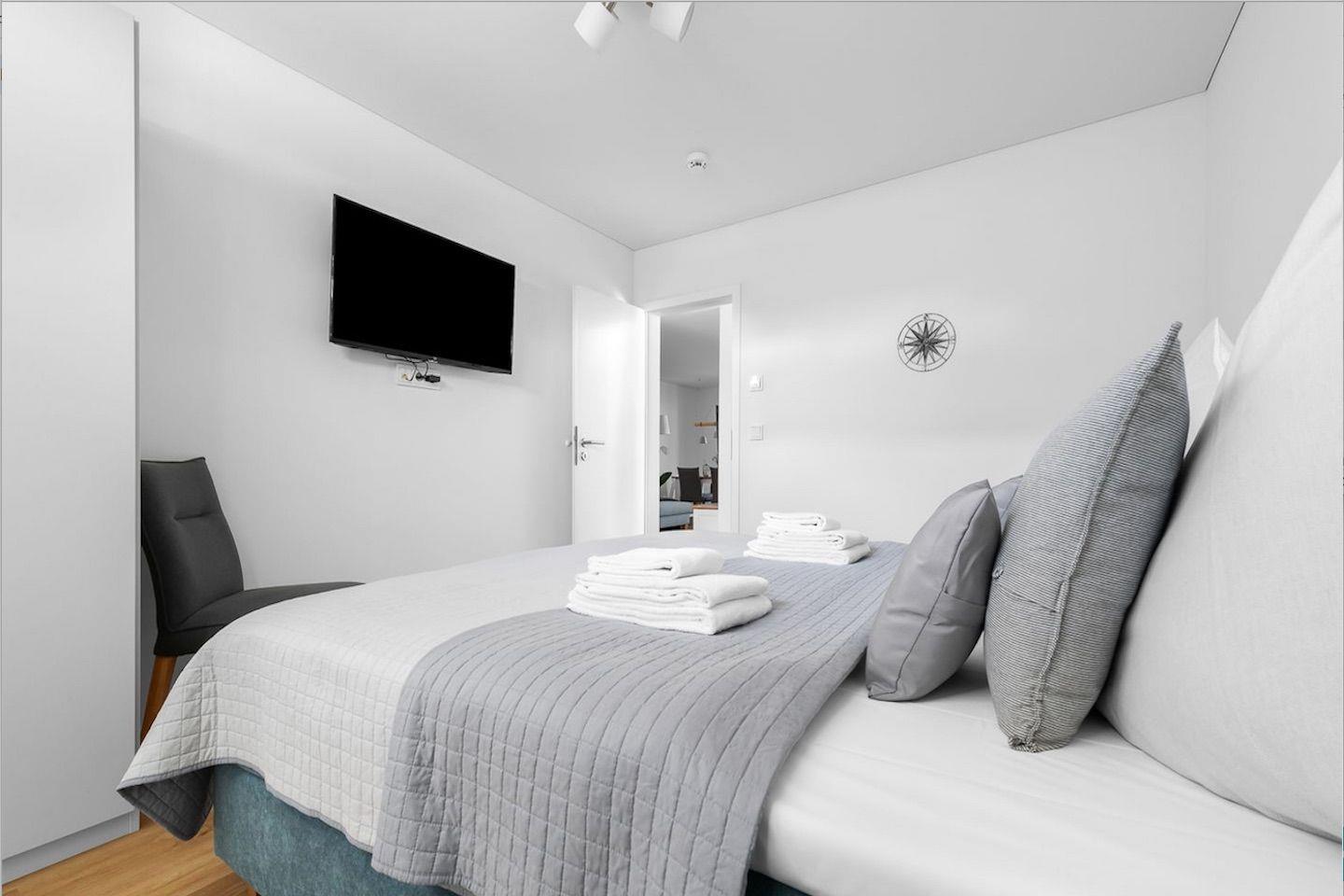 Willkommen in der stilvollen und gemütlichen Ferienwohnung "Maltes Ostseekoje". Diese moderne Wohnung bietet alles, was Sie für einen erholsamen Urlaub benötigen. Diese charmante Ferienwohnung, entdeckt von dem kleinen Malteser Malte während seiner Reisen, verspricht einen unvergesslichen Aufenthalt an der Ostseeküste. Nur einen kurzen Spaziergang entfernt liegt der Weidefelder Strand, dessen sanftes Rauschen und feiner Sand jeden Strandliebhaber begeistern werden. Die lebendige Hafenpromenade ist ebenfalls in greifbarer Nähe und der Hafen selbst nur wenige Meter entfernt. Der offene Wohn- und Essbereich lädt mit einem komfortablen Schlafsofa und einem modernen Flachbild -TV zu entspannten Abenden ein. Hier können Sie nach einem Tag am Strand oder nach einem Ausflug in die Umgebung gemütlich zusammensitzen und den Tag ausklingen lassen. An kühleren Tagen spendet ein Kaminofen eine wohlige Wärme. Die voll ausgestattete Küche bietet alles, was Sie für die Zubereitung von Mahlzeiten benötigen, inklusive moderner Elektrogeräte und ausreichend Geschirr. Die großzügige Terrasse ist mit bequemen Gartenmöbeln, Sonnenliegen, einem Grill und einem Strandkorb ausgestattet. Hier können Sie die frische Ostseeluft genießen, während Sie Ihren Morgenkaffee trinken oder den Tag bei einem Glas Wein ausklingen lassen. Die Wohnung verfügt über zwei komfortable Schlafzimmer. Das Hauptschlafzimmer ist mit einem großen Boxspring-Doppelbett (180x200cm), einem Kleiderschrank und einem zusätzlichen Flachbild-TV ausgestattet, was höchsten Schlafkomfort und Unterhaltung verspricht. Das zweite Schlafzimmer bietet zwei einzelne Boxspringbetten (je 90x200cm) und ebenfalls einen Smart-TV. Beide Schlafzimmer sind mit Verdunklungsmöglichkeiten und Insektenschutzgittern ausgestattet, um Ihnen erholsame Nächte zu garantieren. Das moderne Badezimmer ist ein echtes Wohlfühlparadies. Es verfügt über eine bodengleiche Dusche und eine Infrarotsauna, die besonders an kühleren Tagen für entspannende Momente sorgt. Eine Waschmaschine steht Ihnen ebenfalls zur Verfügung, was besonders bei längeren Aufenthalten praktisch ist. Zudem befinden sich ein Kosmetikspiegel, ein Handtuchheizkörper und ein Föhn im Bad. Für Gäste, die mit dem Fahrrad die Umgebung erkunden möchten, gibt es einen abschließbaren Fahrradschuppen, in dem Ihre Räder sicher untergebracht sind. Ein PKW-Stellplatz ist ebenfalls vorhanden. Ein Kinderreisebett, ein Hochstuhl und ein Kindertritthocker stehen für die kleinen Gäste bereit. Hunde sind in der "Maltes Ostseekoje" herzlich willkommen. Vor Ort stehen Hundenäpfe und ein mobiler Weidezaun bereit, sodass sich auch Ihre vierbeinigen Freunde von Anfang an wohlfühlen. Erleben Sie einen unvergesslichen Urlaub in der "Maltes Ostseekoje" – Ihrem gemütlichen Zuhause an der Ostsee!