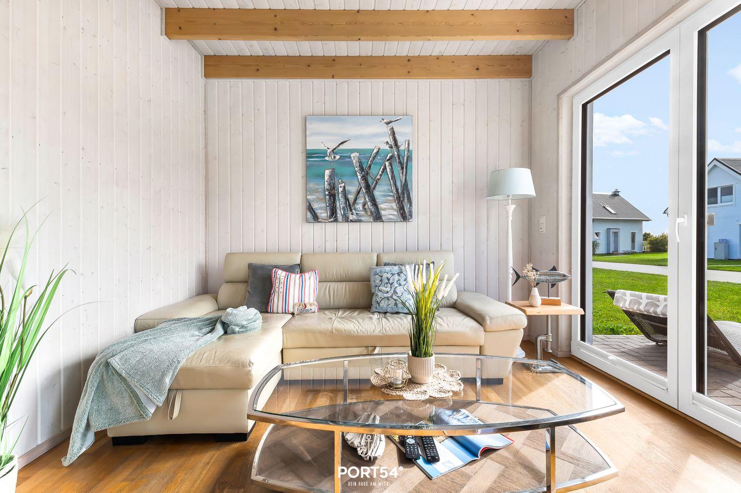 Das Ferienhaus Meeresmuschel bietet auf 82m² einen Rückzugsort in unmittelbarer Nähe zur Ostsee. Der lichtdurchflutete Wohn- und Essbereich mit Kamin und umbaubarem Schlafsofa lädt zum Entspannen ein. Die Küche ist voll ausgestattet. Im Erdgeschoss erwartet Sie ein Badezimmer mit Infrarot-Sauna und ebenerdiger Dusche. Im Obergeschoss befinden sich zwei Schlafzimmer mit Boxspringbetten. Die Terrasse ist ausgestattet mit Outdoor-Möbeln und einem Grill. Ein eigener Parkplatz steht zur Verfügung.