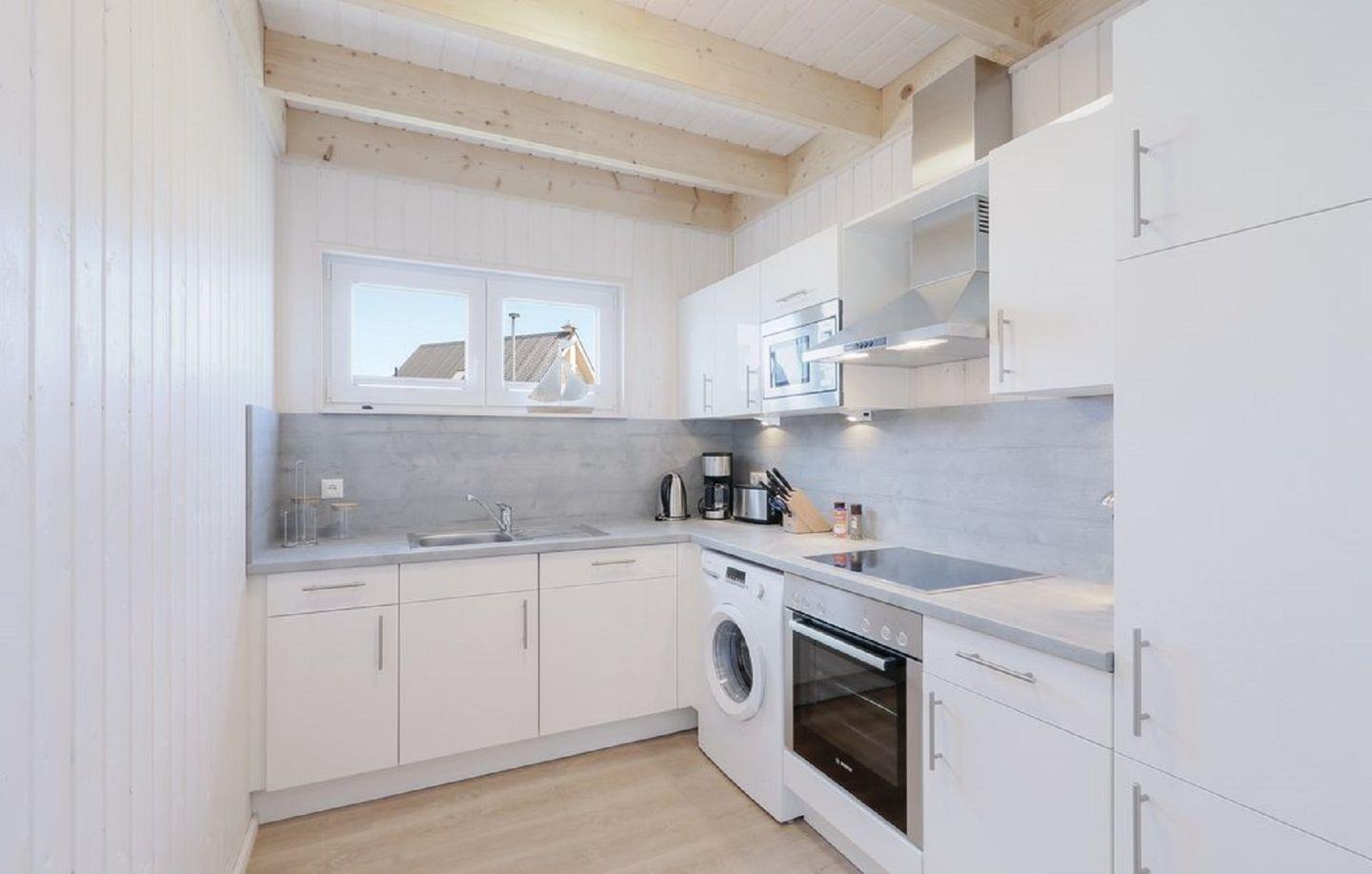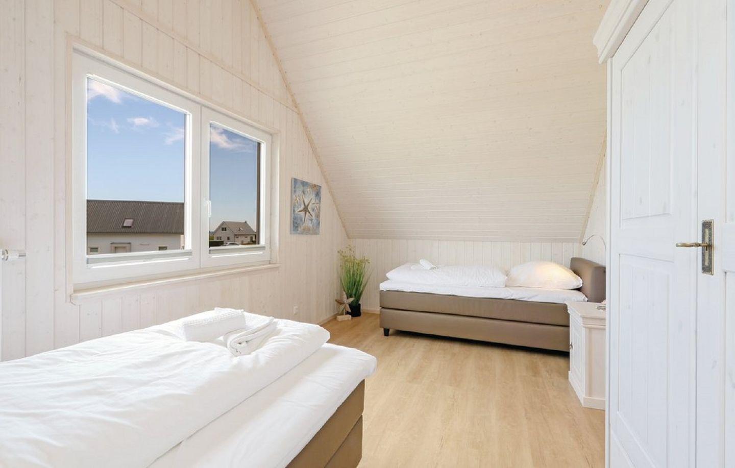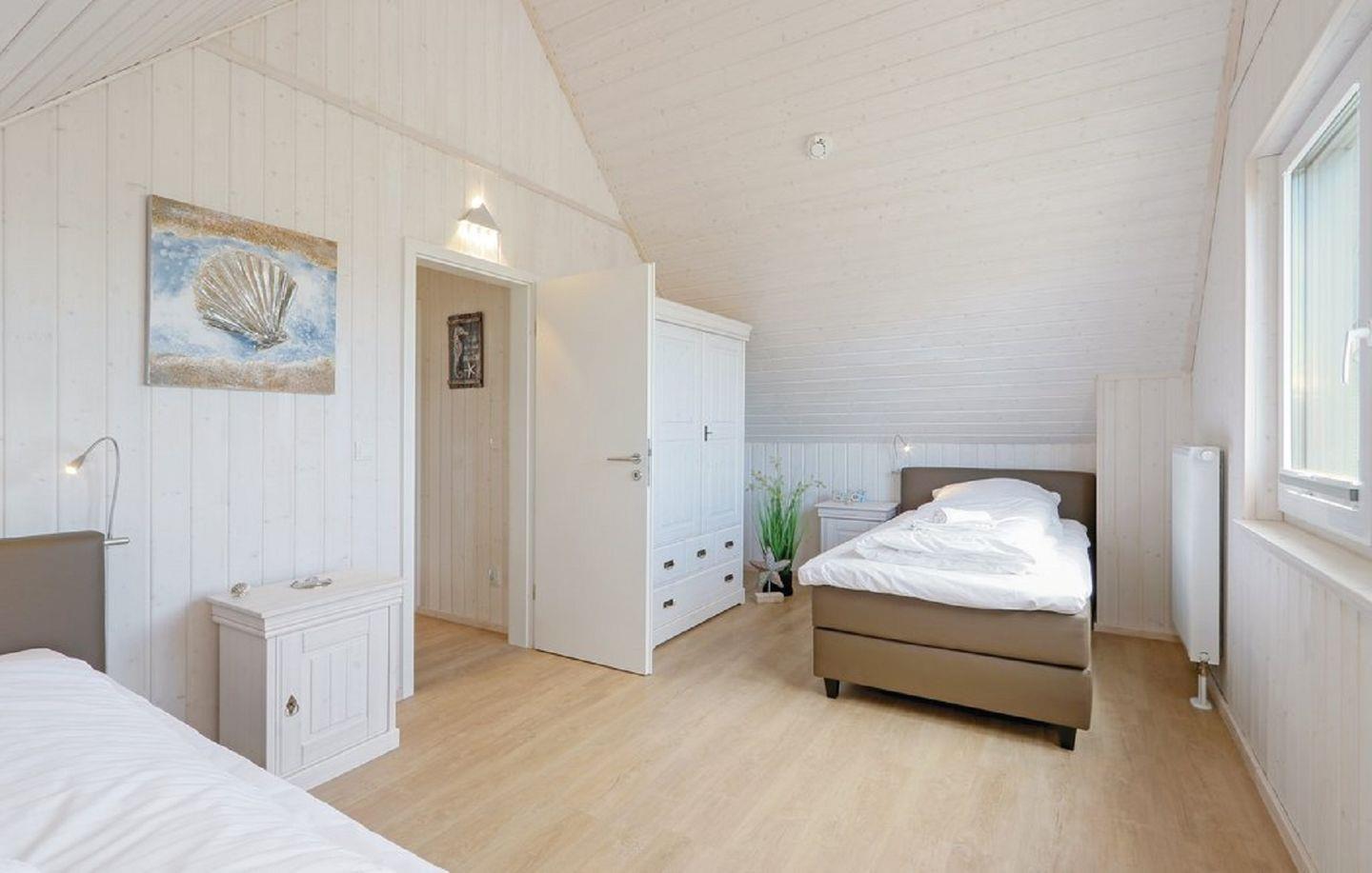 Herzlich Willkommen im Ferienhaus "to Huus" im OstseeResort Olpenitz. Ihr freistehendes Ferienhaus besticht durch seine Lage, umgeben von einer grünen Wiese in unmittelbarer Nähe zur Ostsee. Bereits bei Eintritt verspüren Sie die Gemütlichkeit Ihres Ferienhauses. Hier besticht nicht nur die hochwertige Einrichtung, sondern auch als Highlight: ein Kamin im Wohnzimmer, der eine wohlige Wärme ausstrahlt. An kalten Tagen können Sie es sich dort nach langen Strand-Spaziergängen gemütlich machen. Liebevoll ausgesuchte Dekoration rundet die gemütliche Atmosphäre ab. Bei Sonnenschein sorgen die großen bodentiefen Fenster für ein lichtdurchflutetes, großzügiges Wohngefühl. Im Wohnzimmer steht Ihnen ein Schlafsofa zur Verfügung und bietet somit einen Schlafplatz für ein Kind. Weiterhin befindet sich im Erdgeschoss ein modernes Bad mit einer Infrarotkabine, Dusche und WC. Die modern eingerichtete Küche lässt keine Wünsche offen. Sie finden hier alles, um sich und Ihre Familie oder Freunde kulinarisch verwöhnen zu können. Im Obergeschoss befinden sich zwei großzügige Schlafzimmer mit Boxspringbetten. Ein Schlafzimmer verfügt über einen Kleiderschrank, ein Boxspringbett (180x200cm) sowie einen Flachbild-TV, im zweiten Schlafzimmer befinden sich zwei Einzel-Boxspringbetten (je 90x200cm) und ebenfalls ein Kleiderschrank. Verdunkelungsmöglichkeiten und Insektenschutz ermöglichen einen entspannten Schlaf. Ein zweites Bad mit Dachfenster, ausgestattet mit Badewanne, Handtuchheizung, WC und Föhn rundet das Obergeschoss ab. Vom Wohnzimmer aus betreten Sie die nach Nordosten ausgerichtete, mit einem Wind- und Sichtschutz versehene große Terrasse, die zum Entspannen einlädt. Sie bietet neben Gartenmöbeln einen Sonnenschirm, sowie einen Holzkohlegrill. Gemütlichem Grillen an lauen Sommerabenden steht also nichts im Wege. Für Ihre mitgebrachten oder im Tourguide gemieteten Fahrräder steht Ihnen ein abschließbarer Schuppen zur Verfügung. Ein Parkplatz für Ihren PKW rundet das Angebot ab. Das Haus bietet Platz für 4 Erwachsene und ein Kind.