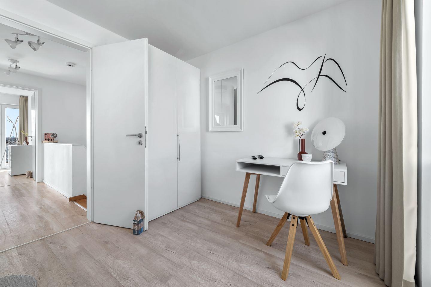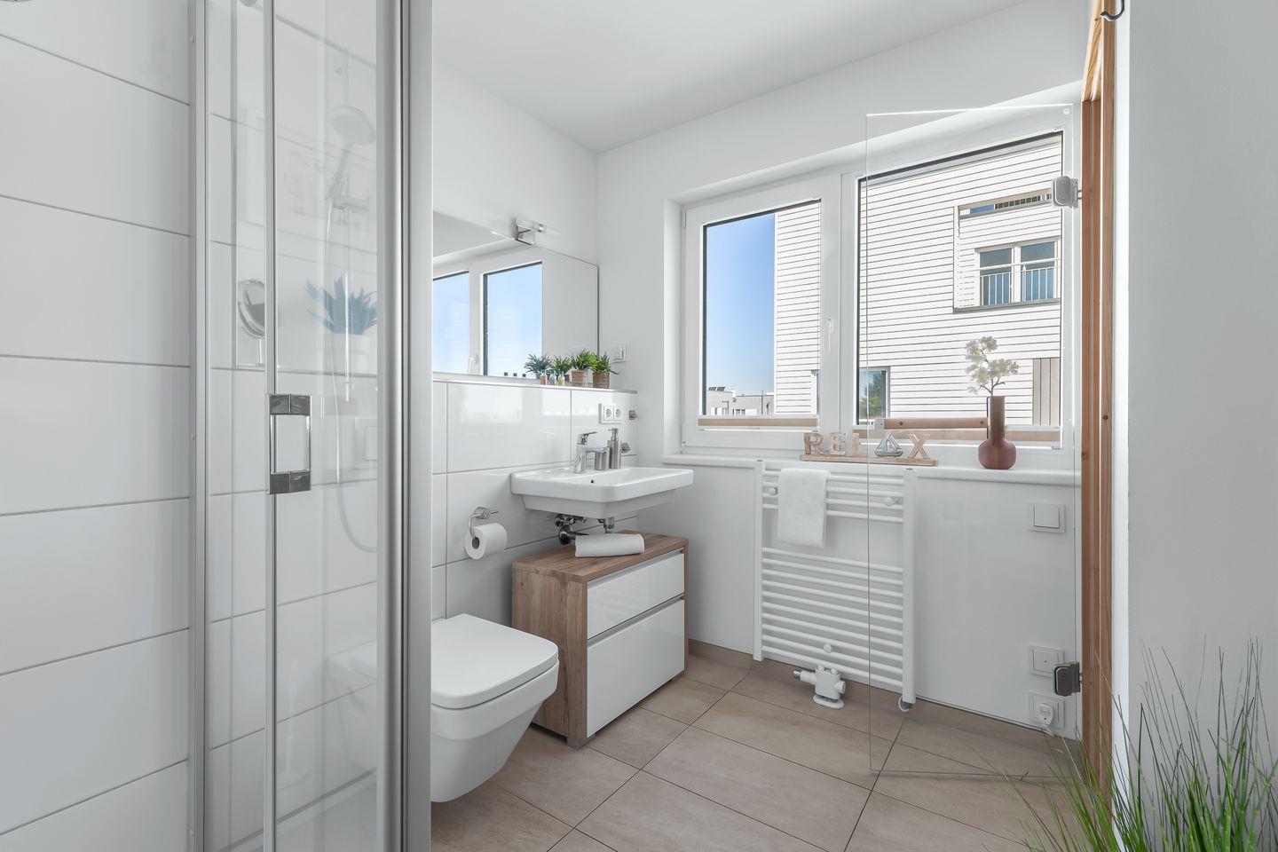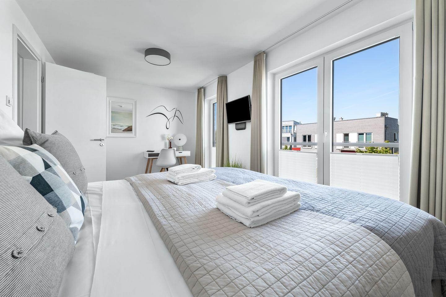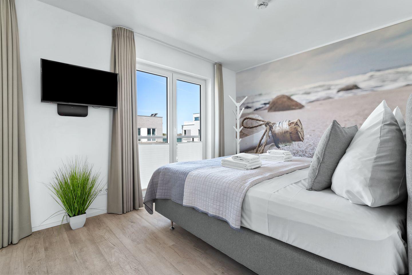 Mit dem Segel- und Sportboothafen des OstseeResort Olpenitz zur einen und dem Ostseefjord Schlei zur anderen Seite, überzeugt dieses Ferienhaus "Palstek" durch seine rundum Wasserlage auf einer schmalen Landzunge umgeben von Wasser. Der weiße Sandstrand des OstseeResort Olpenitz sowie der Weidefelder Sandstrand befinden sich nur wenige Gehminuten entfernt. Ihr Blick fällt durch bodentiefe Panorama Fensterfronten auf eine wunderschöne Wasserkulisse. Auf jeder Ebene verfügt das Ferienhaus über eine Terrasse mit Hafenblick. Das Highlight: Die große 360° Dachterrasse mit ganztags Sonne. Und wer sich einen Wellness Urlaub wünscht, der wird hier fündig. Die Finnische Sauna und eine Relax-Whirlwanne sorgen für Entspannung nach einem ausgiebigen Strandspaziergang. Der offen gestaltete, lichtdurchflutete Wohn- und Essbereich befindet sich im Erdgeschoss des Ferienobjekts. Von hier aus gelangt man direkt auf die angrenzende Terrasse. Frühstücken bei Morgensonne oder ein gemeinsamer Grillabend – Hafenkino ist hierbei garantiert. Die Küche lässt keine Wünsche offen. Rundum ausgestattet erlaubt sie vollen Urlaubskomfort. Das ganze Haus ist mit Fußbodenheizung ausgestattet. Finnische Sauna, Whirlwanne und Kaminofen versprechen Komfort zu jeder Jahreszeit und machen dieses Ferienhaus richtig kuschelig – auch an nordischen Schietwettertagen. Für zusätzliche Unterhaltung sorgt das Smart TV mit Telekom Home Entertainment Programm. Der Ruhebereich des Ferienhauses befindet sich im ersten Obergeschoss. In zwei Schlafzimmern dürfen Sie einschlafen und aufwachen bei Wasserblick. Das Hauptschlafzimmer ist zum Hafen hin ausgerichtet und mit einem Doppelbett (180x200cm)ausgestattet. Bei einem morgendlichen Kaffee können Sie auf der angrenzenden Terrasse ablegende Segelschiffe beobachten. Das zweite Schlafzimmer erlaubt einen Blick auf den Ostseefjord Schlei und verfügt über zwei bequeme Einzel-Boxspringbetten (je 90x200cm) sowie einen zusätzlichen Flatscreen-TV. Ebenfalls auf dieser Ebene befindet sich das voll ausgestattete Badezimmer mit Wasserblick. Ein Gäste WC im Erdgeschoss sorgt für zusätzlichen Komfort. Bei dem Ferienhaus "Palstek" handelt es sich um eine Haushälfte. Direkt vor dem Haus stehen ein Stellplatz sowie ein eigener Fahrradschuppen mit extra Fahrradständern zur Verfügung. Homeoffice mit Wasserblick? Kein Problem in "Palstek" - für ein Schreibtisch ist gesorgt.