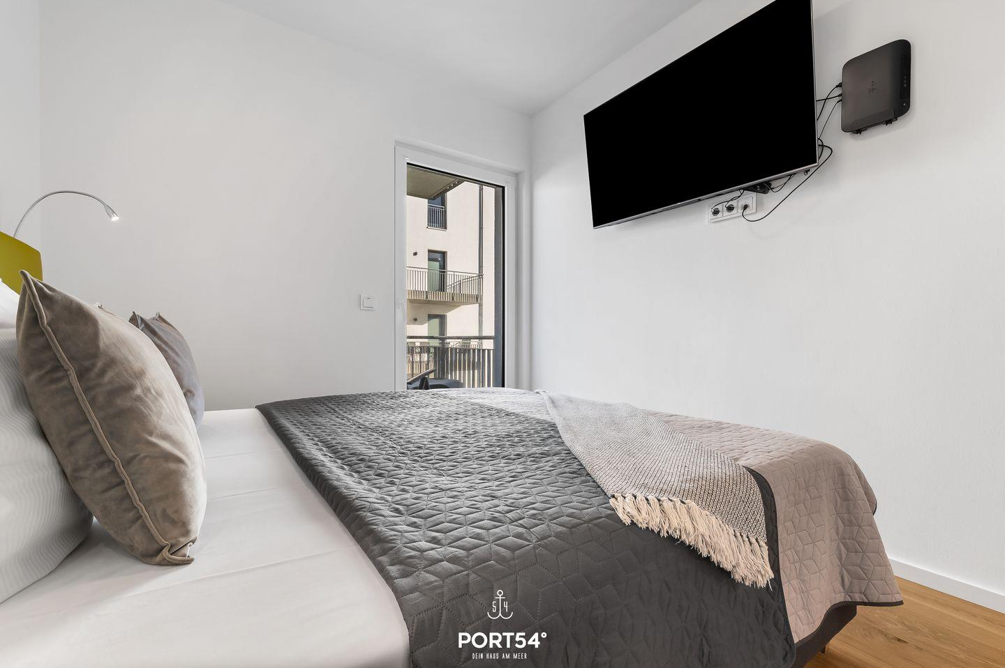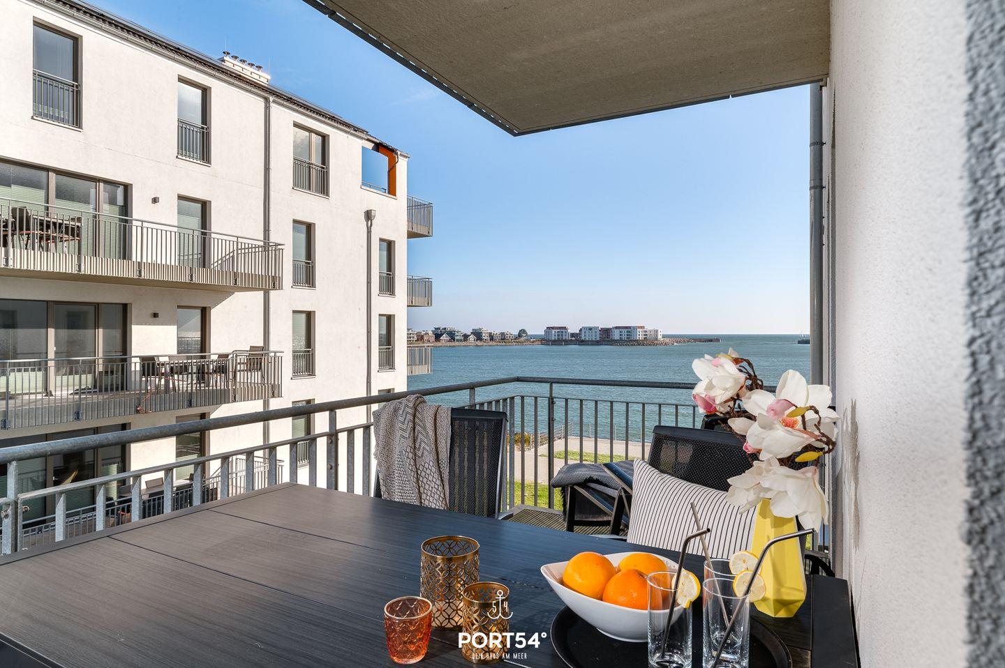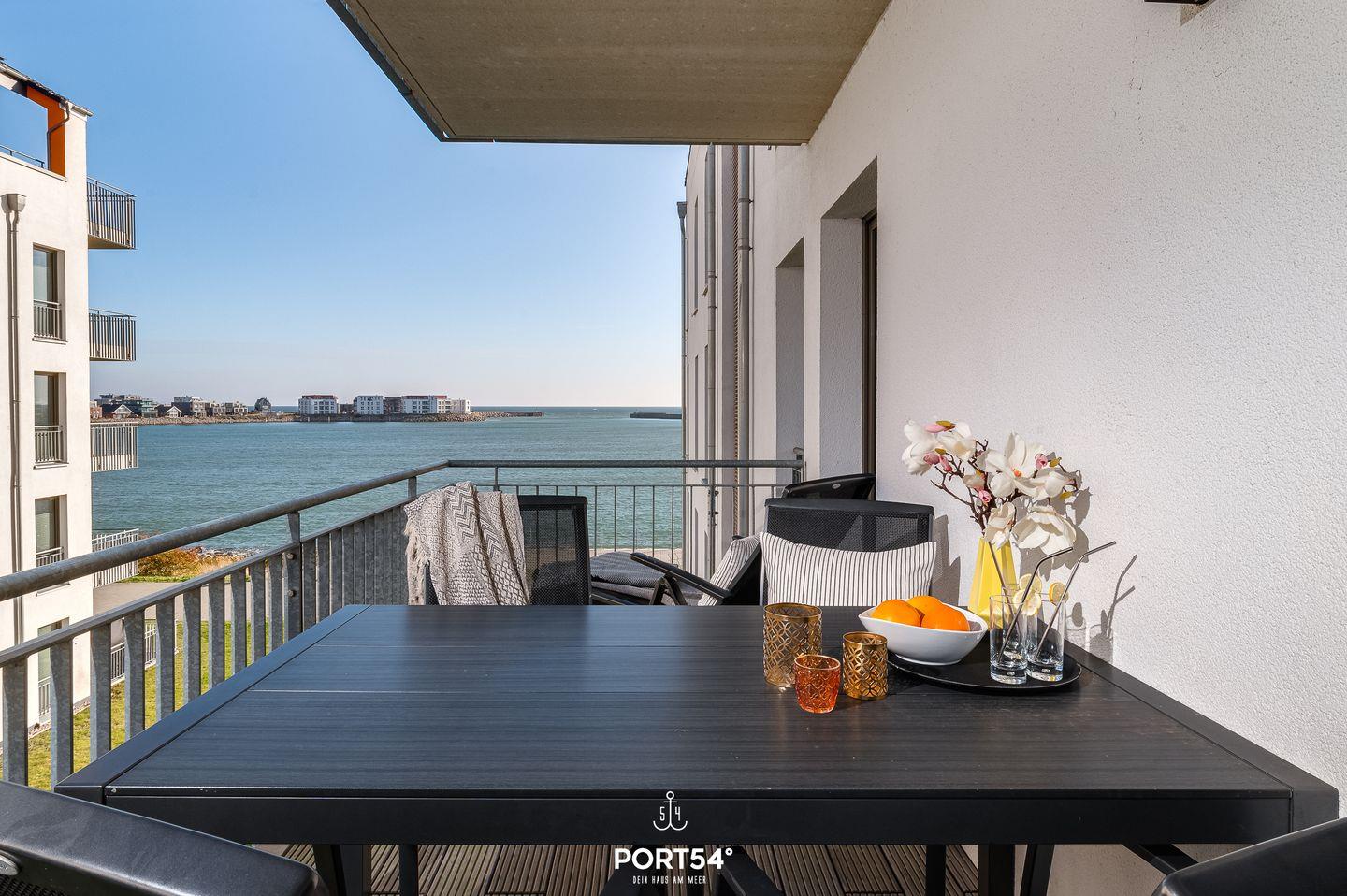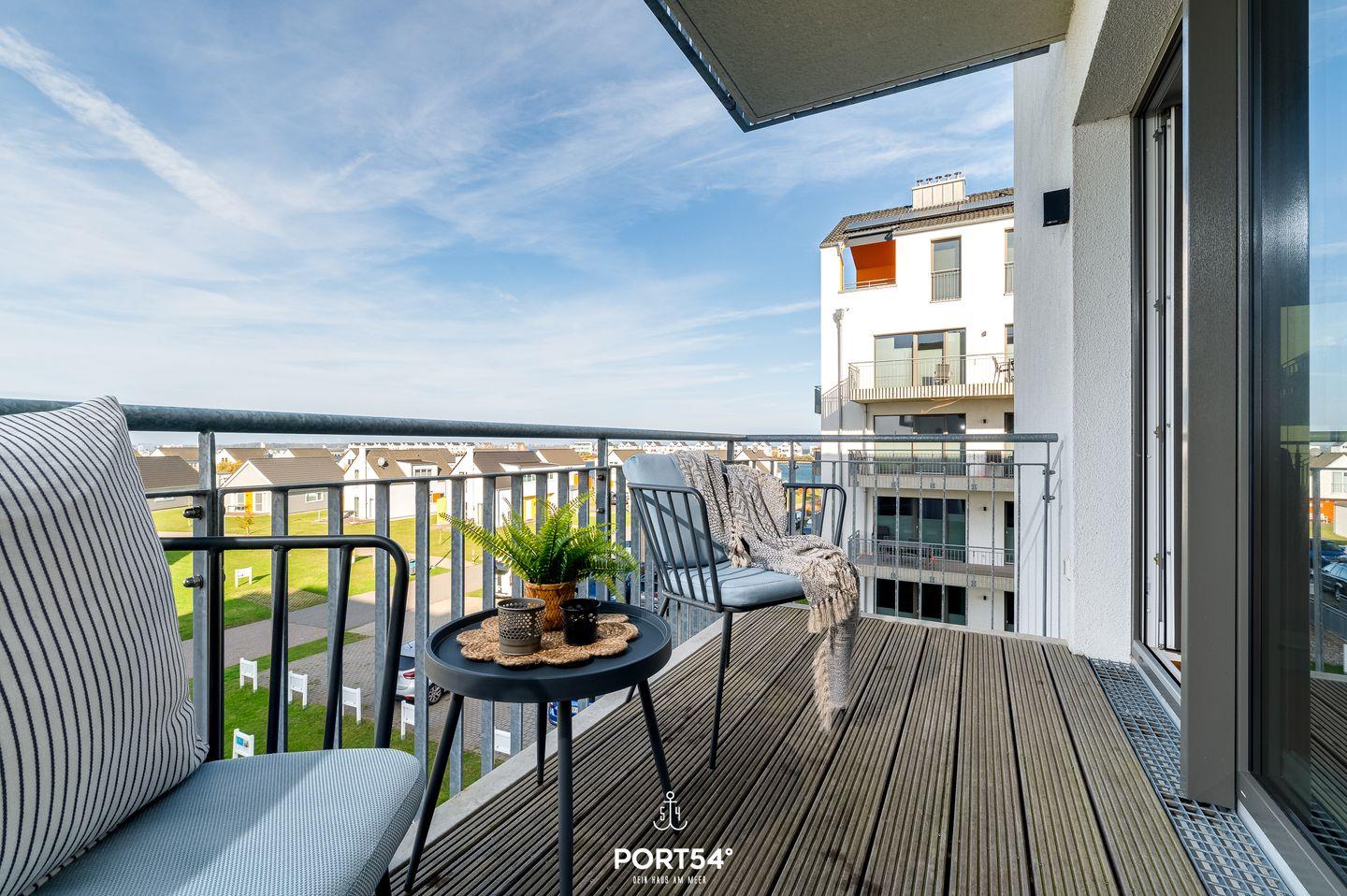 Ein besonderes Highlight sind gleich zwei Balkone, die Dir sowohl einen Blick auf die Ostsee als auch über das Resort ermöglichen. Beide Balkone sind mit Gartenmöbeln ausgestattet. Der Balkon mit Wasserblick verfügt zusätzlich über eine Sonnenliege und ausreichend Platz für den Elektrogrill. Hier kannst Du gemütliche Grillabende mit einer tollen Aussicht verbringen. Auf diesen Balkon gelangst Du von beiden Schlafzimmern aus.