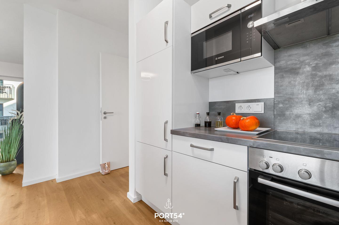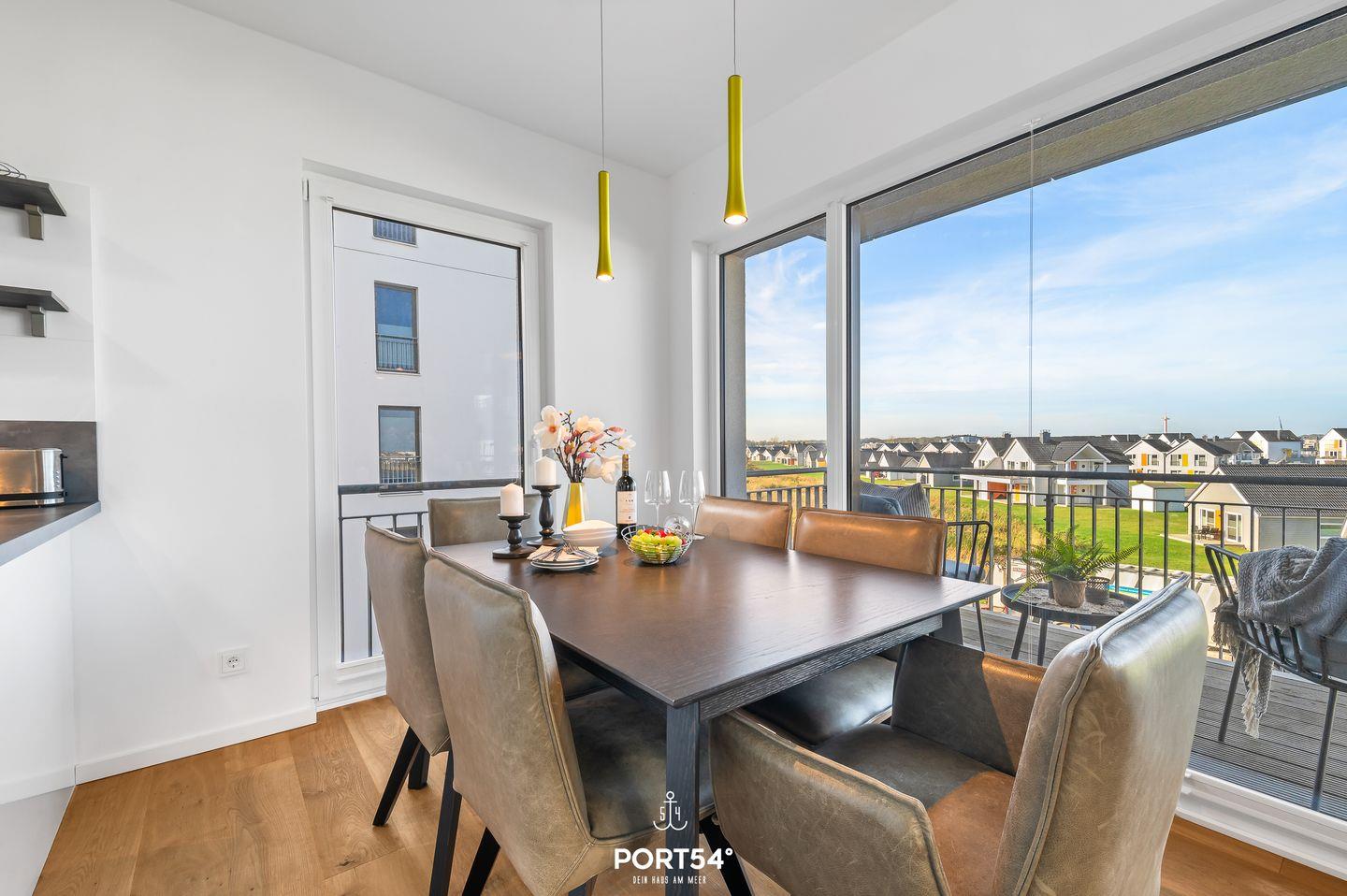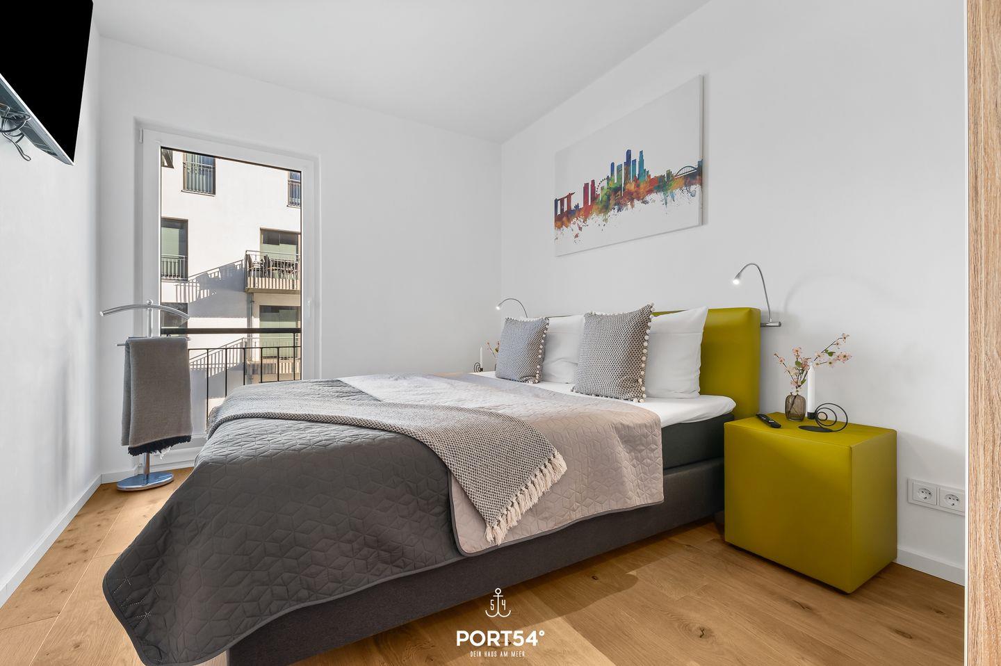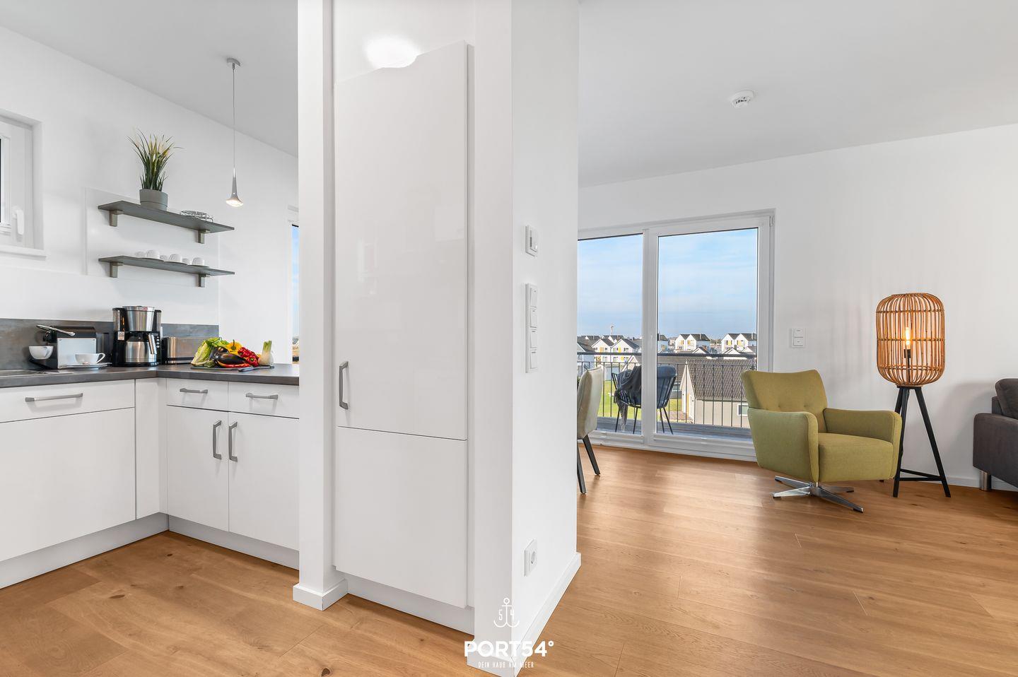 Ein besonderes Highlight sind gleich zwei Balkone, die Dir sowohl einen Blick auf die Ostsee als auch über das Resort ermöglichen. Beide Balkone sind mit Gartenmöbeln ausgestattet. Der Balkon mit Wasserblick verfügt zusätzlich über eine Sonnenliege und ausreichend Platz für den Elektrogrill. Hier kannst Du gemütliche Grillabende mit einer tollen Aussicht verbringen. Auf diesen Balkon gelangst Du von beiden Schlafzimmern aus.