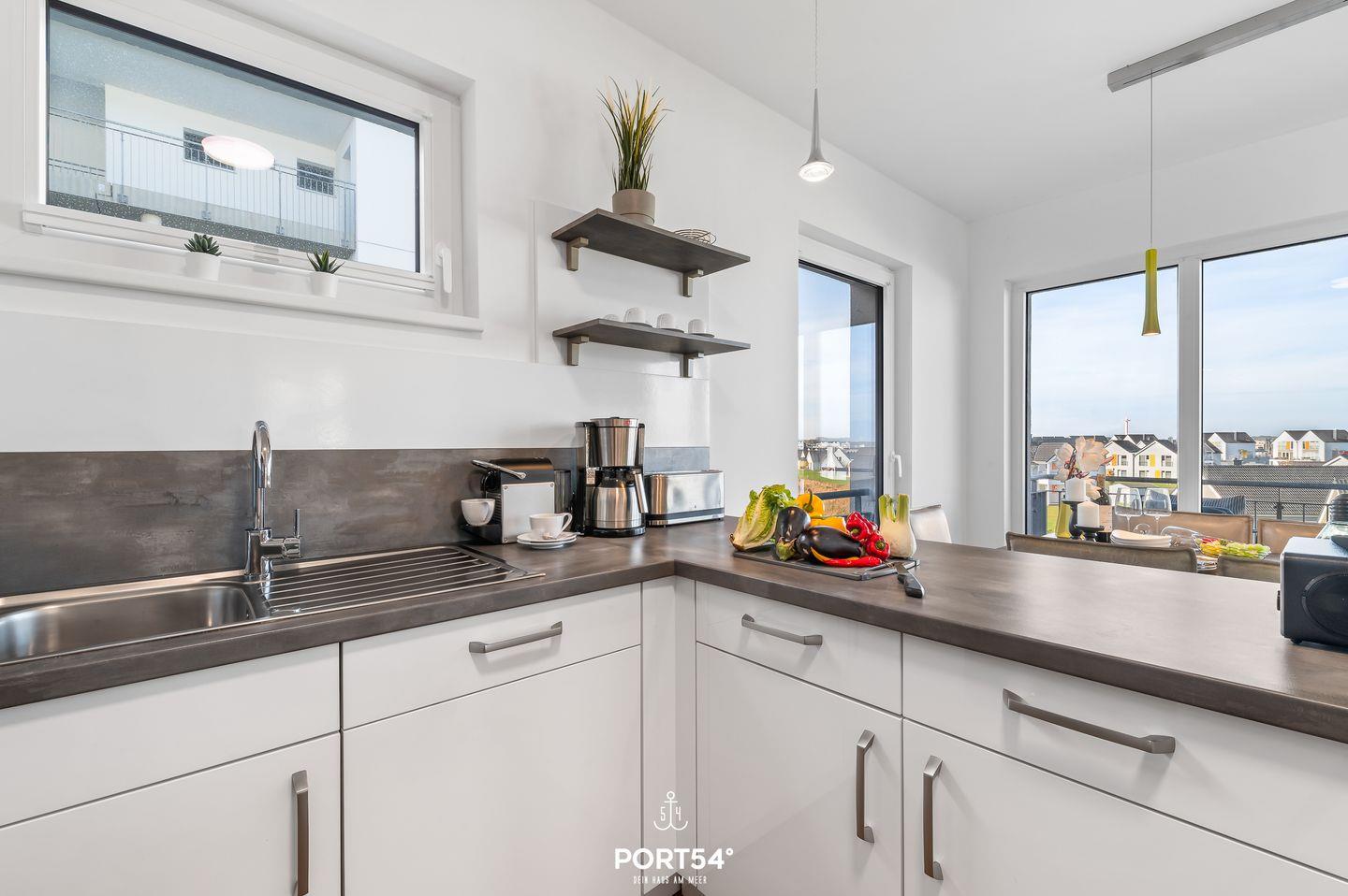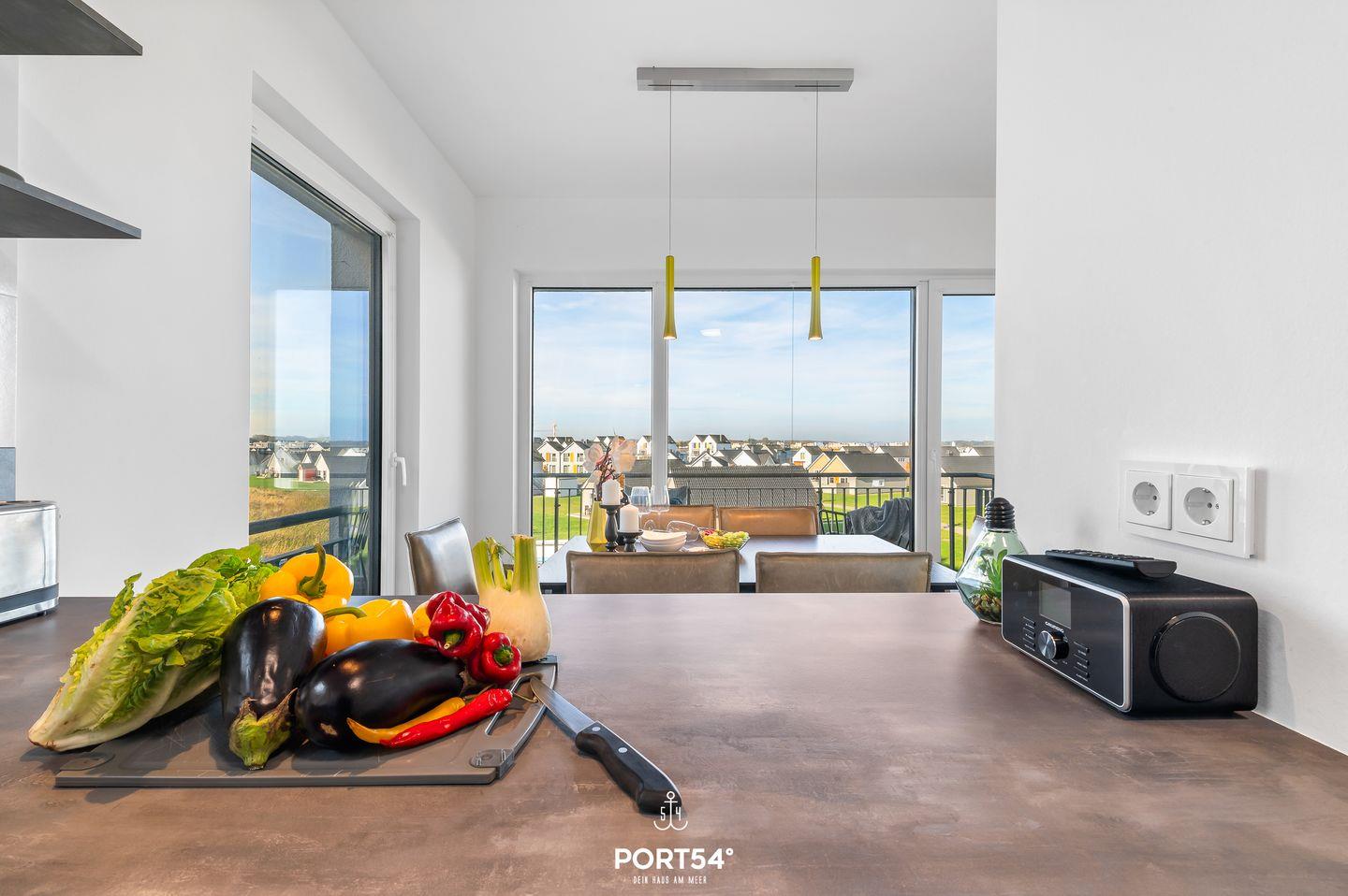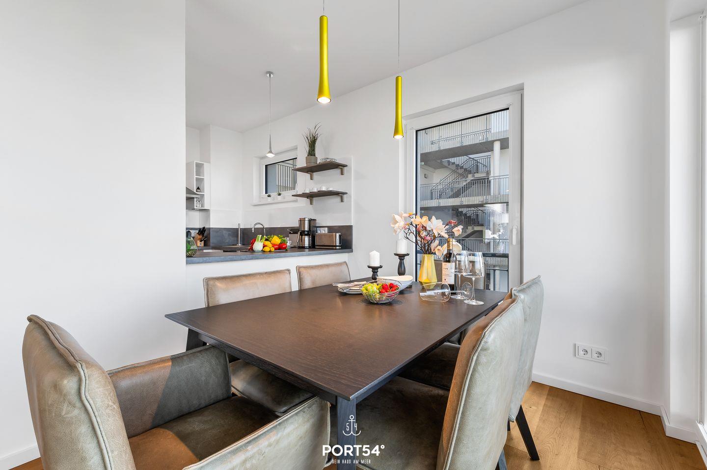 Die offene Küche ist mit einer Espressomaschine und vielem mehr hervorragend ausgestattet. Angrenzend befindet sich der Essbereich, in dem Du auch gesellige Spieleabende mit der hauseigenen Spielesammlung verbringen kannst.
