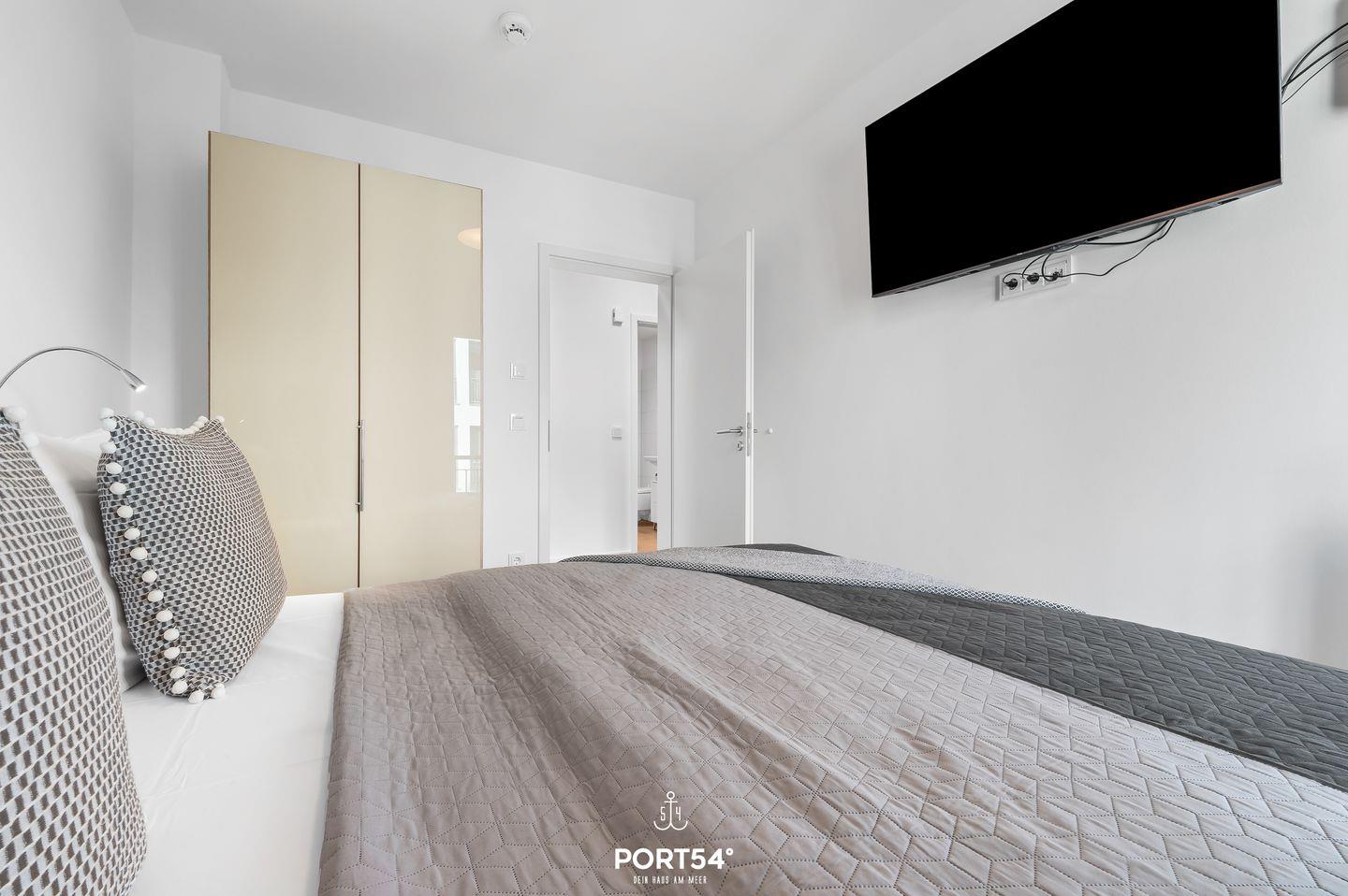 Das Hauptschlafzimmer ist mit einem bequemen Boxspring-Doppelbett (180x200 cm) ausgestattet, während das zweite Schlafzimmer mit zwei gemütlichen Boxspring-Einzelbetten (90x200 cm) überzeugt. Beide Schlafzimmer bieten Dir mit Verdunkelungsmöglichkeiten, einem Kleiderschrank und einem Flachbild-TV hohen Komfort.