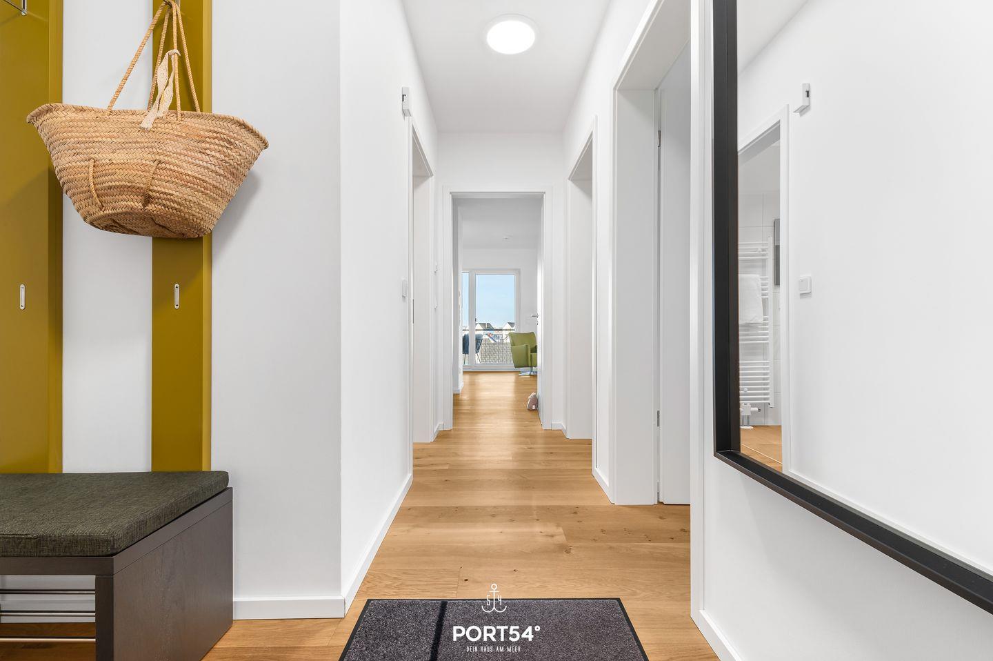 Genieße Deinen Urlaub in Deinem „Zuhause am Meer“ im OstseeResort Olpenitz. Die 76 m² große Ferienwohnung befindet sich im 2. Obergeschoss und bietet Dir Platz für bis zu 4 Personen.