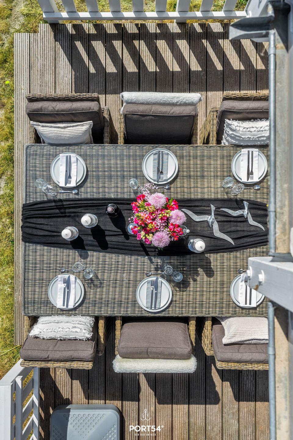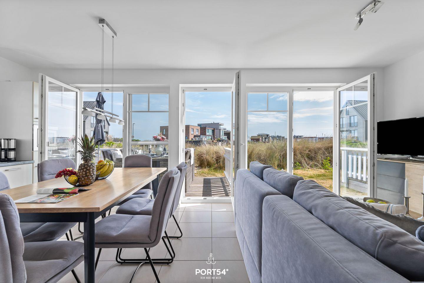 Im Erdgeschoss befindet sich der offene Wohn- und Essbereich. Mach es Dir auf dem Sofa bequem und lass Dich von einem spannenden Film auf dem Flachbild-Fernseher unterhalten. Ein Blu-Ray Player ist ebenfalls vorhanden. Die offene Küche ist voll ausgestattet. Von Espressomaschine über Eierkocher bis hin zum Toaster ermöglicht Dir die Küche, tolle Gerichte zuzubereiten. Genieße Dein Frühstück am Esstisch oder auf der möblierten Terrasse, die sich direkt am Strand befindet. Beim Blick auf den gepflegten Sandstrand und die Ostsee ist Urlaubs-Feeling garantiert. Stell Dir vor, wie Du tolle Grillabende unter einem Sonnenschirm beim Wellenrauschen verbringst. Im Erdgeschoss ist zudem ein Gäste-WC untergebracht.