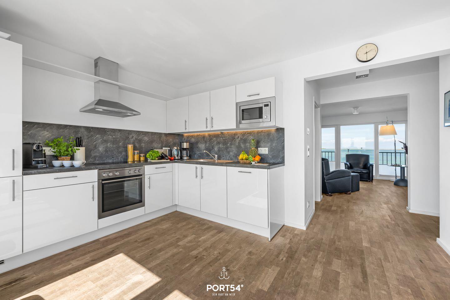 Die offene Küche ist hervorragend ausgestattet.