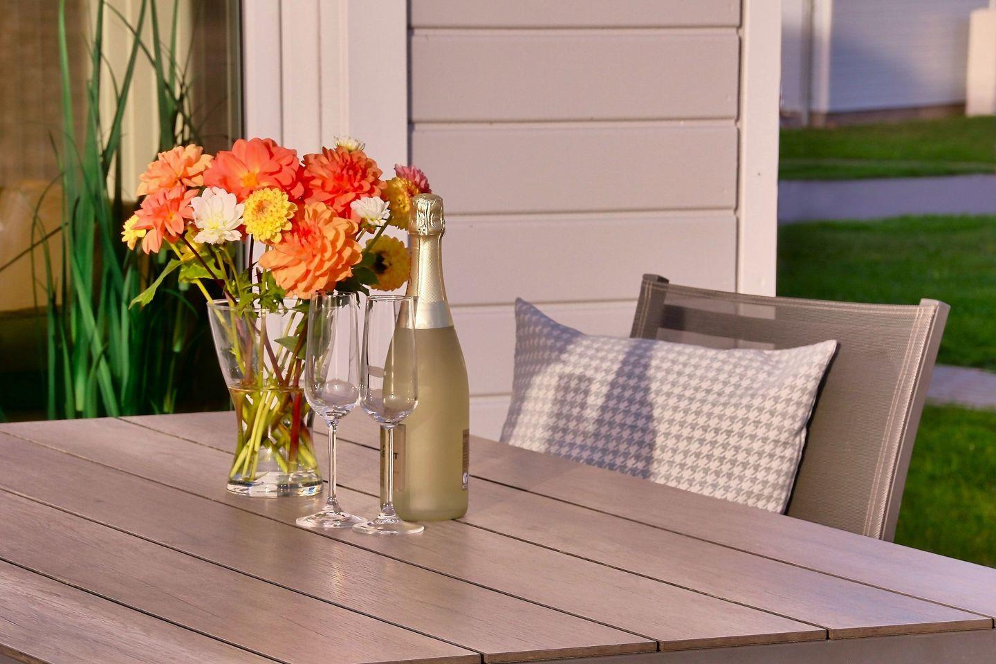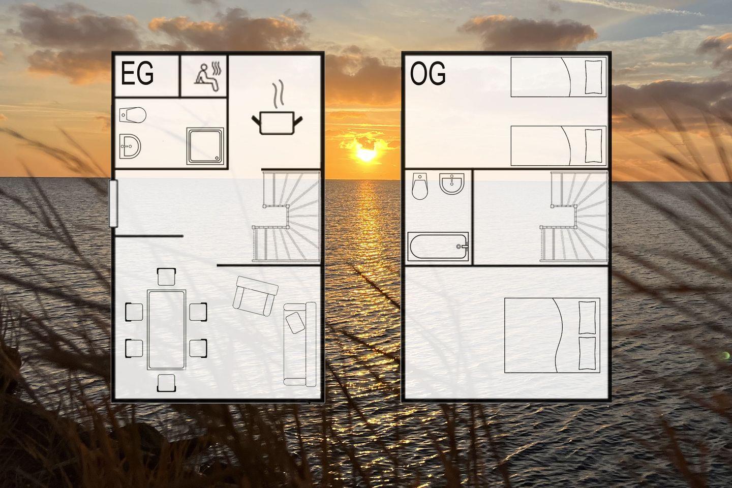 Willkommen im Ferienhaus "Hyggebo" – einem charmanten, freistehenden Refugium in unmittelbarer Nähe zur Ostsee. Auf 82 m² bietet dieses wunderschön gestaltete Ferienhaus auf zwei Etagen den perfekten Ort für Erholung und Entspannung. Das Erdgeschoss empfängt Sie mit einem offenen, lichtdurchfluteten Wohnbereich, der dank bodentiefer Fenster und eines gemütlichen Kamins eine warme und einladende Atmosphäre schafft. Hier können Sie bei jeder Jahreszeit den Blick auf die Natur genießen und entspannte Stunden verbringen. Die moderne, voll ausgestattete Küche lässt keine Wünsche offen – inklusive einer integrierten Waschmaschine, sodass Sie sich auch während Ihres Urlaubs wie zu Hause fühlen können. Das Badezimmer im Erdgeschoss bietet Ihnen zusätzlich eine Infrarot-Sauna und eine Handtuchheizung – ideal, um nach einem aktiven Tag zu entspannen. Die elegante Holztreppe führt ins Obergeschoss, wo sich zwei behagliche Schlafzimmer befinden. Das erste Schlafzimmer ist mit einem komfortablen Doppel-Boxspringbett (180x200 cm), einem Kleiderschrank und einer Kommode ausgestattet. Der Smart-TV sorgt für Unterhaltung, Insektenschutzgitter sowie Verdunkelungsmöglichkeiten garantieren einen erholsamen Schlaf. Das zweite Schlafzimmer bietet zwei Einzel-Boxspringbetten (je 100x200 cm) und ebenfalls einen Kleiderschrank und eine Kommode. Ein weiteres Highlight im Obergeschoss ist das Badezimmer mit Badewanne und einem Dachfenster, durch das Sie den Sternenhimmel bewundern können. Für die kleinen Gäste stehen ein Babybett und ein Kinderhochstuhl bereit. Im Außenbereich erwartet Sie eine nach Osten ausgerichtete Terrasse mit komfortablen Outdoormöbeln, Sonnenliegen und einem Sonnenschirm – der ideale Platz für ein Frühstück in der Morgensonne oder einen entspannten Nachmittag. Ein Grill lädt zu geselligen BBQ-Abenden ein, und das bereitgestellte Sandspielzeug sorgt für Unterhaltung für die jüngeren Urlauber. In den Sommermonaten steht Ihnen zudem ein Bollerwagen zur Verfügung, der Ihnen bei Ausflügen oder dem Transport von Strandutensilien behilflich ist. Das Ferienhaus bietet zudem praktische Extras wie einen abschließbaren Schuppen für Fahrräder und zwei Parkplätze direkt vor dem Haus. Die Lage des Hauses ist perfekt für Spaziergänge an der Ostsee oder Radtouren entlang der Küste. Genießen Sie die Ruhe und Natur der Umgebung, während Sie sich in "Hyggebo" wie zu Hause fühlen.