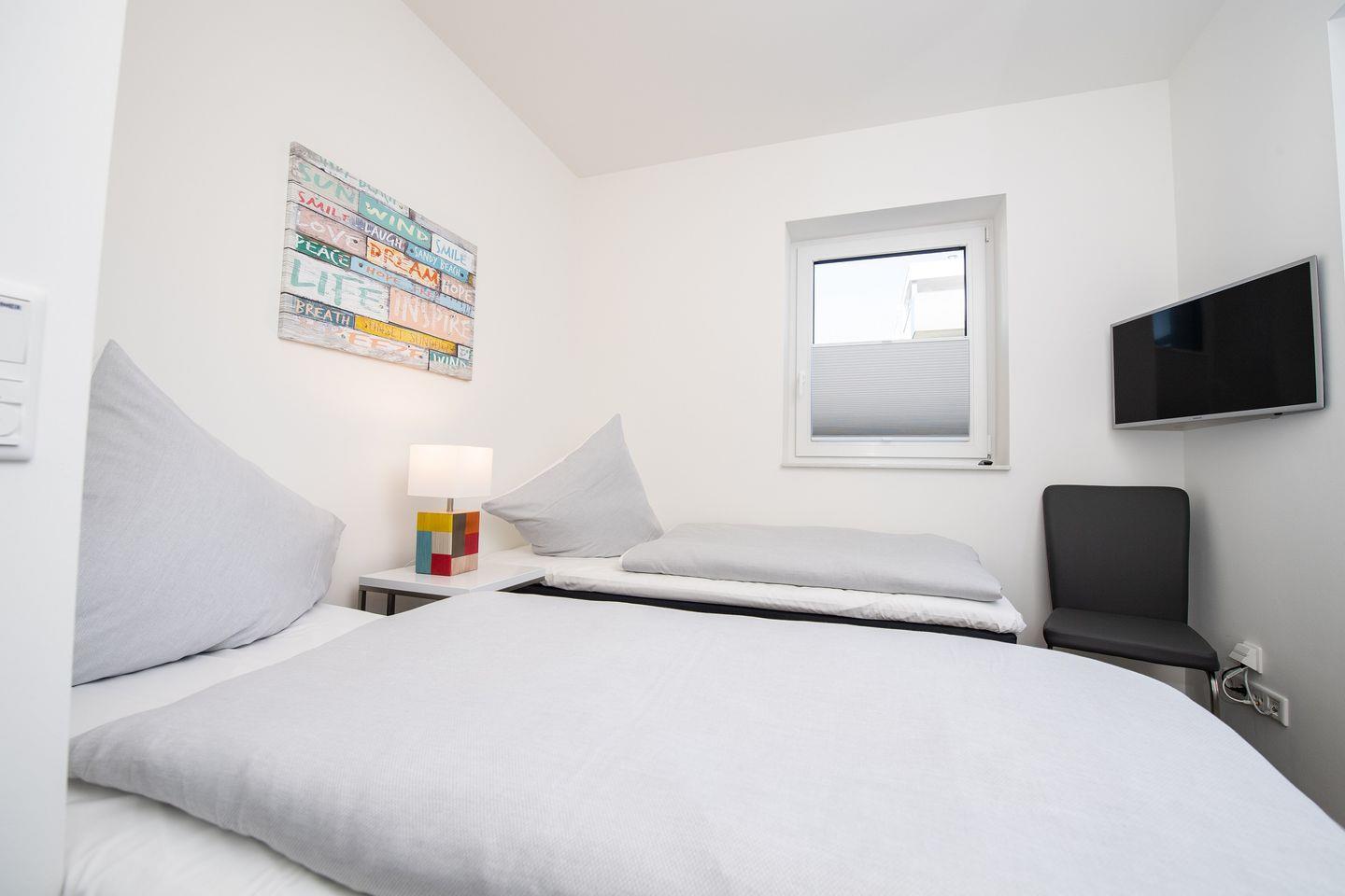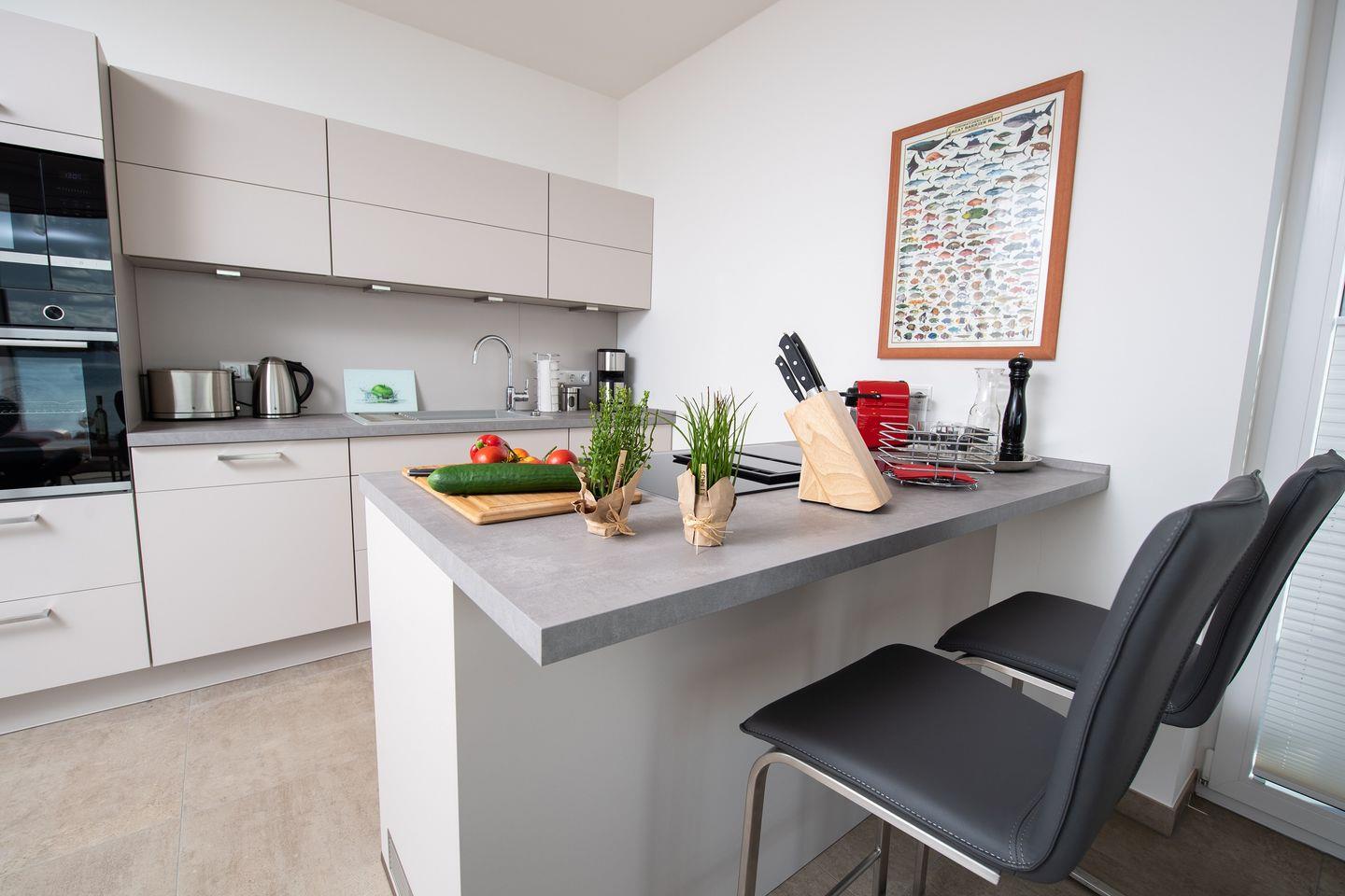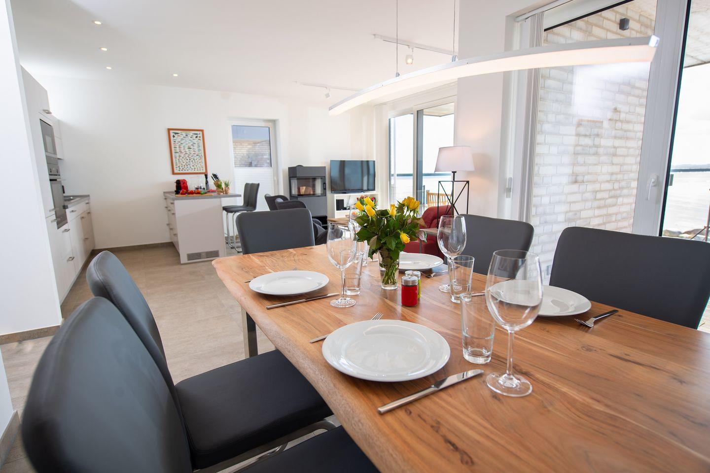 Entdecken Sie die Ferienwohnung "Dock 76 Main" für eine unvergessliche Auszeit. Diese gemütliche und moderne Ferienwohnung erstreckt sich über 86m² und bietet Platz für bis zu vier Gäste. Mit zwei geschmackvoll eingerichteten Schlafzimmern, die sowohl für Paare als auch für Familien ideal sind, können Sie entspannt die Zeit miteinander genießen. Die Wohnung befindet sich im Parterre und besticht durch ihren offenen Wohnbereich, der mit einer voll ausgestatteten Küche, einem komfortablen Essbereich und einem einladenden Wohnzimmer ausgestattet ist. Hier können Sie nach einem erlebnisreichen Tag am Strand bei einem gemeinsamen Abendessen oder einem Filmabend auf einem der drei Flachbild-TVs entspannen. Für gesellige Abende steht Ihnen ein Kaminofen zur Verfügung, der für eine gemütliche Atmosphäre sorgt. Ein Highlight der Ferienwohnung ist die großzügige, überdachte Terrasse, auf der Sie beim Frühstück im Freien den Blick auf die Ostsee genießen können. Die Terrasse ist mit Gartenmöbeln und Sonnenliegen ausgestattet, ideal für entspannte Stunden im Freien. Der direkt angrenzende Garten lädt zum Verweilen, Spielen oder Grillen ein – ein Elektrogrill steht Ihnen zur Verfügung, um unter freiem Himmel kulinarische Köstlichkeiten zuzubereiten. Nur 50 Meter entfernt liegt der schimmernde Sandstrand, der zum Schwimmen und Sonnenbaden einlädt. Die unmittelbare Nähe zum Wasser eignet sich hervorragend für romantische Spaziergänge am Strand. Die Ferienwohnung "Dock 76 Main" ist kinderfreundlich ausgestattet mit einem Hochstuhl sowie einem Babybett, sodass sich auch die kleinen Gäste wohlfühlen werden. Damit es Ihnen während Ihres Aufenthalts an nichts fehlt, stehen eine Waschmaschine, sowie eine voll ausgestattete Küche mit modernen Geräten, inklusive einer Spülmaschine und einer Nespresso-Maschine für Sie bereit. Ein Parkplatz mit einer E-Ladestation befindet sich vor der Unterkunft.
