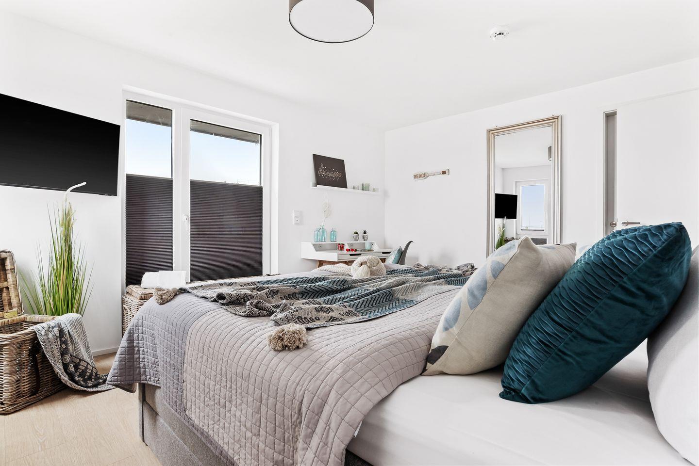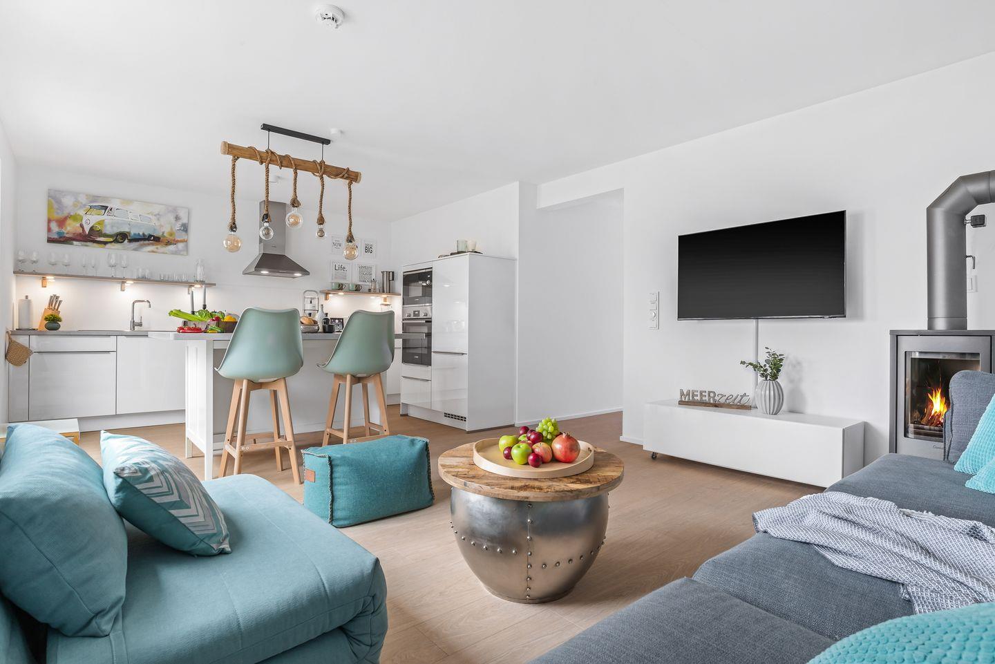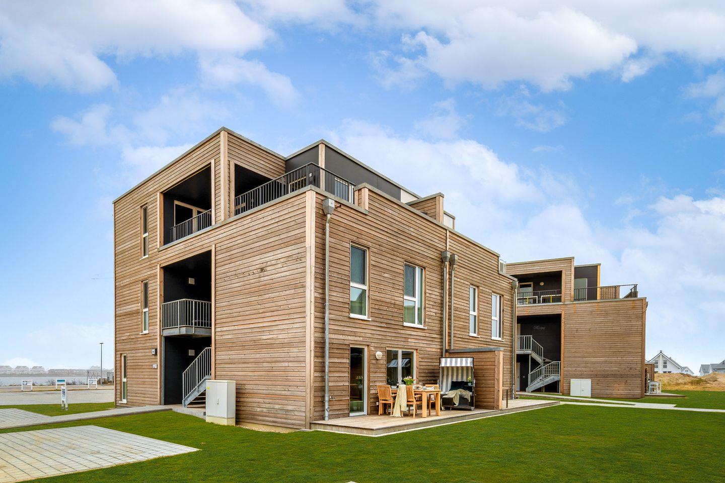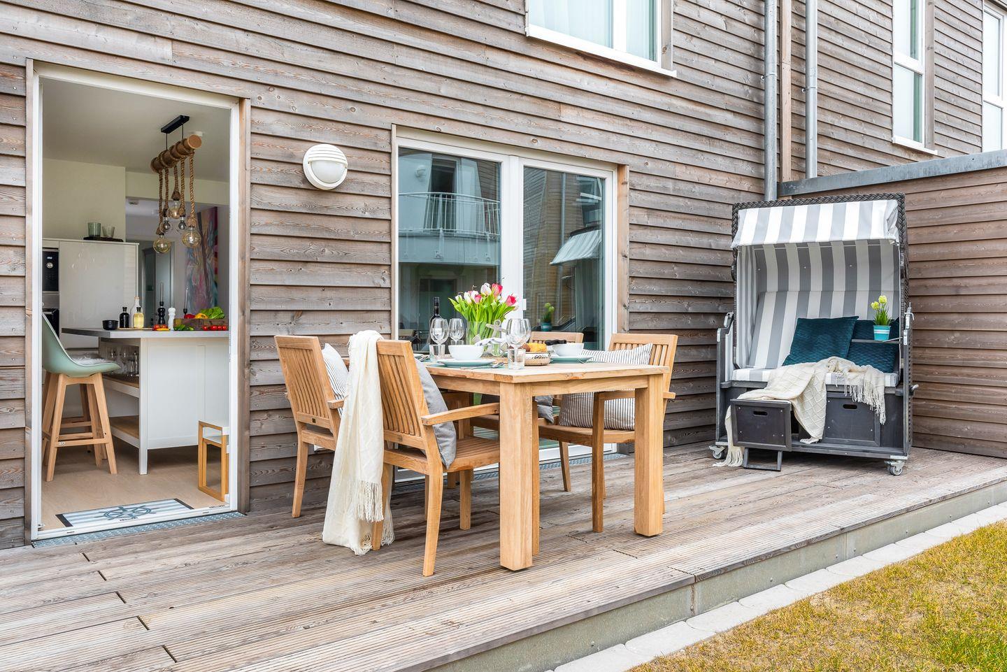 Willkommen in der HafenloungeOlpenitz, einem modernen Apartment, das Ihnen auf 72 m² ein einzigartiges Wohlfühlambiente bietet. Der offene Wohn-Essbereich mit bodentiefen Fenstern sorgt für eine lichtdurchflutete Atmosphäre und einen hervorragenden Blick nach draußen. Die außerordentlich gut eingerichtete Küchenzeile lässt keine Wünsche offen und ist ideal für die Zubereitung Ihrer Lieblingsgerichte. Von Espressomaschine über Raclette finden Sie alles, um Ihren Aufenthalt kulinarisch abwechslungsreich zu gestalten. Das gemütliche Wohnzimmer lädt mit einem Kamin, einem Flachbild-TV und einem bequemen Schlafsofa (160x200 cm) zum Entspannen ein. Hier finden Sie außerdem Spiele, um Ihre Abende in geselligen Spielerunde zu verbringen. Die große Hauptterrasse ist ein wahres Highlight: Ausgestattet mit einem Weber-Elektrogrill, einem gemütlichen Strandkorb und komfortablen Terrassenmöbeln, lädt sie zu entspannten Stunden im Freien ein. Im Schlafzimmer erwartet Sie ein großzügiges Boxspringbett (200x200 cm) und Verdunkelungsmöglichkeiten garantieren Ihnen erholsame Nächte. Ein weiterer Flachbild-Fernseher bietet Unterhaltung, zudem bietet hier ein Schreibtisch die Möglichkeit, im Urlaub produktiv und kreativ zu werden. In einem separaten Raum am Schlafzimmer ist der Kleiderschrank untergebracht, auch Ihre Koffer finden hier ausreichend Platz. Vom Schlafzimmer aus gelangen Sie auf eine zweite, kleine Terrasse, die mit einer gemütlichen Holzbank ausgestattet ist und einen malerischen Blick auf die Hafenmole bietet – der perfekte Ort, um den Tag bei einem kühlen Getränk ausklingen zu lassen. Das moderne Badezimmer verfügt über eine großzügige, ebenerdige Dusche und eine Infrarot-Sauna, die nach einem erlebnisreichen Tag für wohltuende Entspannung sorgt. Für zusätzlichen Komfort sorgt eine Waschmaschine im Apartment. Für die kleinen Gäste stehen ein Kinderreisebett, ein Hochstuhl und ein Kindertritthocker bereit. Fellnasen sind willkommen. Die HafenloungeOlpenitz ist der perfekte Rückzugsort, um sich zu entspannen, die Seele baumeln zu lassen und gleichzeitig in bester Lage den Charme des Hafens zu genießen. Einen Parkplatz finden Sie vor Ihrem Apartment.