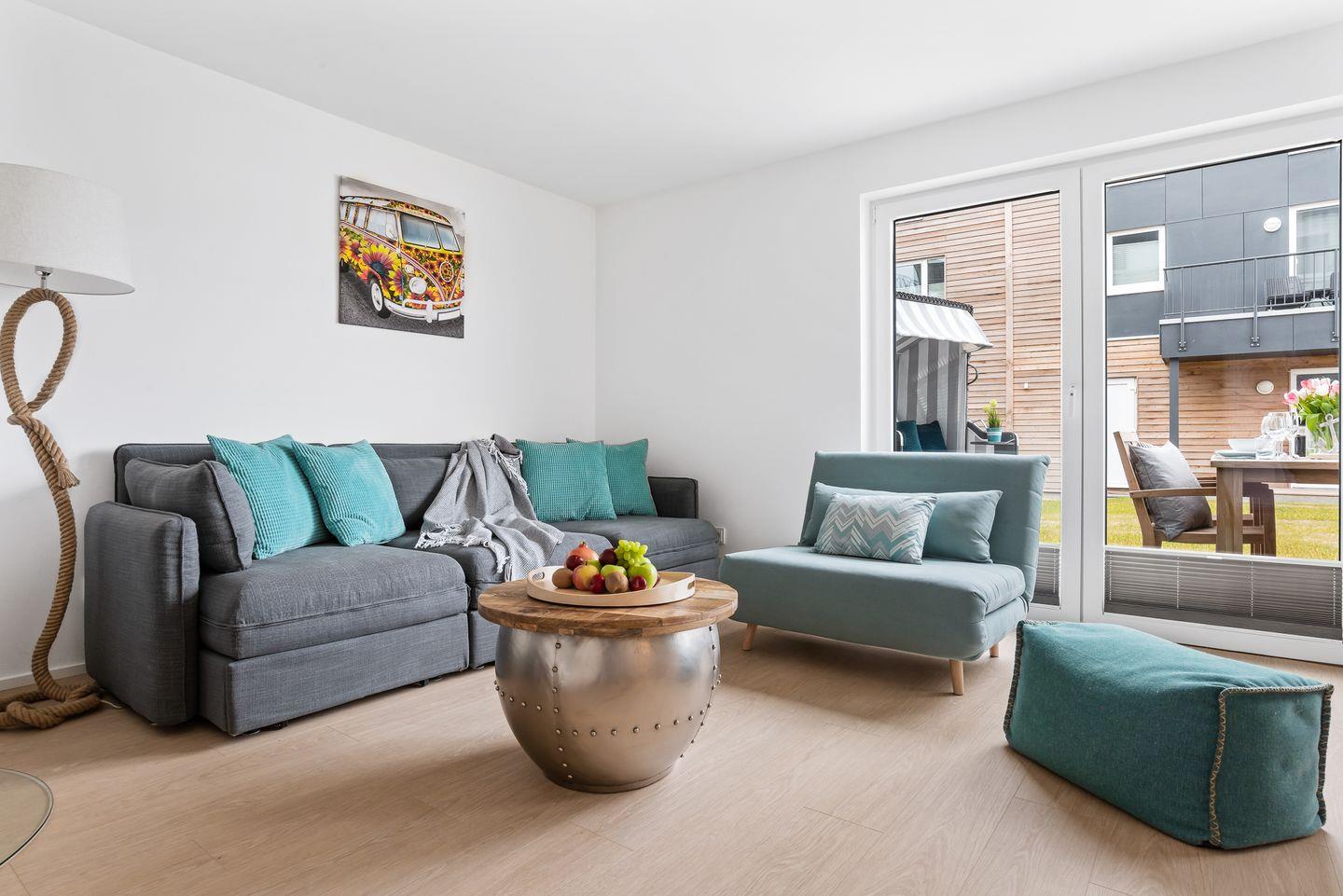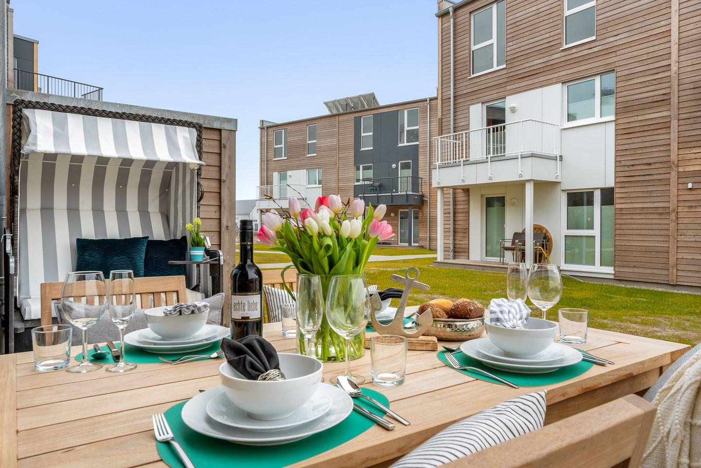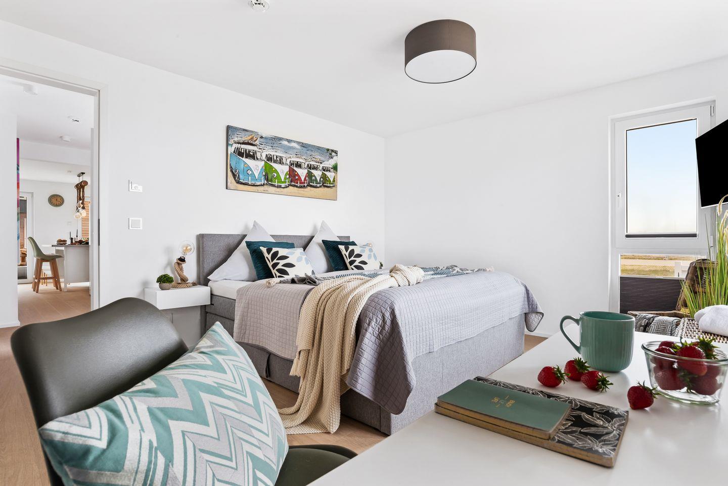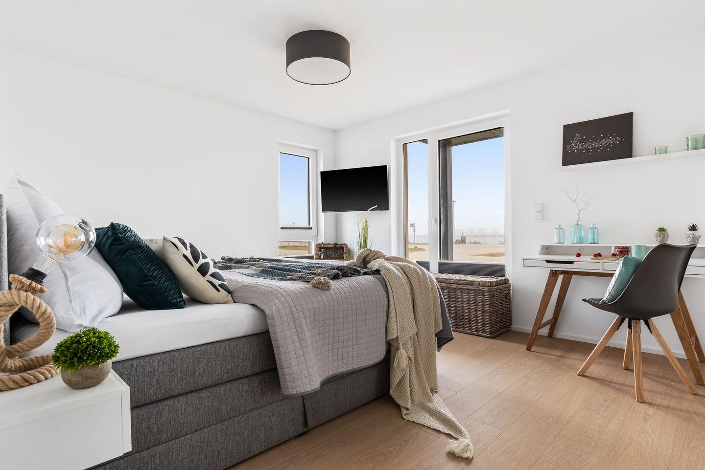 Willkommen in der HafenloungeOlpenitz, einem modernen Apartment, das Ihnen auf 72 m² ein einzigartiges Wohlfühlambiente bietet. Der offene Wohn-Essbereich mit bodentiefen Fenstern sorgt für eine lichtdurchflutete Atmosphäre und einen hervorragenden Blick nach draußen. Die außerordentlich gut eingerichtete Küchenzeile lässt keine Wünsche offen und ist ideal für die Zubereitung Ihrer Lieblingsgerichte. Von Espressomaschine über Raclette finden Sie alles, um Ihren Aufenthalt kulinarisch abwechslungsreich zu gestalten. Das gemütliche Wohnzimmer lädt mit einem Kamin, einem Flachbild-TV und einem bequemen Schlafsofa (160x200 cm) zum Entspannen ein. Hier finden Sie außerdem Spiele, um Ihre Abende in geselligen Spielerunde zu verbringen. Die große Hauptterrasse ist ein wahres Highlight: Ausgestattet mit einem Weber-Elektrogrill, einem gemütlichen Strandkorb und komfortablen Terrassenmöbeln, lädt sie zu entspannten Stunden im Freien ein. Im Schlafzimmer erwartet Sie ein großzügiges Boxspringbett (200x200 cm) und Verdunkelungsmöglichkeiten garantieren Ihnen erholsame Nächte. Ein weiterer Flachbild-Fernseher bietet Unterhaltung, zudem bietet hier ein Schreibtisch die Möglichkeit, im Urlaub produktiv und kreativ zu werden. In einem separaten Raum am Schlafzimmer ist der Kleiderschrank untergebracht, auch Ihre Koffer finden hier ausreichend Platz. Vom Schlafzimmer aus gelangen Sie auf eine zweite, kleine Terrasse, die mit einer gemütlichen Holzbank ausgestattet ist und einen malerischen Blick auf die Hafenmole bietet – der perfekte Ort, um den Tag bei einem kühlen Getränk ausklingen zu lassen. Das moderne Badezimmer verfügt über eine großzügige, ebenerdige Dusche und eine Infrarot-Sauna, die nach einem erlebnisreichen Tag für wohltuende Entspannung sorgt. Für zusätzlichen Komfort sorgt eine Waschmaschine im Apartment. Für die kleinen Gäste stehen ein Kinderreisebett, ein Hochstuhl und ein Kindertritthocker bereit. Fellnasen sind willkommen. Die HafenloungeOlpenitz ist der perfekte Rückzugsort, um sich zu entspannen, die Seele baumeln zu lassen und gleichzeitig in bester Lage den Charme des Hafens zu genießen. Einen Parkplatz finden Sie vor Ihrem Apartment.