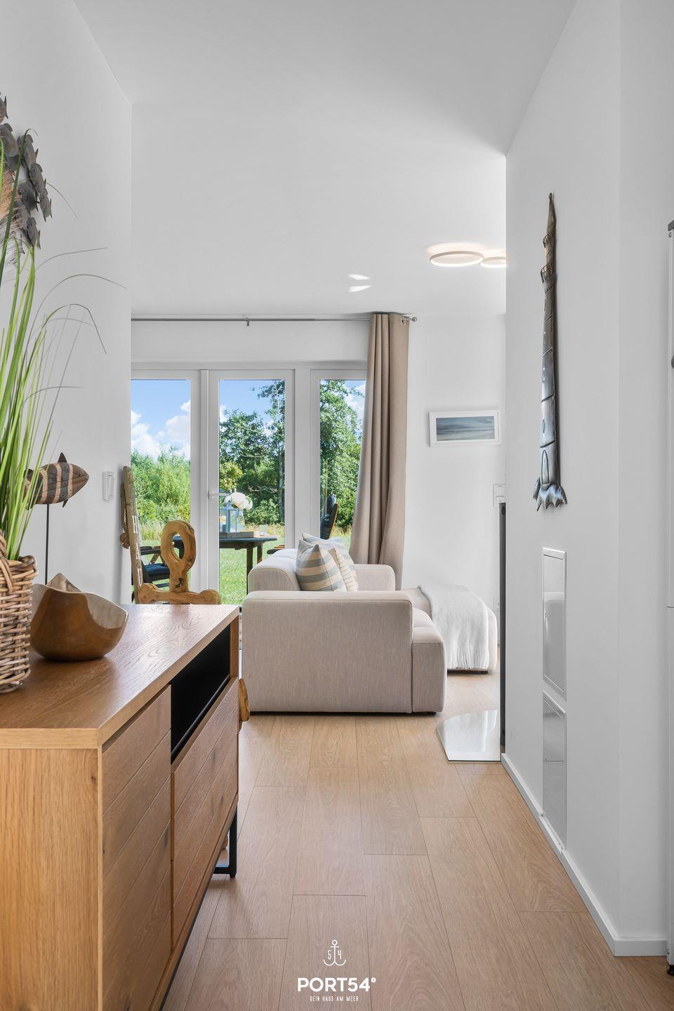 Willkommen in der Ferienwohnung Ankermann II in Olpenitz – einem traumhaften Rückzugsort für Ihren nächsten Urlaub an der Ostsee! Diese gemütliche und modern eingerichtete Ferienwohnung bietet Platz für bis zu vier Personen und ist ideal für Familien oder Paare, die eine erholsame Auszeit in unmittelbarer Nähe zur Natur suchen. Die Ferienwohnung erstreckt sich über 81m² und befindet sich im Erdgeschoss. Die Wohnung besteht aus zwei liebevoll eingerichteten Schlafzimmern, in denen erholsame Nächte garantiert sind. Das eine Schlafzimmer ist mit einem Doppelbett (180x200cm) ausgestattet, während das andere Schlafzimmer zwei Einzelbetten (90x200cm) bietet. Beide Schlafzimmer verfügen über je einen Kleiderschrank und einen Flachbild-Fernseher. Das Duschbad trägt Entspannung nach einem erlebnisreichen Tag bei. Hier steht Ihnen eine eigene Infrarot-Wärmekabine zur Verfügung, die Ihnen Momente purer Entspannung und Wellness bietet. Zusätzlich ist das Bad mit einen Handtuchheizkörper und einem Föhn ausgestattet. Die offene Küche ist mit allen modernen Annehmlichkeiten ausgestattet, die Sie benötigen, um sich wie zu Hause zu fühlen. Sie finden hier einen Soda Max, einen Entsafter, einen Tefal-Grill und viele weitere zahlreiche Küchenutensilien, um köstliche Mahlzeiten zu zaubern. Im angrenzenden Wohnzimmer können Sie nach einem langen Strandtag wunderbar entspannen. Hier gibt es ein einladendes Sofa und an den kühleren Tagen sorgt ein Kaminofen für wohlige Wärme. Für die Kleinsten stehen ein Babybett und ein Hochstuhl zur Verfügung. Ein Highlight der Wohnung ist die Terrasse, auf der Sie im Freien entspannen, die frische Meeresluft genießen und die Seele baumeln lassen können. Die gemütlichen Gartenmöbeln und ein Grill lädt zu geselligen Abenden im Freien ein. Für Kinder gibt es Schwimmbretter, damit auch kleine Wasserratten den Urlaub in vollen Zügen genießen können. Die Lage der Ferienwohnung ist ideal für Aktivurlauber und Naturliebhaber - einen tollen Blick in die Natur und der Strand ist nicht weit entfernt. Vor der Unterkunft steht ein privater Parkplatz zur Verfügung.