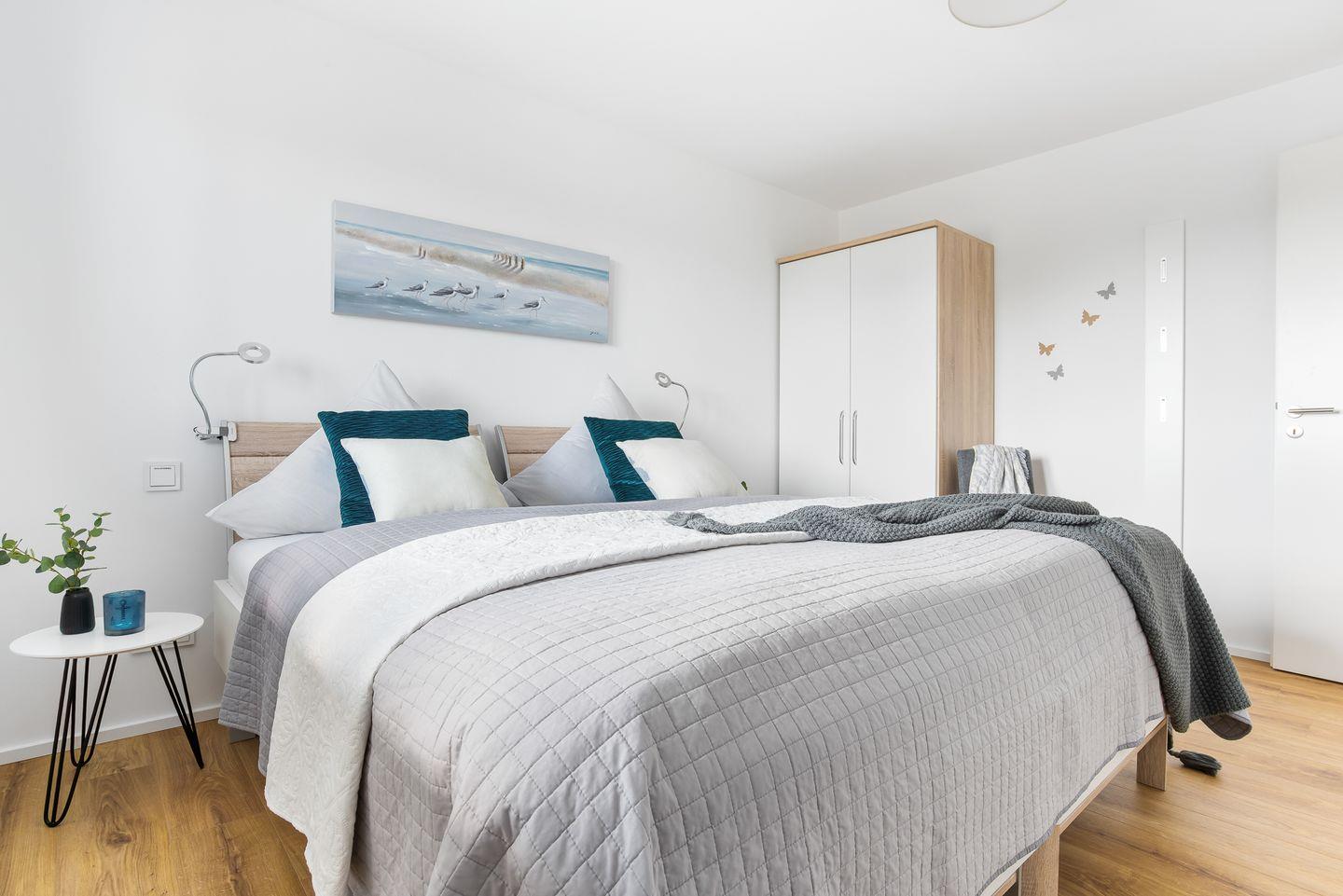 In einem Schlafzimmer befinden sich ein Boxspring-Doppelbett (180x200cm), in dem anderen findest Du zwei gemütliche Einzel-Boxspringbetten, die einfach zu einem Doppelbett zusammengeschoben werden können.
