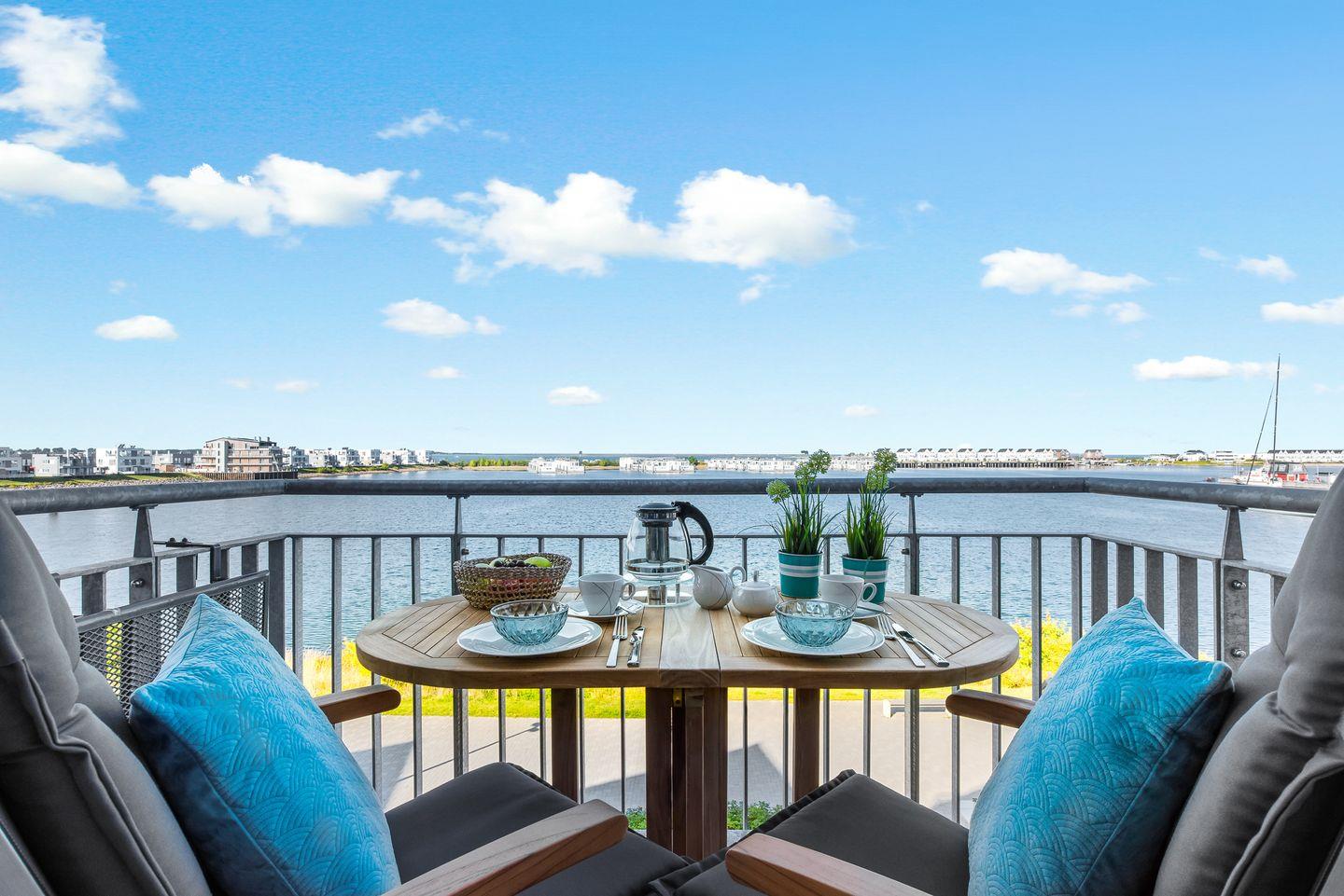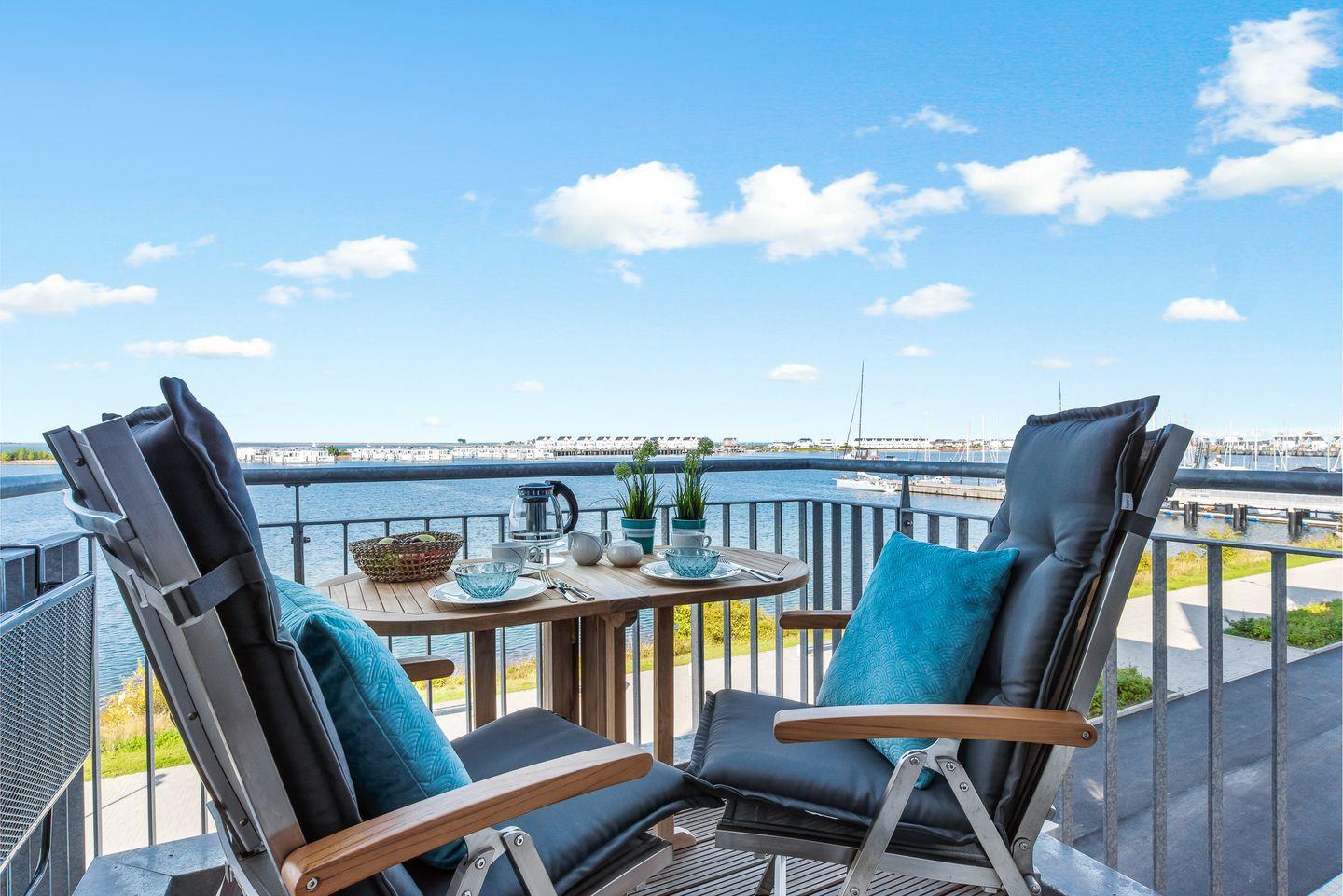 Der Balkon bietet sich hervorragend zum Entspannen und Genießen des Wasserblicks an.