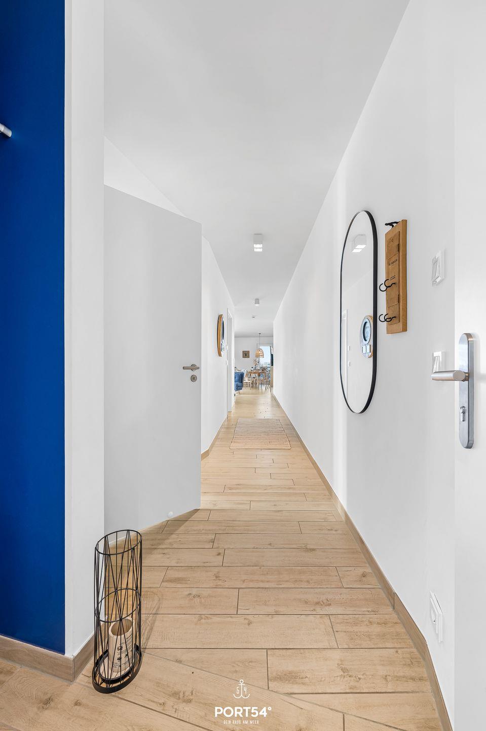 Die Ferienwohnung "Knuts Hafenlounge" in Olpenitz bietet auf 97 m² Platz für bis zu 4 Erwachsen und 2 Kinder und liegt direkt am Hafenbecken vom OstseeResort. Hier gibt es 2 Schlafzimmer, einen offenen Wohn- & Essbereich sowie eine Küche. Ausgestattet mit eigener Infrarotkabine, bodengleicher Dusche, WLAN, einem Kaminofen, einer Waschmaschine und einer überdachter Terrasse eignet sich die moderne Unterkunft ideal für alle, die gemeinsame eine erholsame Zeit an der Ostsee verbringen möchten