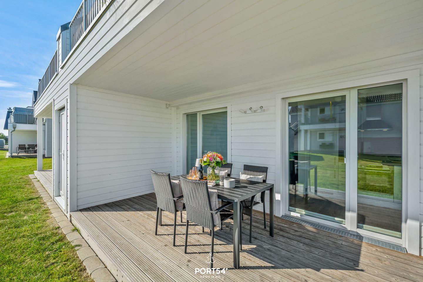 Erholung im Außenbereich bietet Dir die private Terrasse mit Gartenmöbeln und Sonnenliegen. Ein Elektrogrill steht bereit, ebenso wie ein gepflegter Garten mit Liegewiese. Nach einem erlebnisreichen Tag an der Ostsee kannst Du hier entspannen und die frische Meeresluft genießen. Für Deinen PKW stehen Dir ein Privatparkplatz sowie ein abschließbarer Fahrradschuppen direkt an der Unterkunft zur Verfügung. Auch Hunde sind herzlich willkommen.