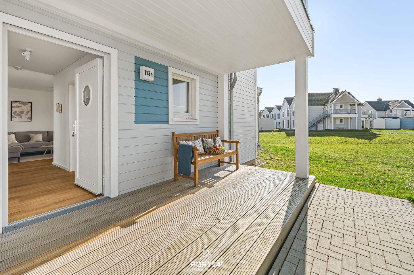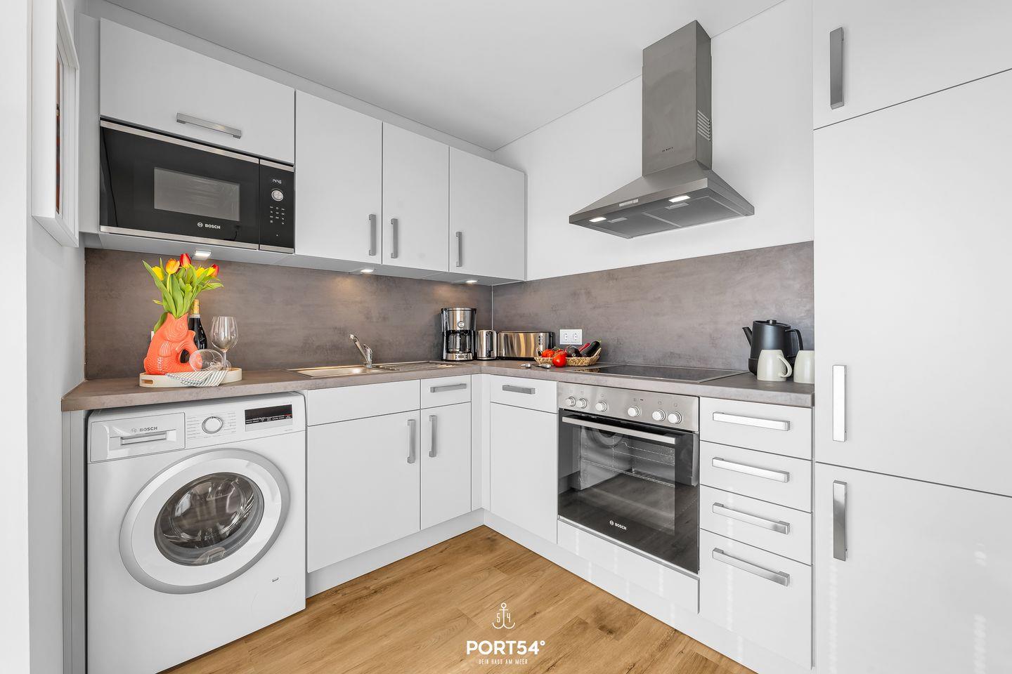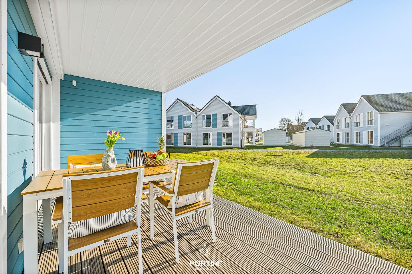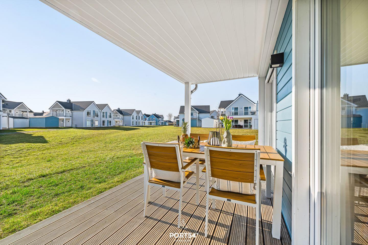 Angrenzend befindet sich eine hochwertige und voll ausgestattete Küche, in der es an nichts fehlt. Kocht hier nach Herzenslust und genießt die Abende mit euren Lieben am Esstisch, auf der Terrasse oder bei einem Grillabend in der frischen Ostseeluft. Die überdachte Südwest-Terrasse bietet hierfür das perfekte Ambiente. Lasst den Urlaubstag bei einem Glas Wein oder einem guten Buch in der Abendsonne ausklingen.
