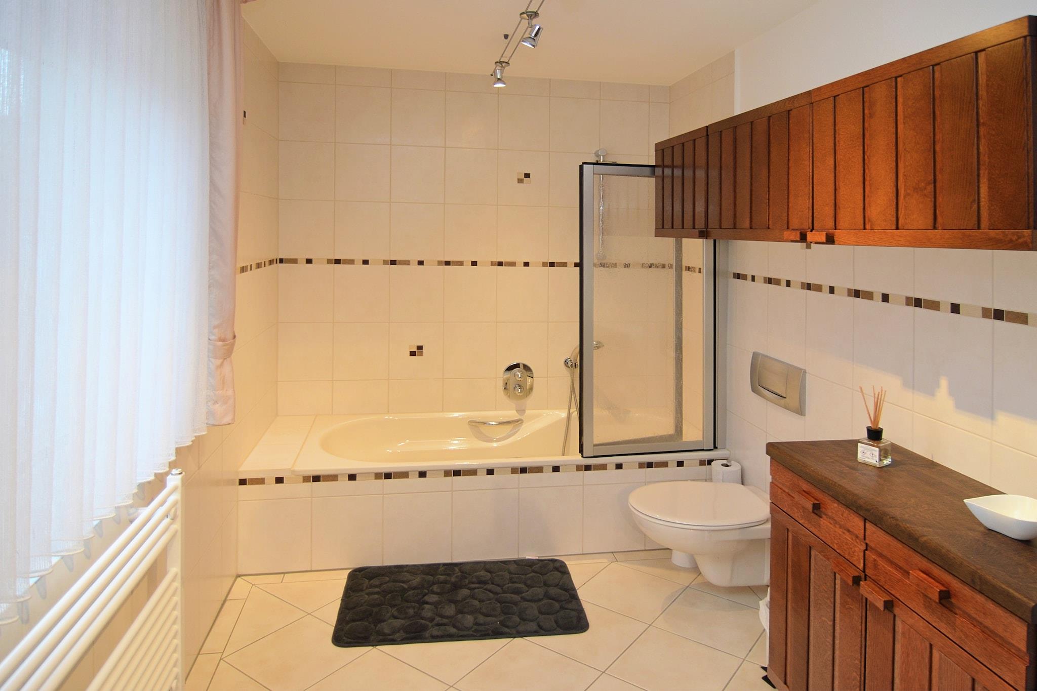 Denne lyse og fuldt møblerede 3-værelses lejlighed spænder over to etager og rummer komfortabelt op til 7 gæster, hvilket gør den ideel til familier og venner. Nyd udendørs på din private terrasse eller i den store have, perfekt til at slappe af efter en dag med eventyr. Lejligheden er centralt beliggende og tilbyder nem adgang til supermarkeder, restauranter, offentlig transport og endda romantisk natteliv - alt inden for gåafstand. Aktive rejsende vil elske den nærliggende tennisbane (3 km), skiliften (4 km) og vandsport og langrendsløjper (5 km). Indenfor finder du et fuldt udstyret køkken, gulvvarme og en hyggelig opholdsstue. Familier bliver passet godt med en børneseng, høj stol og sikker opbevaring til vinterudstyr og cykler. Kæledyr er hjerteligt velkomne, og parkering er tilgængelig. Den nærmeste lufthavn ligger kun 81,6 km væk, hvilket gør ankomsten til en leg.