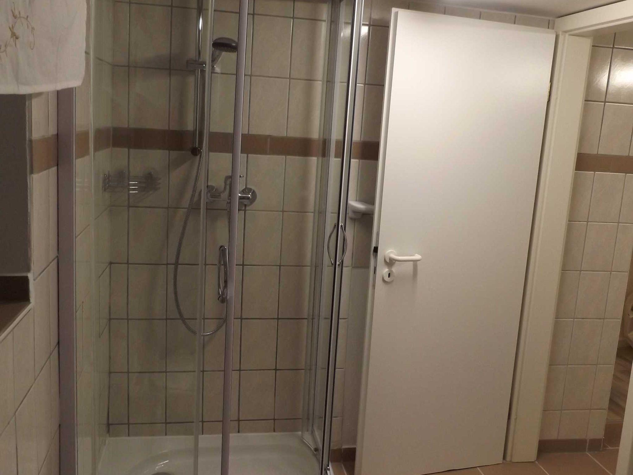 ein Badezimmer, ein Wohnzimmer mit TV-Sat und eine geräumige, gut