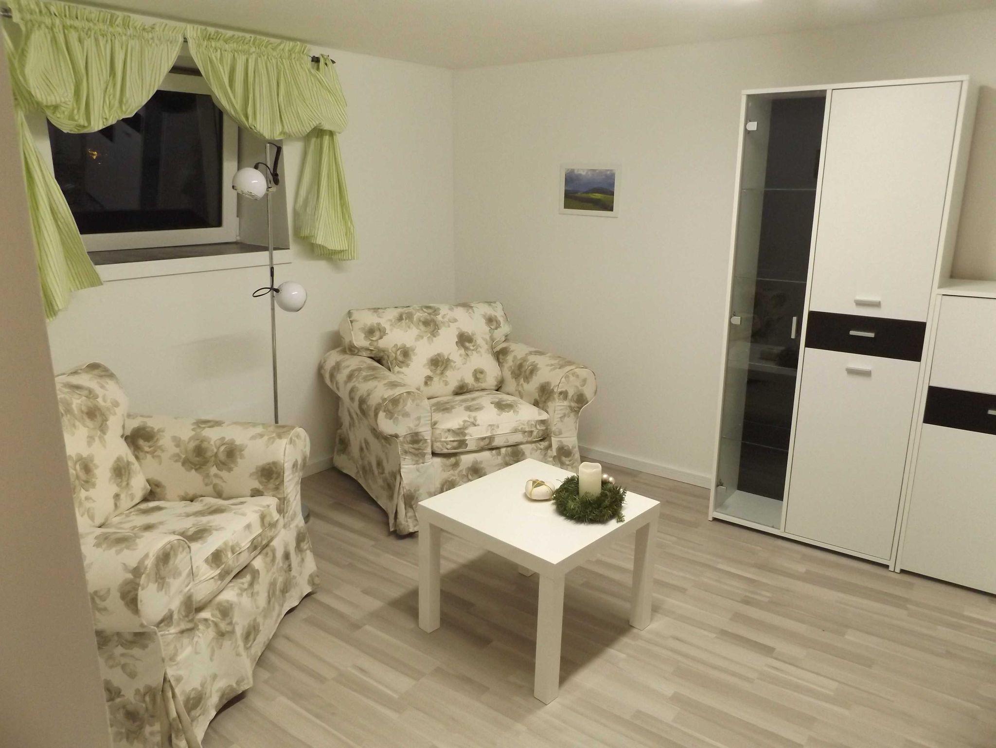 Die Wohnung besteht aus einem Schlafzimmer mit einem bequemen Doppelbett, einer seperaten vollausgestatteten Mini-Küche mit kleinem Backofen, einem Wohnzimmer mit Fernseher (SAT-Anschluss) und Esstisch zum Entspannen und gemütlichen Beisammensein.Sowie einem großem Bad mit Dusche und WC.