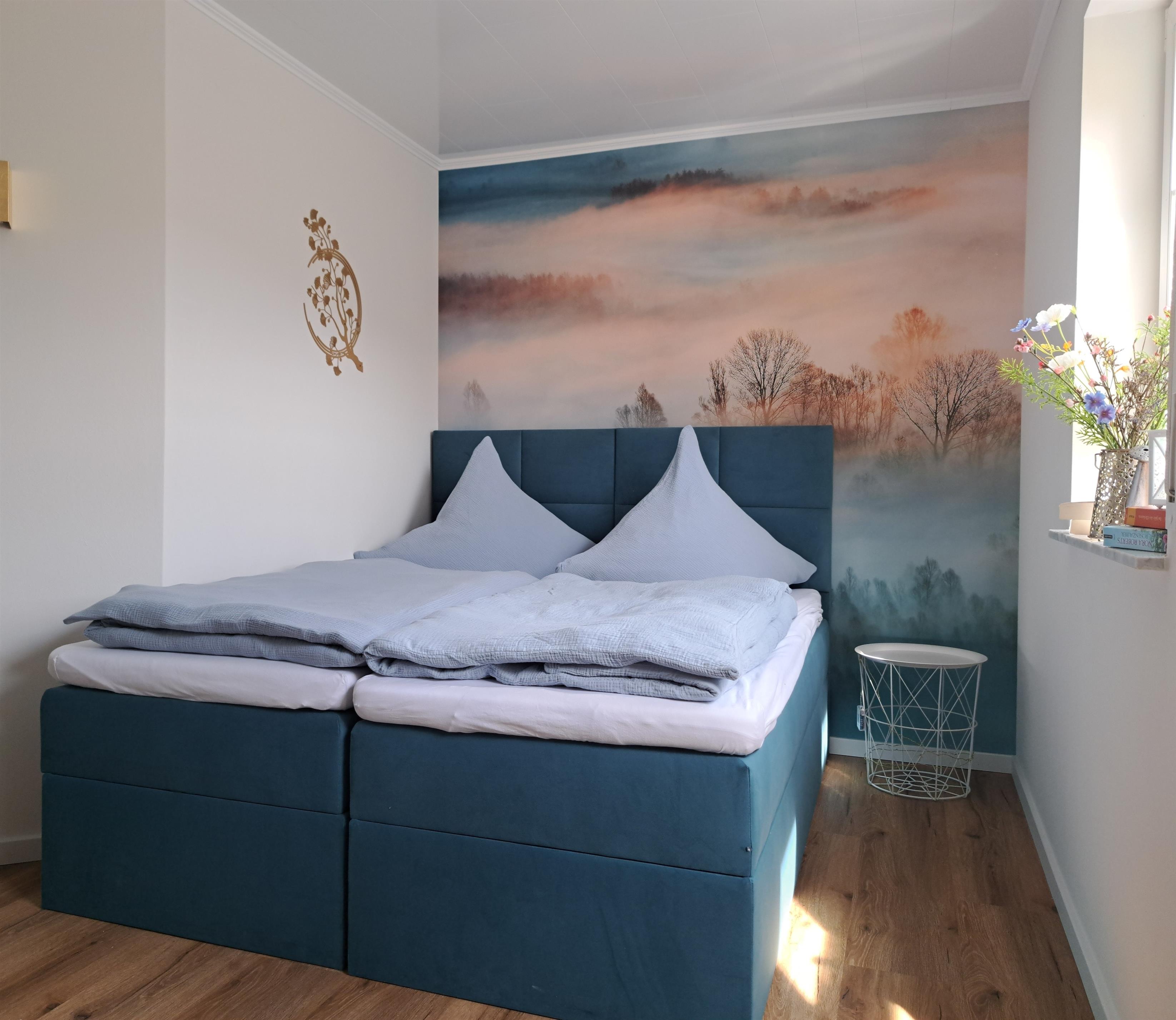 Unsere Kleine Wohlfühloase (ca. 20 qm) ist ein schönes, ruhiges und direkt am Waldrand gelegenes Gästezimmer - perfekt, um dem Alltag zu entfliehen. Die Unterkunft liegt auf einer kleinen Anhöhe und bietet Ihnen einen herrlichen Panoramablick über die umliegende Natur.
