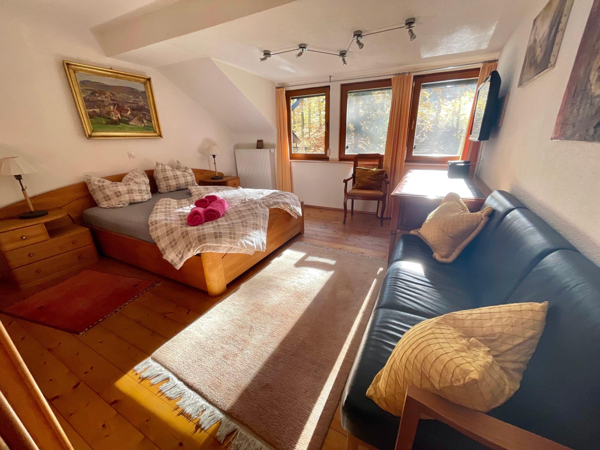 very nice bedroom with view into the forest, double bed ( bed 1,60m x 2,00m )