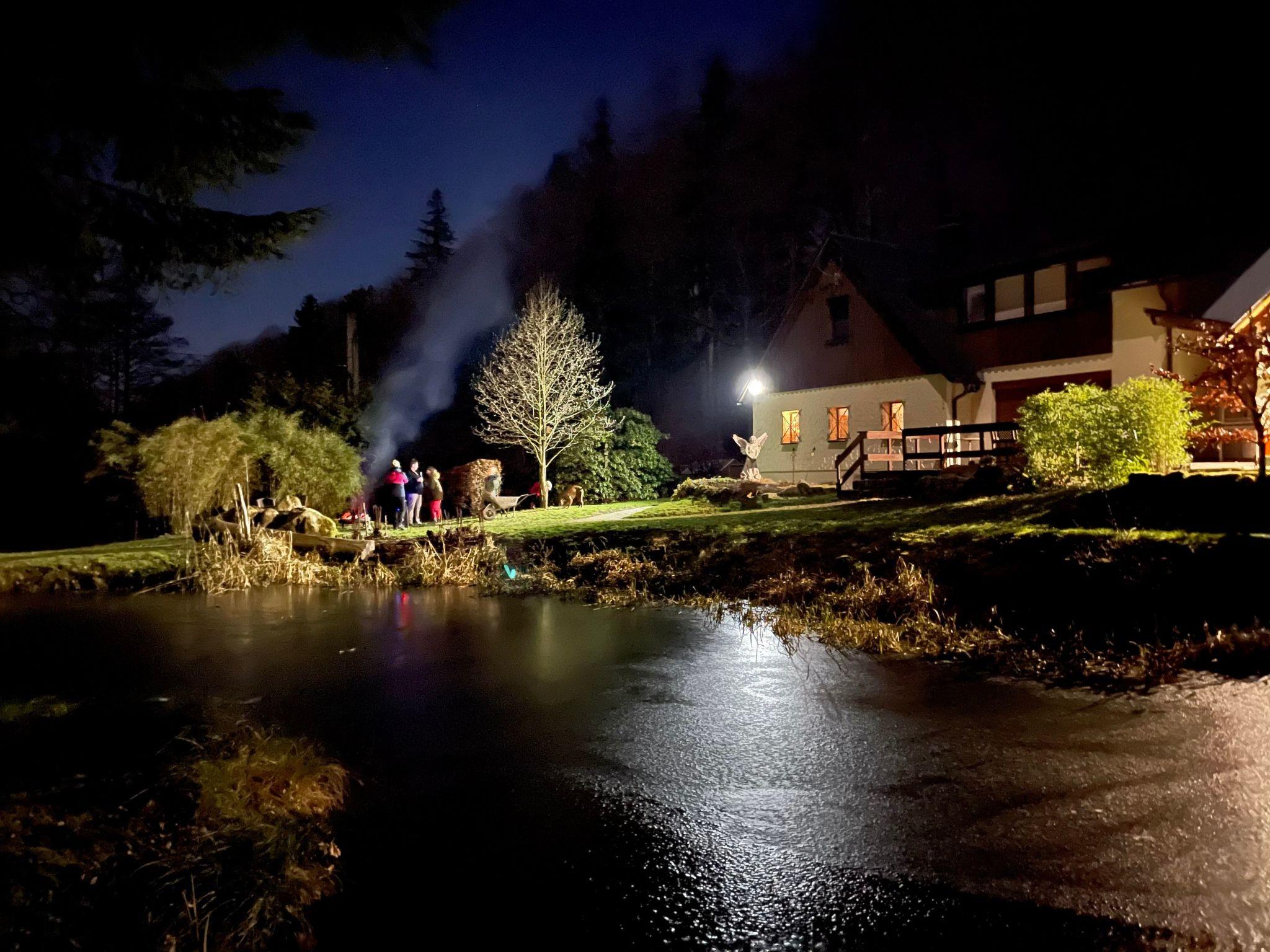 The "Flössel" stream flowing through the property creates a pleasant climate and provides relaxation and energy at the same time. The spring-fed lake invites the brave to take a dip.