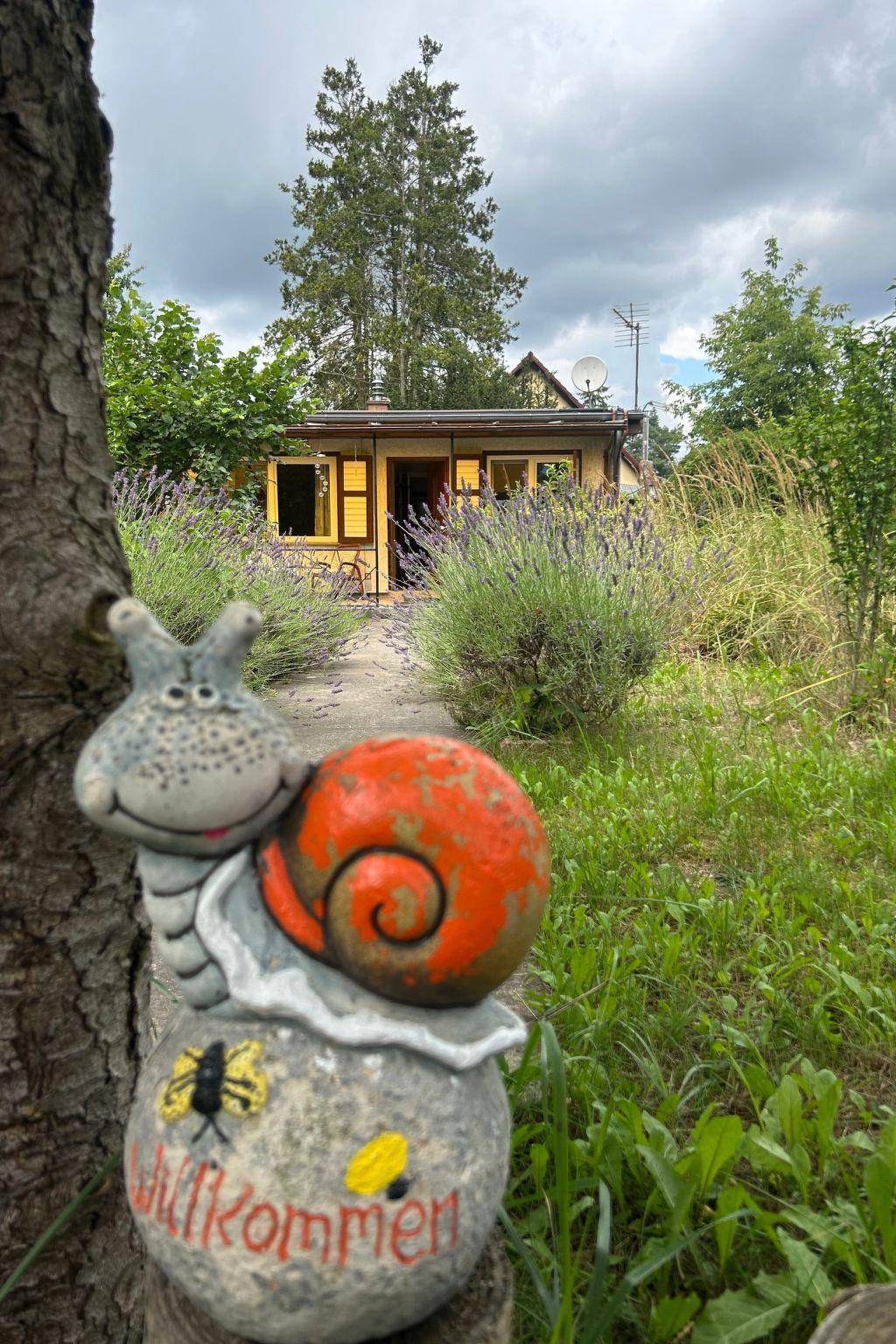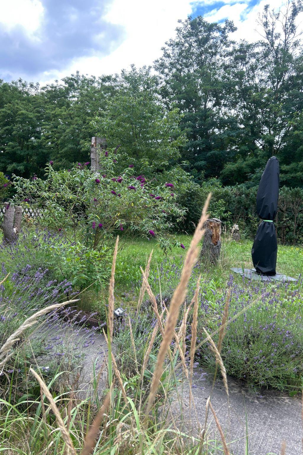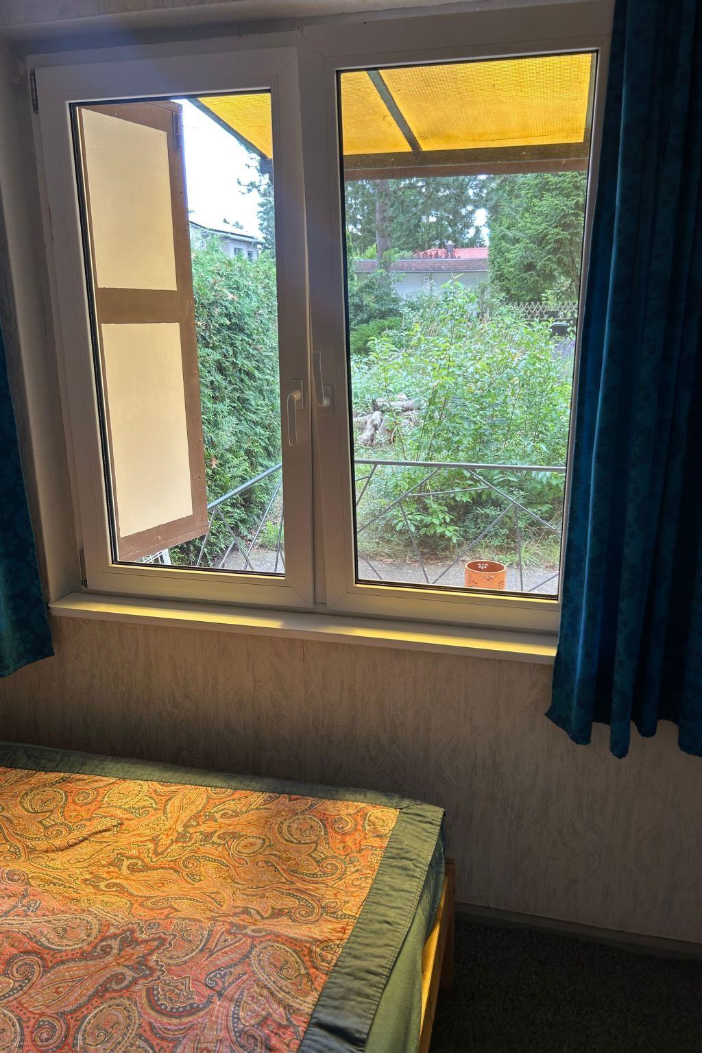 The small bathing beach (public) on the Oranienburg Canal is in front of the garden. The plot is 900 square metres and fenced. The garden had large conifers, which unfortunately fell victim to the bark beetle. It is nevertheless somewhat wooded/natural. A little overgrown and a nice covered terrace. Parking is free of charge. There is the possibility to put up a tent on request so a maximum of 2 people can travel. you can take very nice walks on the canal and along the water.