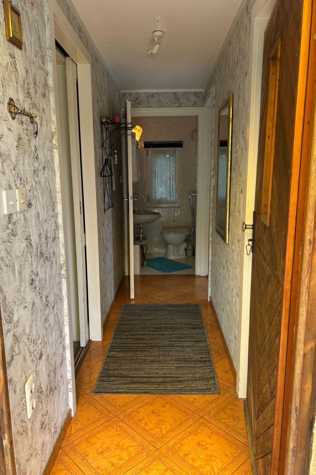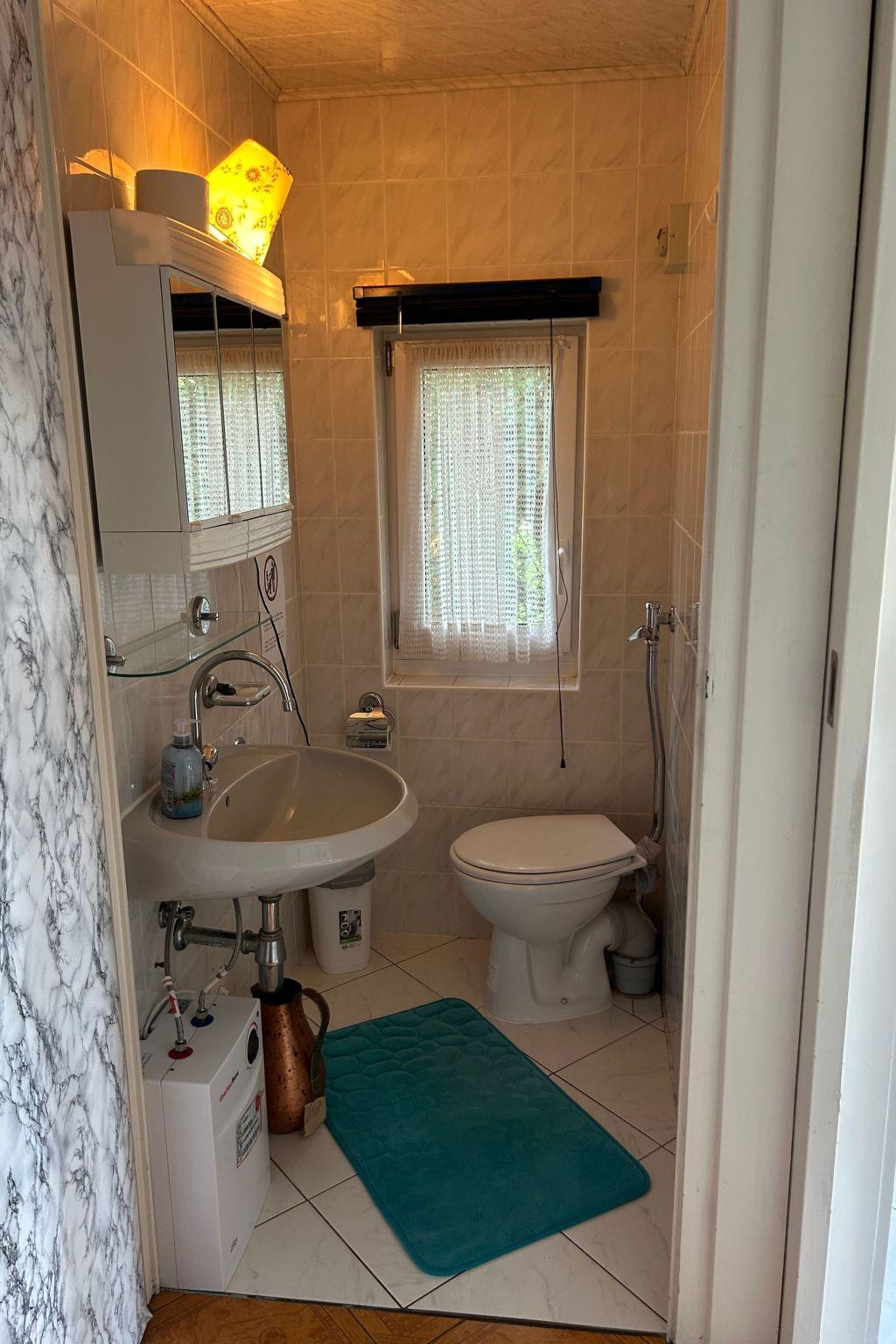WC, kitchen sink are equipped with hot water - 5 litre boiler. There are no shower/bathing facilities in the house. In the summer months, you can use hot water in the small bathhouse with a hot water boiler outside. The hot spring runs on environmentally friendly solar power and can therefore be unplugged.