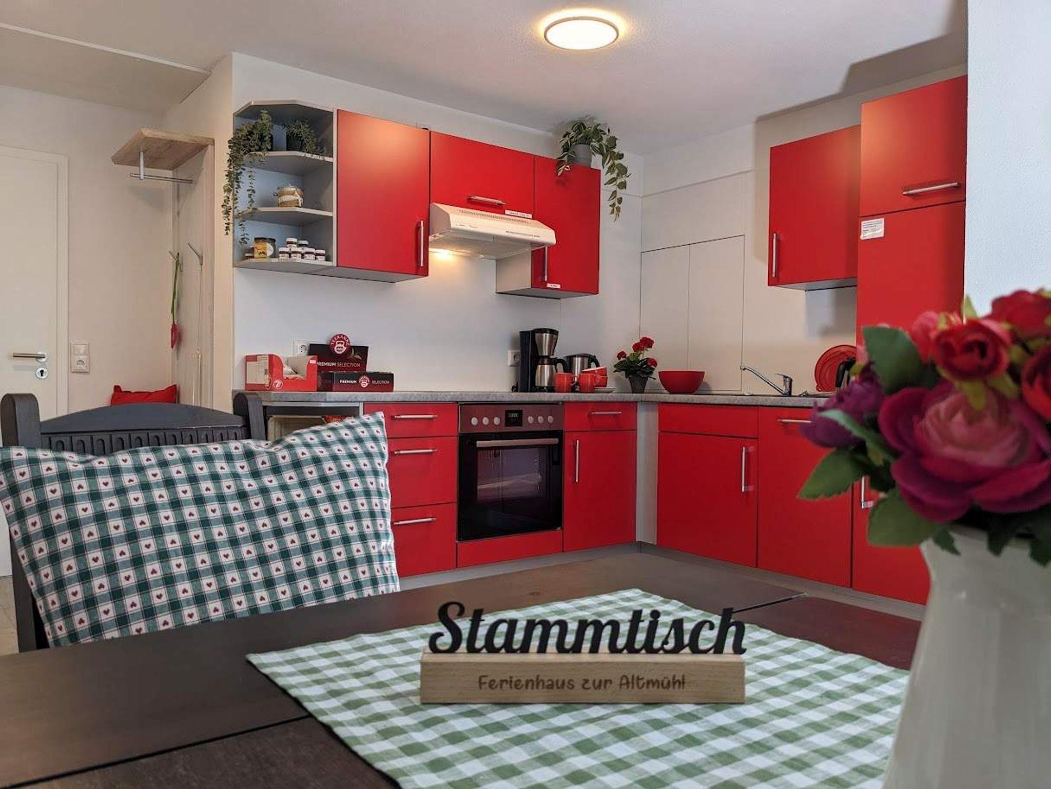 Der Gemeinschaftsraum für die beiden Gartenhäuser ist ebenfalls über die Garage zu erreichen, hier gibt es eine voll ausgestattet Küche mit Essecke.