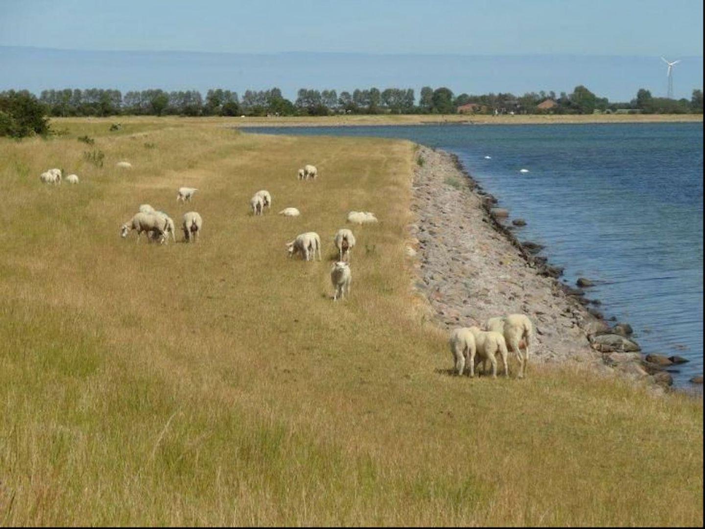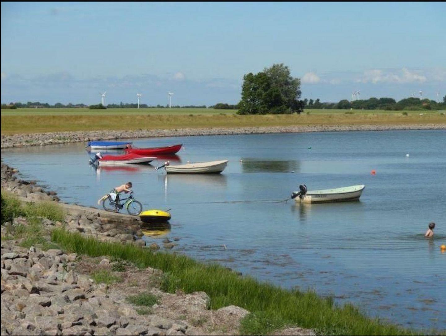 Im Orth direkt in unmittelbarer Nähe der Wohnung befinden sich Restaurants, Cafés, Hafenimbiss, Bierpub, Fahrradverleih und kleine Läden, Surfschule und Surfshops sowie ein Angelkutter. Bade- und Surfmöglichkeiten sind in Orth vorhanden, die Badestrände Flügge und Püttsee sind mit dem Rad oder dem Pkw schnell zu erreichen.