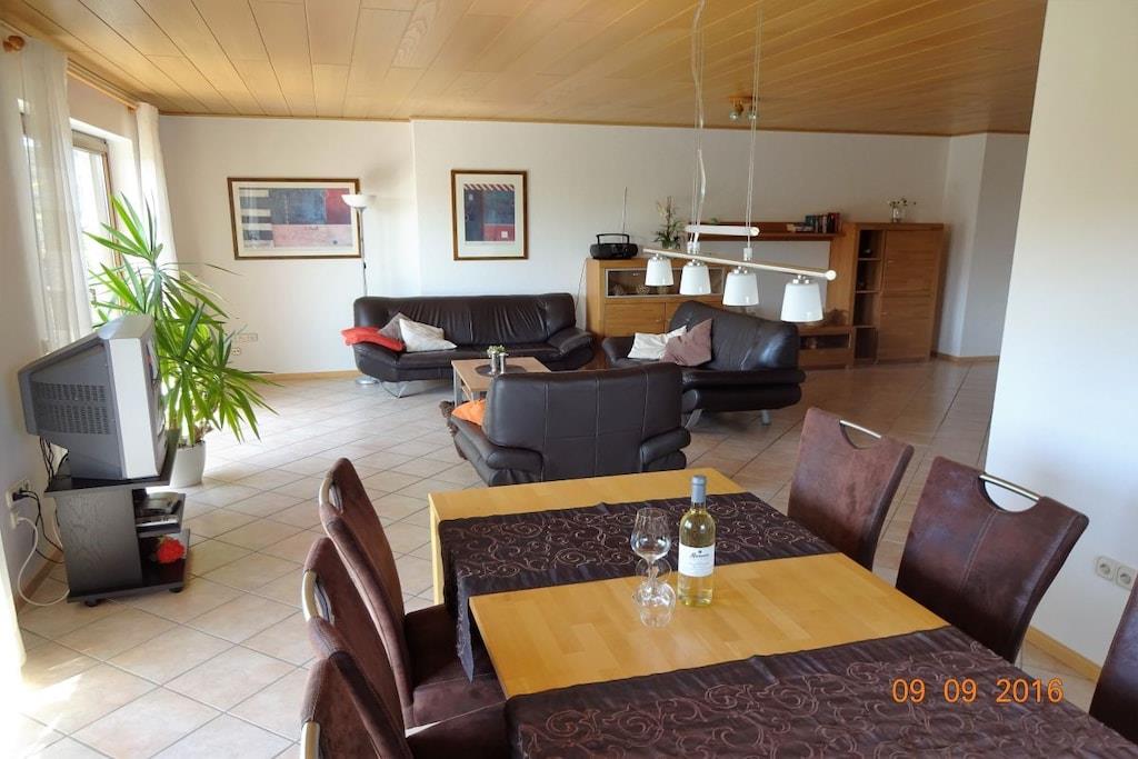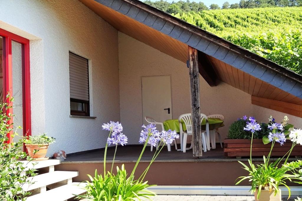 Helle sehr gepflegte Ferienwohnung mit Balkon, 4 Sterne DTV, inmitten der Weinberge. Unsere Ferienwohnung drei bietet viel Platz und großer Balkon. Sie wohnen im separaten Gästehaus auf unserem Ferienweingut in herrlicher Südlage inmitten der Weinberge. Im einladenden, kinderfreundlichen Ambiente werden Sie sich wohl fühlen. Die Betten sind bezogen und genügend Handtücher vorhanden. Besuchen Sie uns und stillen Sie Ihre Urlaubssehnsucht an der Weinquelle.