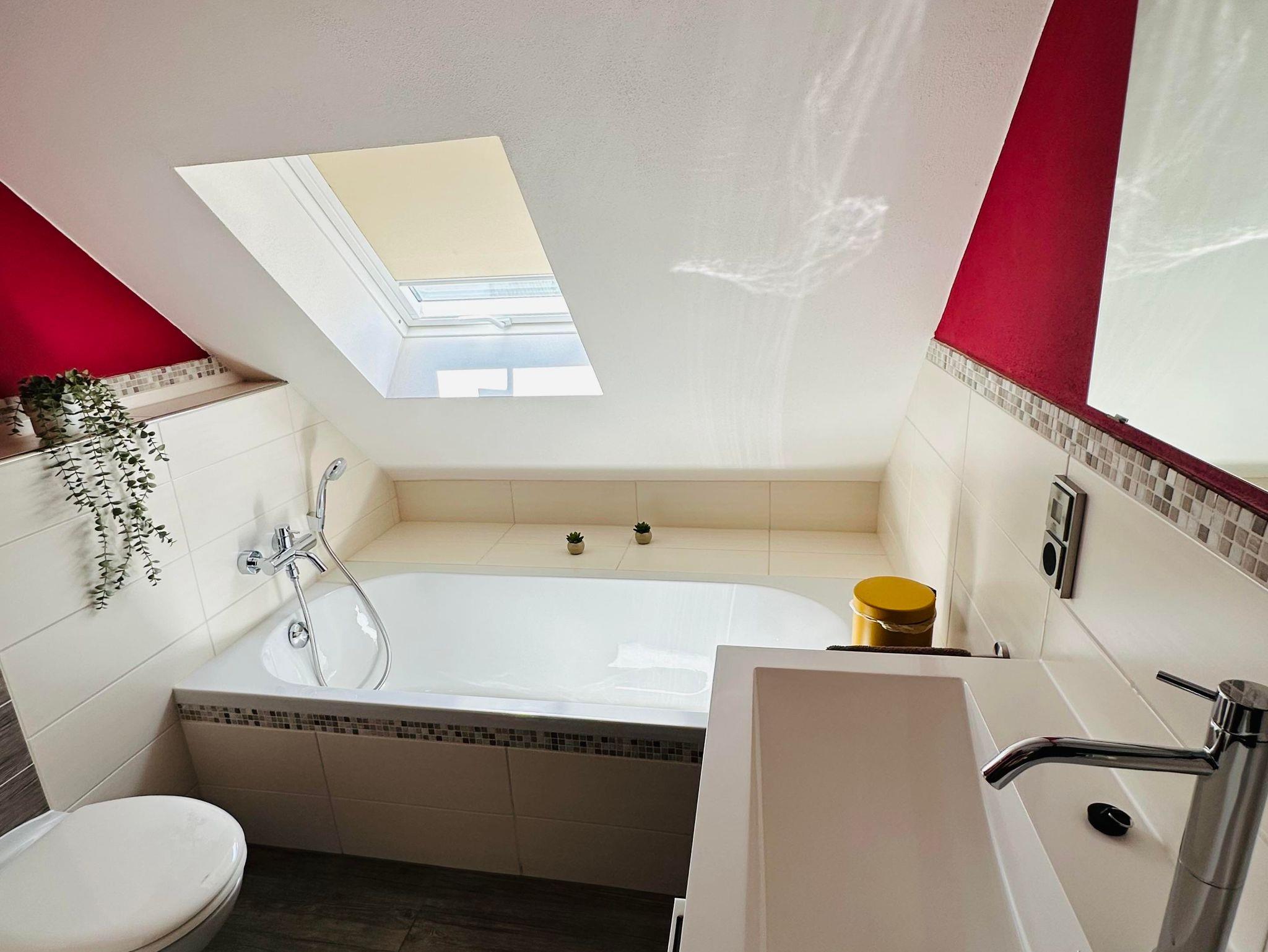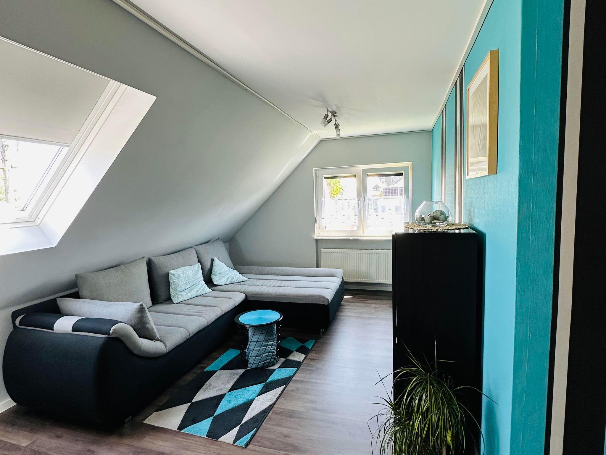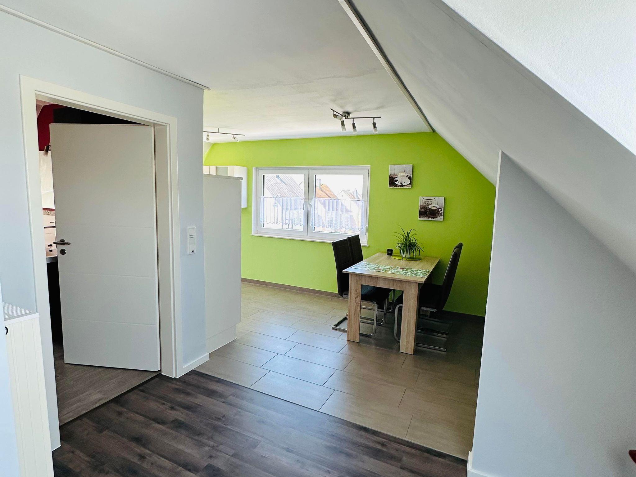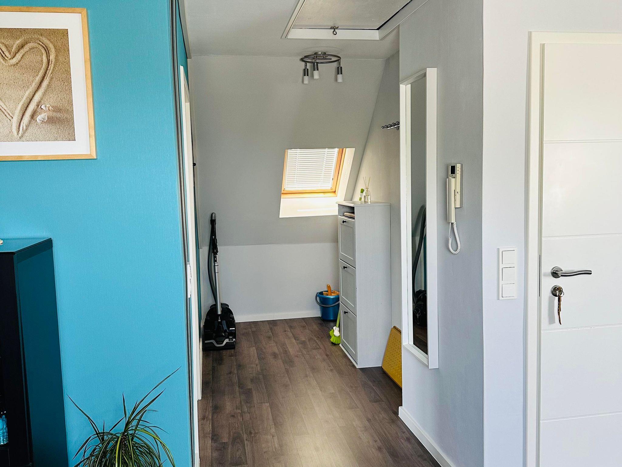Die ca. 60 m² große Ferienwohnung befindet sich im 1. Obergeschoss des Einfamilienhauses und verfügt über eine großzügige Parkmöglichkeit direkt am Haus. Die Ferienwohnung verfügt über ein Schlafzimmer sowie eine weitere Schlafmöglichkeit im großzügigen Wohnbereich. Für Reise-Babybett etc. ist genügend Platz vorhanden. Das moderne Bad verfügt über eine ebenerdige Dusche sowie eine Badewanne, WC. Die Küche ist komplett eingerichtet, am Esstisch finden vier Personen Platz.