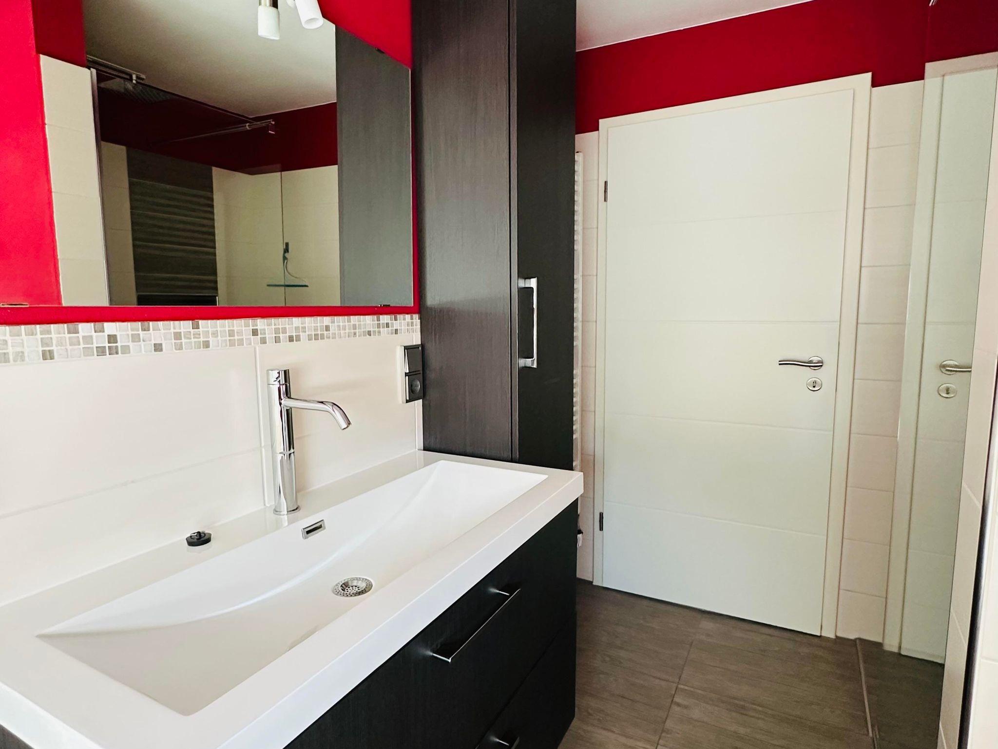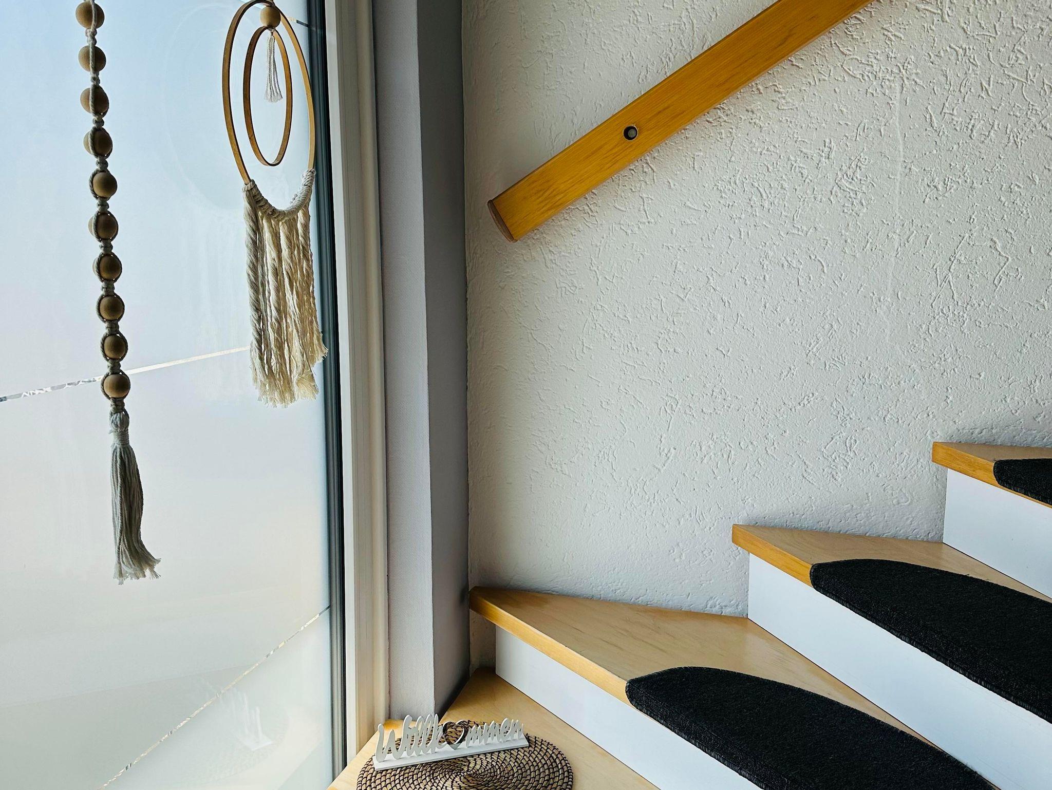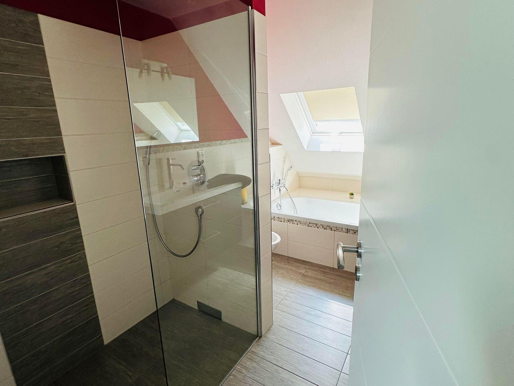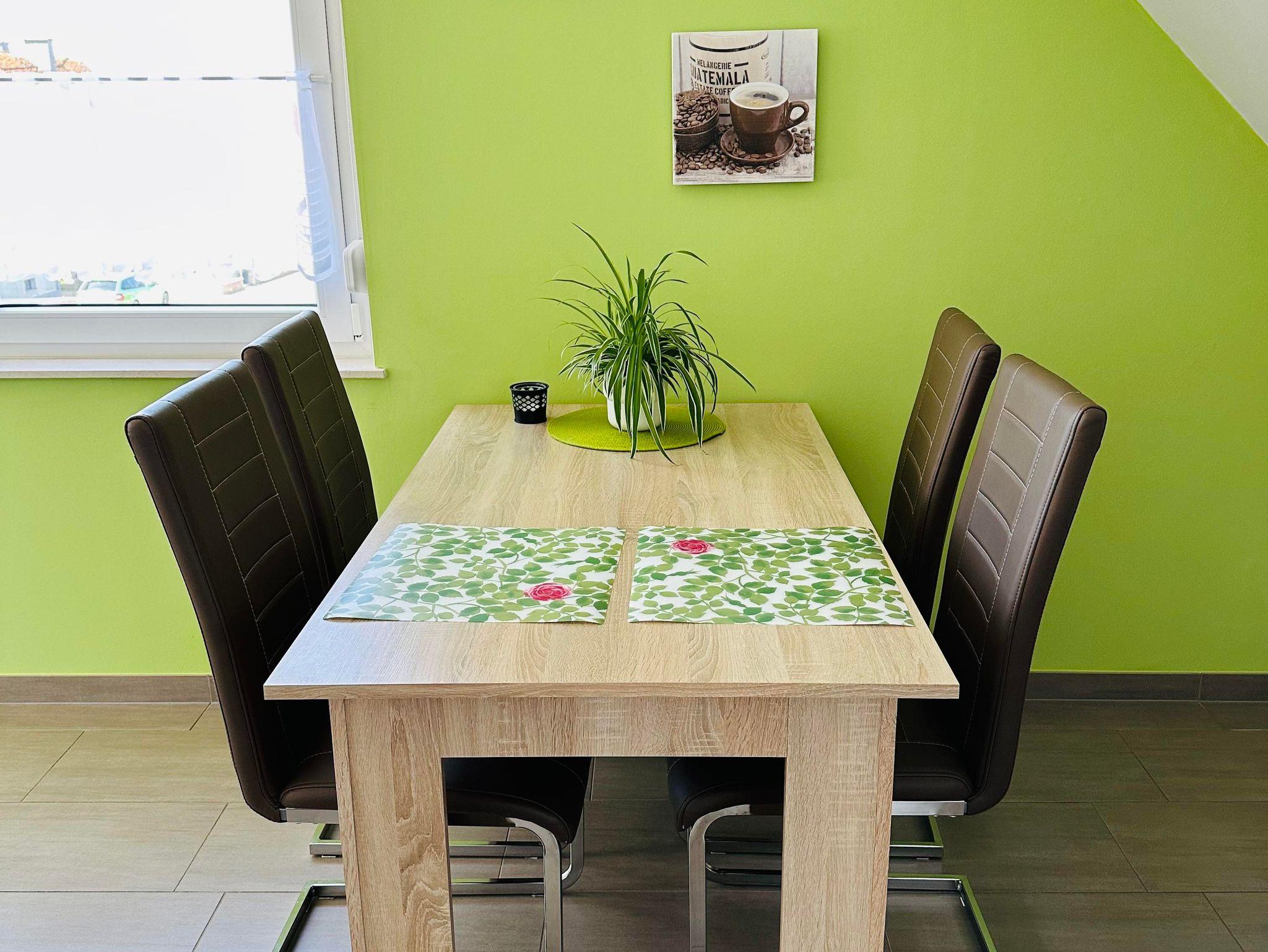 Die ca. 60 m² große Ferienwohnung befindet sich im 1. Obergeschoss des Einfamilienhauses und verfügt über eine großzügige Parkmöglichkeit direkt am Haus. Die Ferienwohnung verfügt über ein Schlafzimmer sowie eine weitere Schlafmöglichkeit im großzügigen Wohnbereich. Für Reise-Babybett etc. ist genügend Platz vorhanden. Das moderne Bad verfügt über eine ebenerdige Dusche sowie eine Badewanne, WC. Die Küche ist komplett eingerichtet, am Esstisch finden vier Personen Platz.