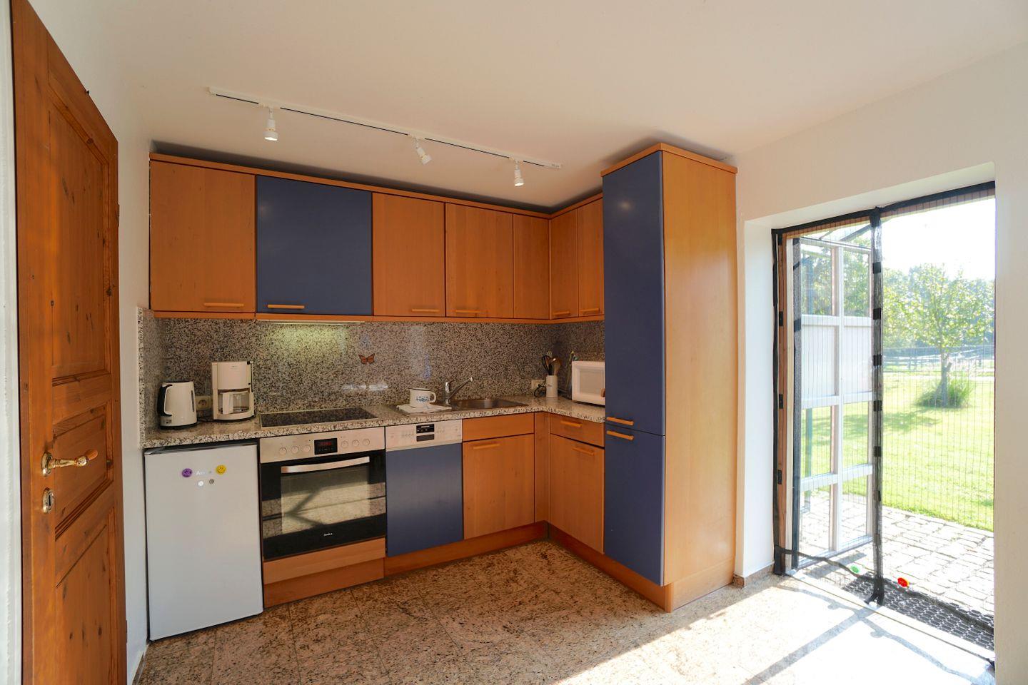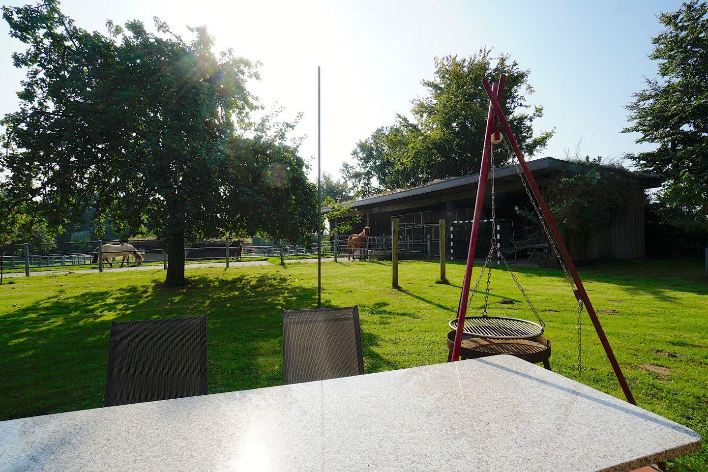Ein Highlight dieser Unterkunft ist die großzügige Terrasse, von der Sie einen herrlichen Blick auf die umliegende Natur genießen können. Ob beim Frühstück in der Sonne oder beim Grillen mit der Familie – der Außenbereich bietet Raum für gemeinsame Stunden im Freien. Der Garten ist ein Paradies für Kinder, ausgestattet mit Spielplatz, Trampolin, Rutsche und Schaukel, während die Erwachsenen sich in den Liegestühlen entspannen oder den Grillplatz nutzen können.